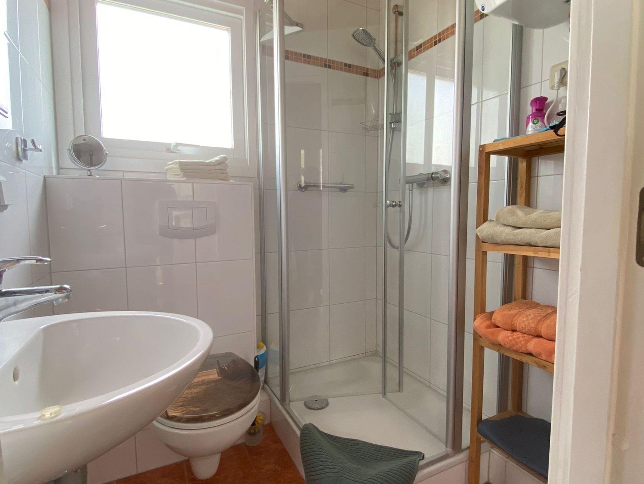 Unser Tageslicht-Badezimmer ist mit Dusche und WC.