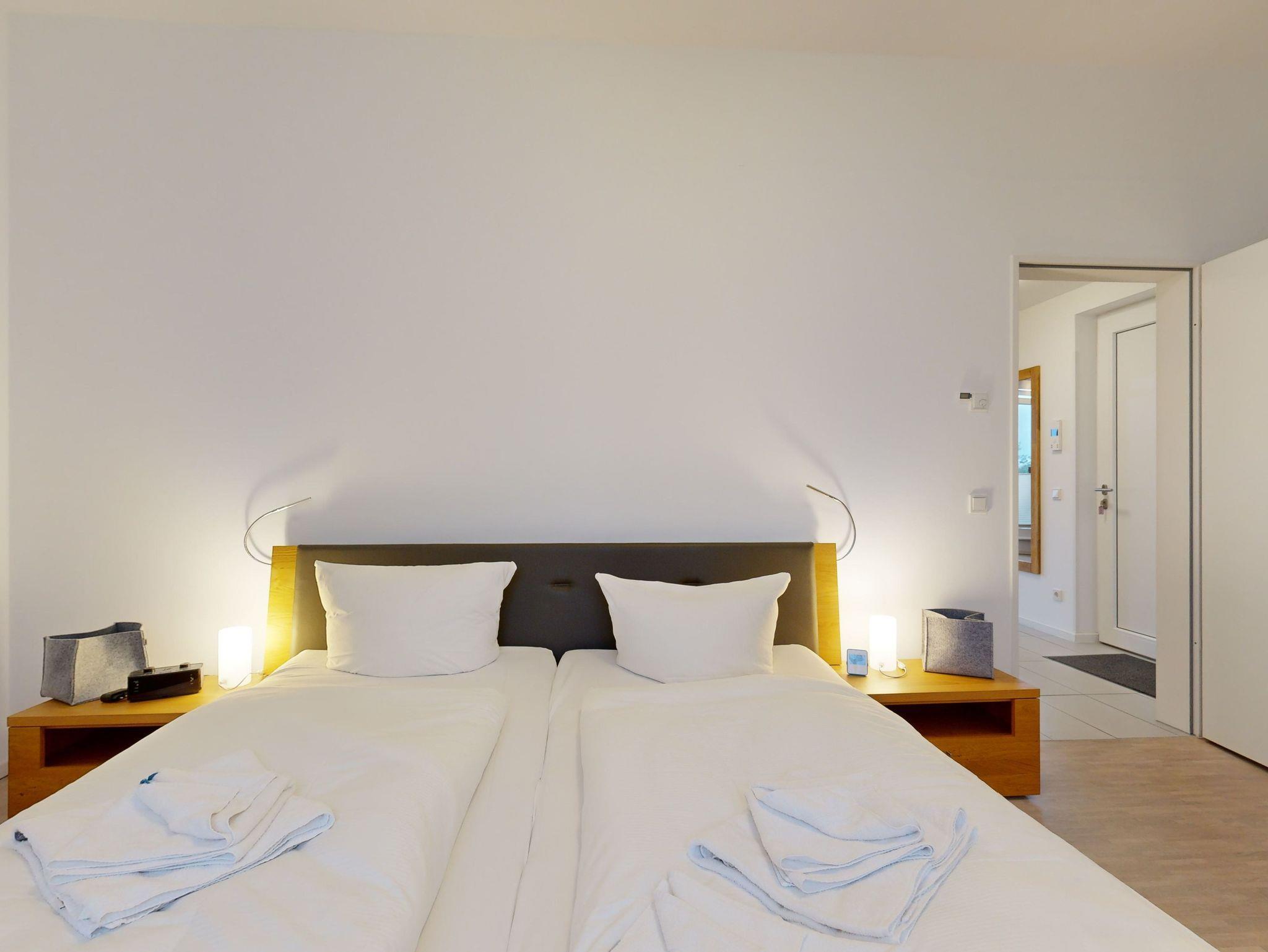 Im ganz neu gebauten Objekt gibt es großzügige Ferienwohnungen mit 1 und 2 Schlafzimmern, teilweise mit Sauna. Tiefgaragenplätze, Fahrradkeller und Aufzug im Haus.