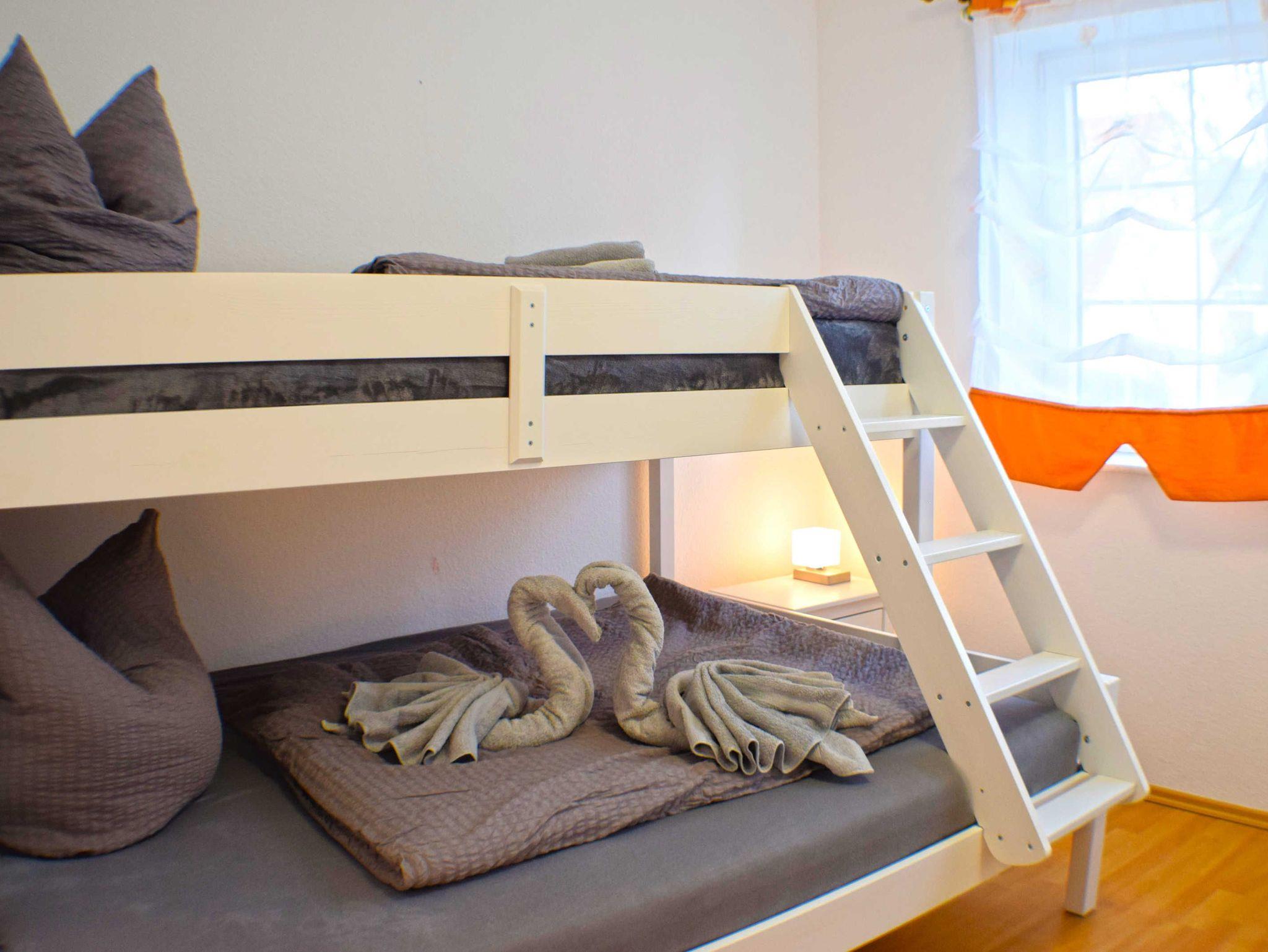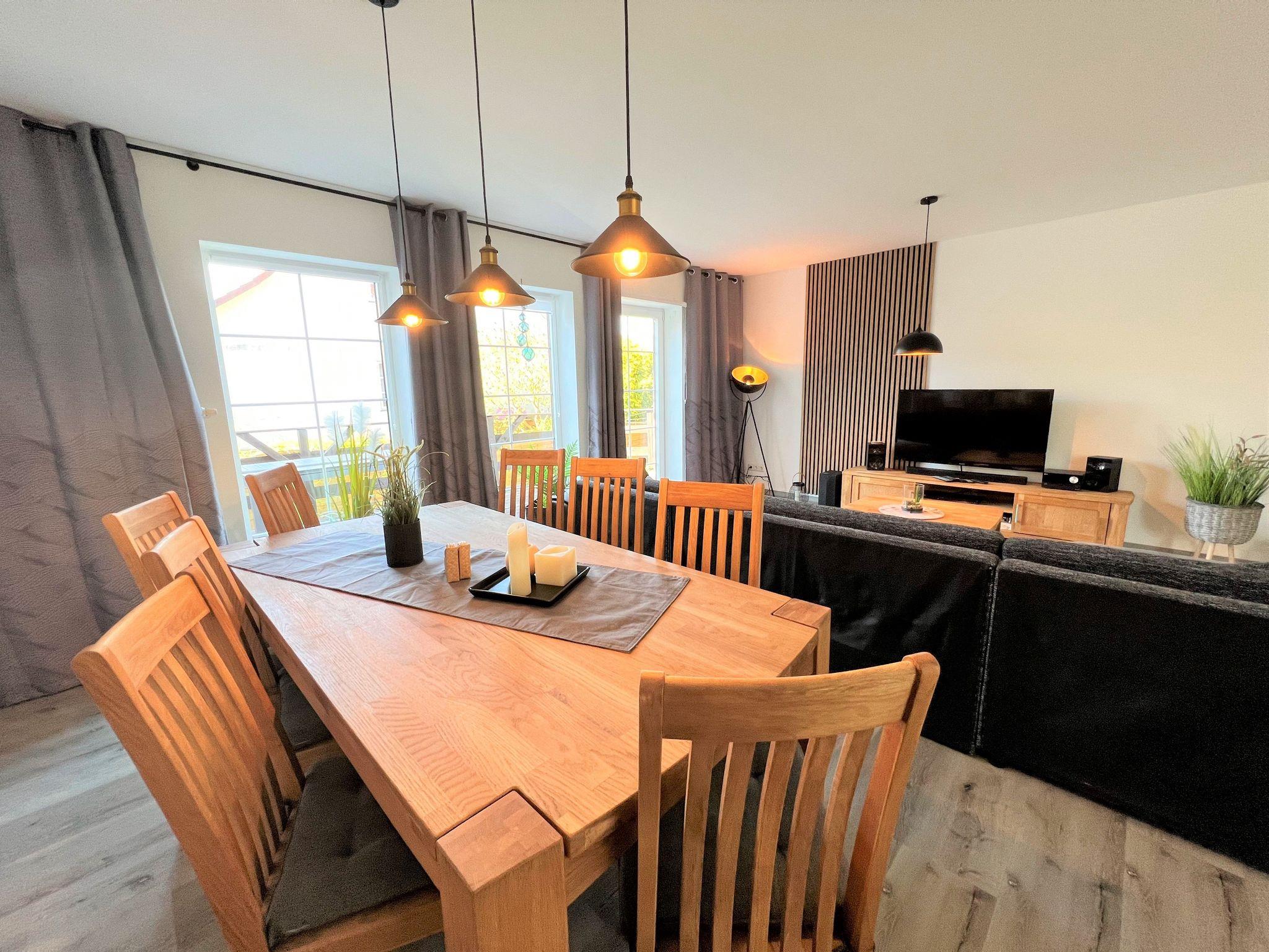 Das Ferienappartement wurde im Jahr 2021 liebevoll saniert und in einem sehr modernen und hellen Stil eingerichtet. Die drei vorhandenen Schlafzimmer mit jeweils dazugehörigen Badezimmern und einer großen Sauna sind perfekt für einen Familienurlaub. Die nahegelegenen Wanderwege laden zu einem Spaziergang zum Jagdschloss ein. Das Ferienappartement besitzt eine große Terrasse und einen angrenzenden Garten, welcher gern genutzt werden darf.