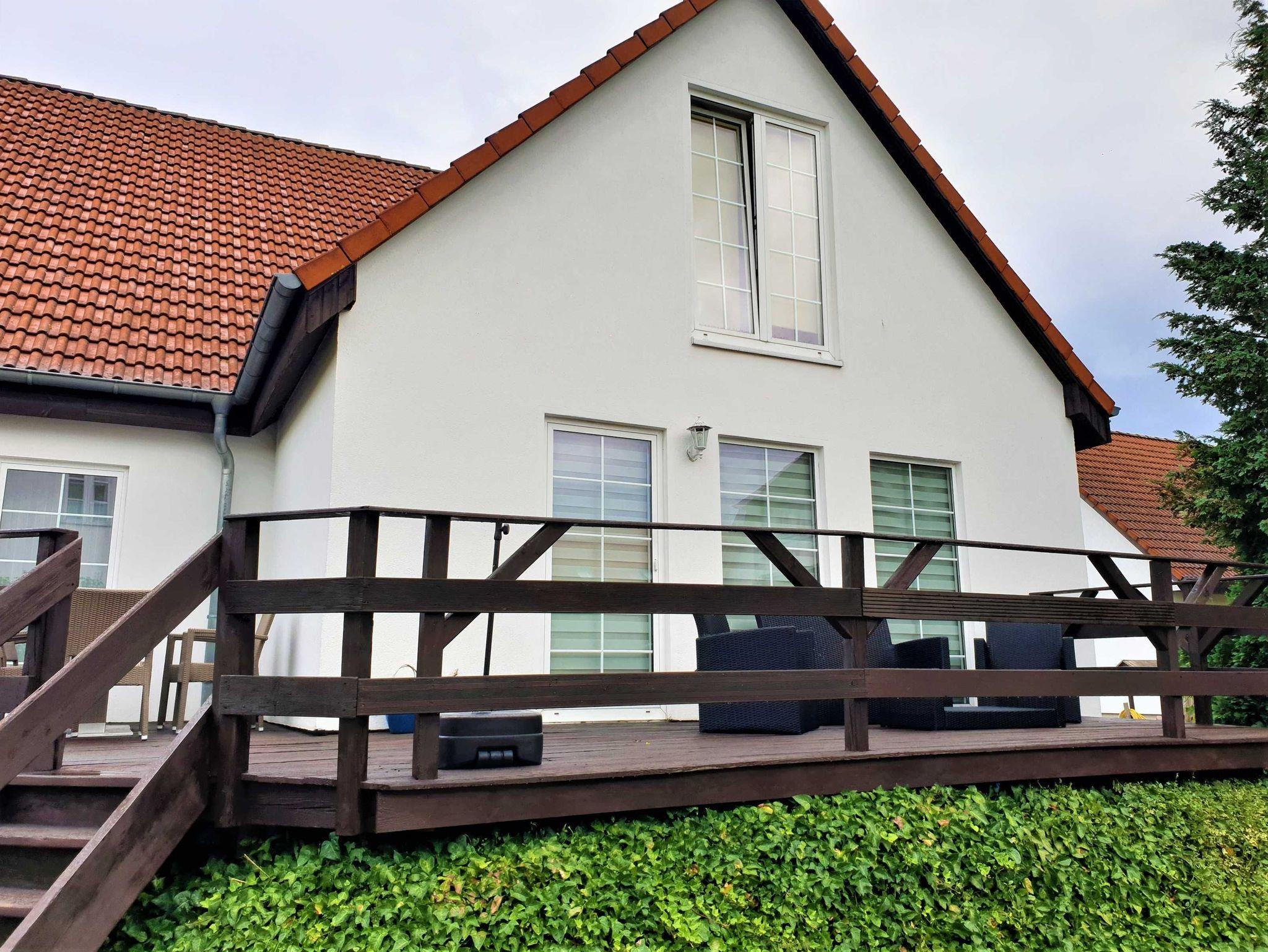 Genießen Sie Ihren entspannten Urlaub in der geräumigsten Unterkunft im Ferienhaus Rügenliebe. Die Küche ist offen gestaltet und verfügt über einen Backofen sowie eine Mikrowelle. Direkt daneben befindet sich das großzügig eingerichtete Wohn- und Esszimmer, wo Sie gemütliche Abende mit Ihrer Familie auf einer großen Couchlandschaft vor dem Fernseher verbringen können. Das Appartement bietet drei Badezimmer, jedes direkt an ein Schlafzimmer angrenzend. Das größte Bad ist sogar mit einer eigenen Sauna ausgestattet. Die Schlafzimmer sind alle mit bequemen Betten und ausreichend Schrankplatz versehen, damit Sie sich wie zu Hause fühlen können. Auch im Außenbereich gibt es viel Platz zum Entspannen: Auf der großen können Sie den Tag bei einem Glas Wein ausklingen lassen oder gemeinsam grillen. Das Ferienhaus Rügenliebe liegt inmitten eines gepflegten Gartens, wo Ihre Kinder ungestört spielen und toben können. Auch für Erwachsene bietet der Garten eine Oase der Ruhe - hier kommen Naturliebhaber voll auf ihre Kosten.