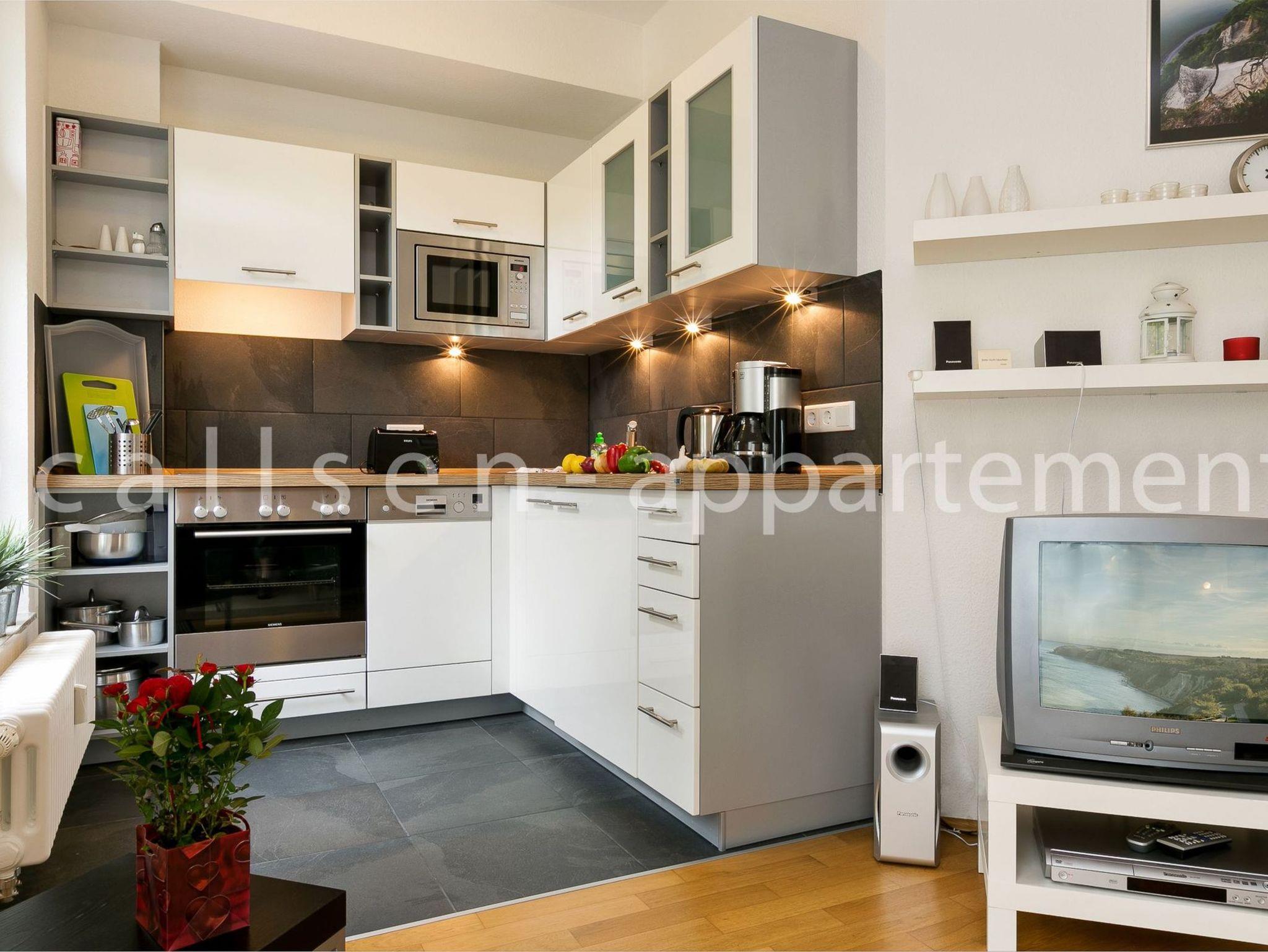 Küche mit Cerankochfeld, Mikrowelle und Geschirrspüler,
