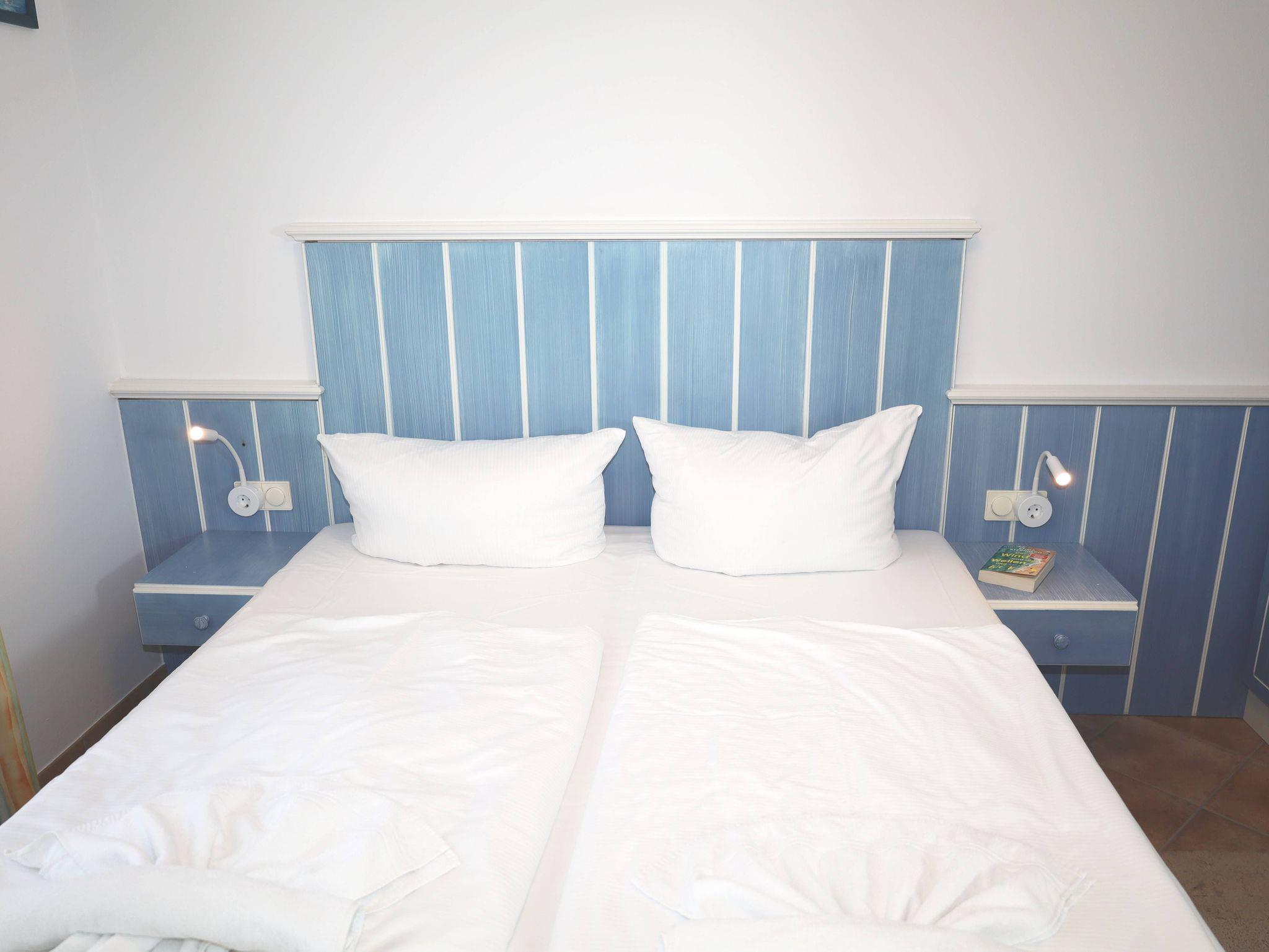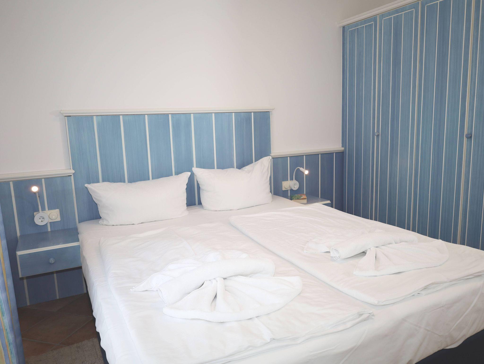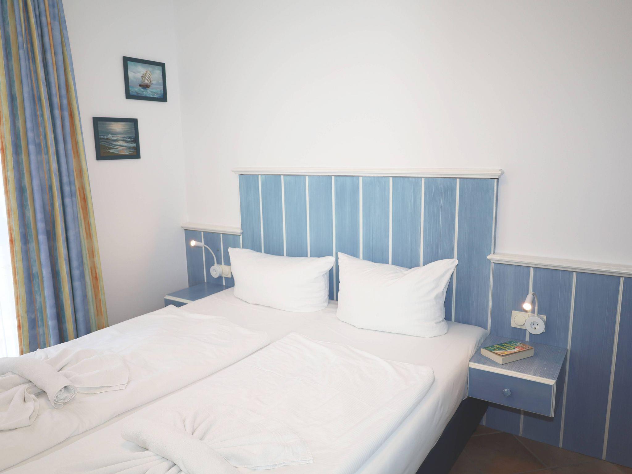 Das 2-Raum-Apartment befindet sich im 2. Obergeschoss und ist für bis zu 2 Personen geeignet. Das Apartment verfügt über einen Balkon mit seitlichem Meerblick.