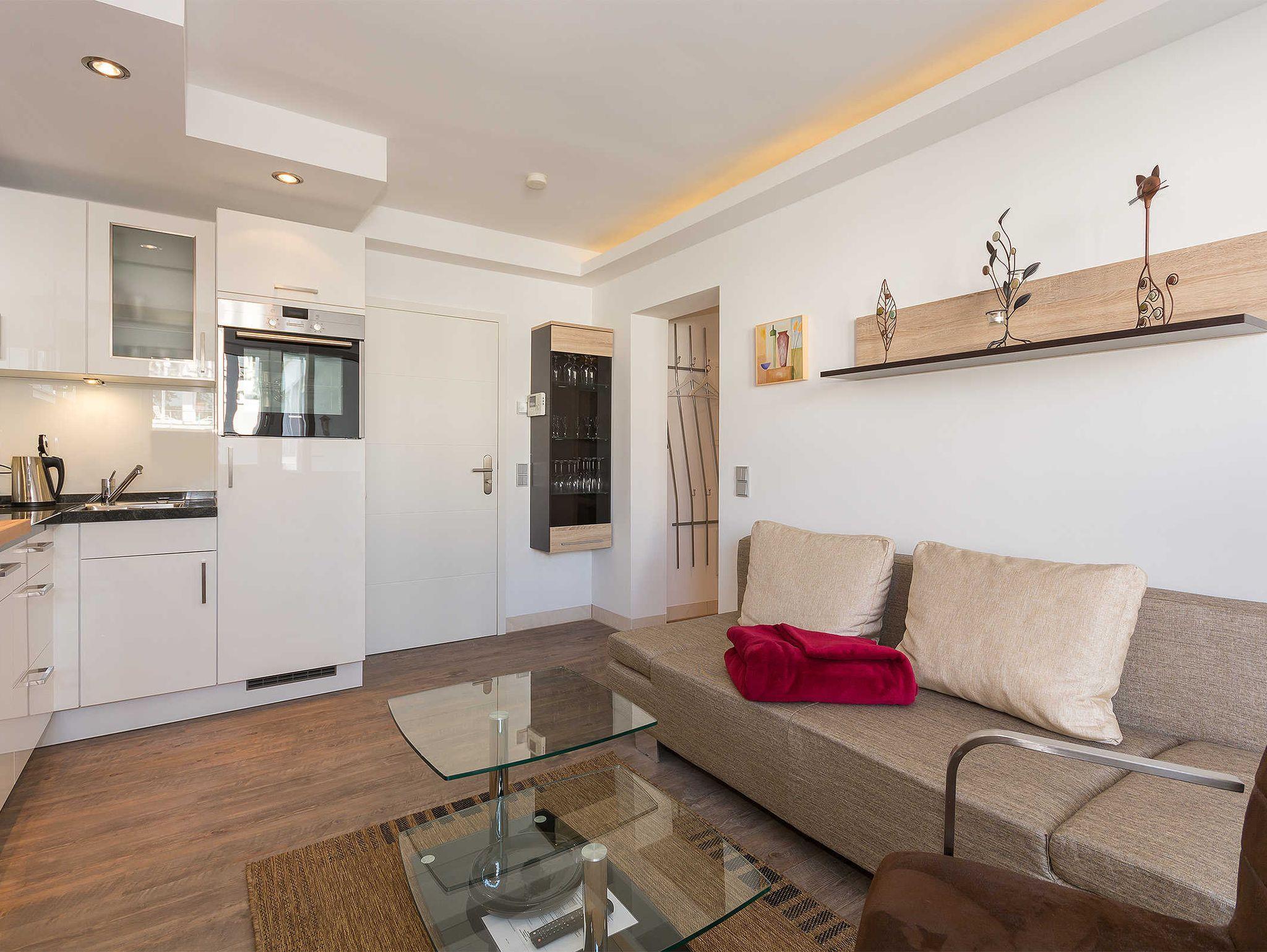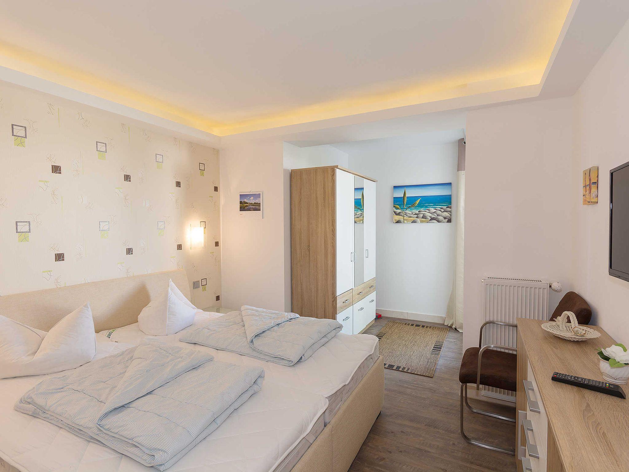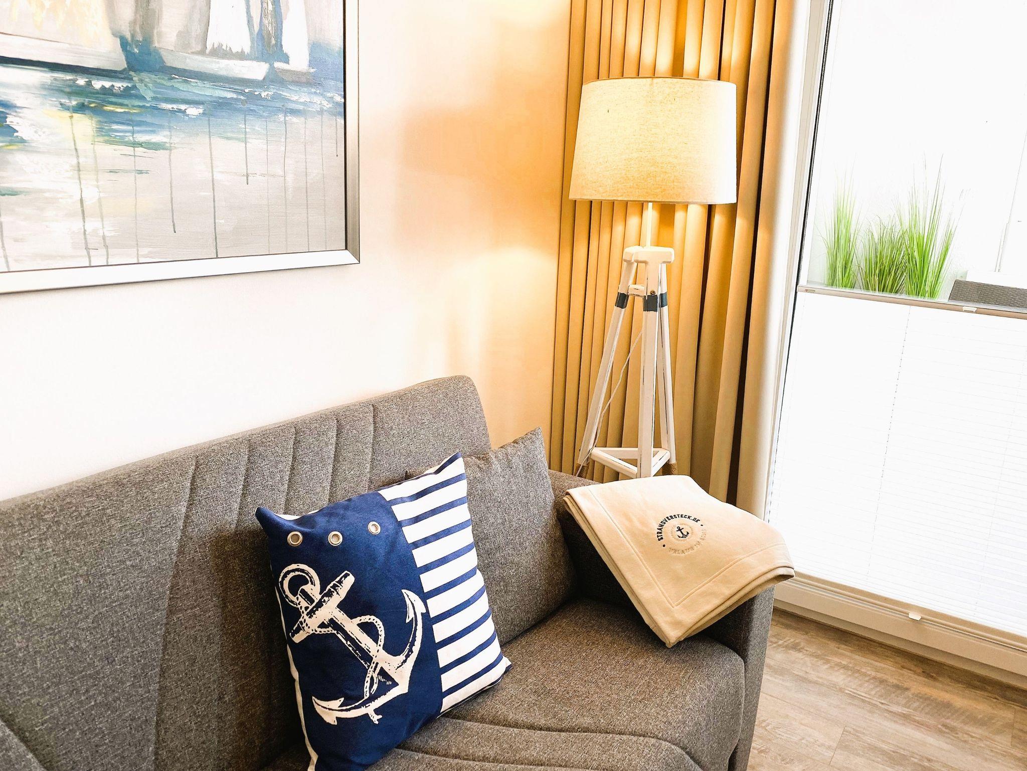 Die ca. 40m² große Zweiraumwohnung Strandversteck befindet sich im ersten Obergeschoß und ist für bis zu 3 Personen sehr modern eingerichtet.