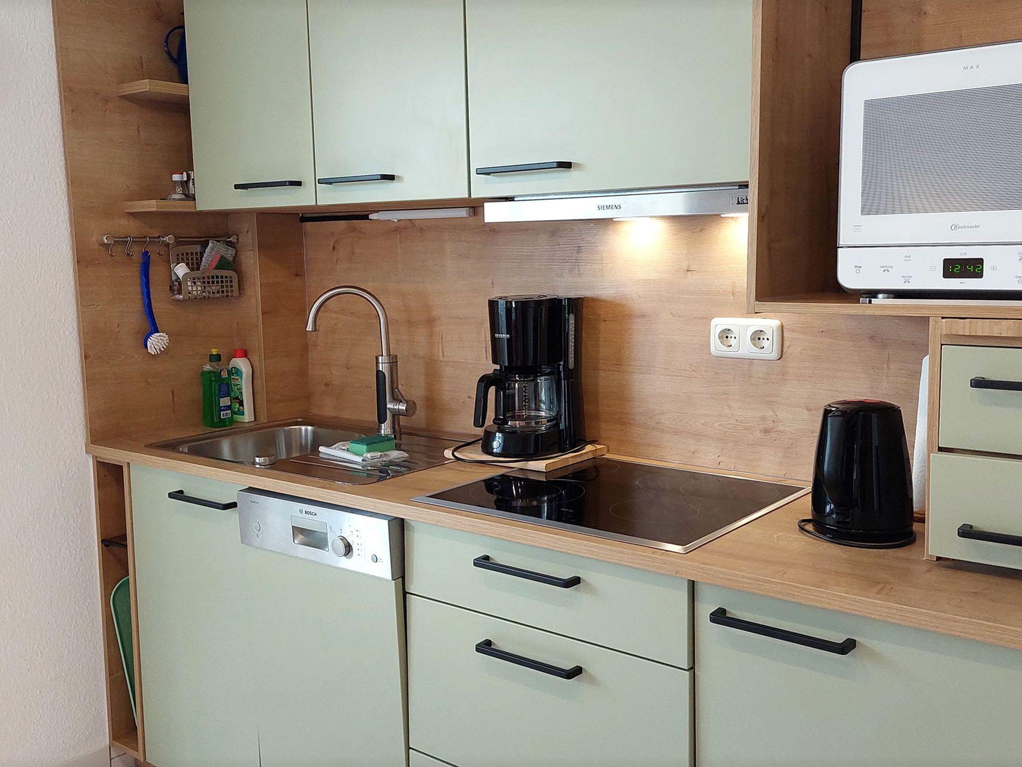 Der großzügige Wohnraum verfügt über eine Schlafcouch für die 3. und 4. Person, Flachbildfernseher, Musikanlage mit CD-, DVD-Player, kostenlosem WLAN-Zugang sowie eine voll ausgestattete Wohnküche. Die Küchenzeile ist mit Geschirrspüler, Kaffeemaschine, Wasserkocher, Toaster und Ceran-Kochfeld mit Dunstabzugshaube und diversen anderen Küchenhelfern komplett ausgestattet. befindet. Das separate Schlafzimmer verfügt über ein Doppelbett sowie einen Kleiderschrank. Das Badezimmer verfügt über ein Waschbecken, Dusche und WC. Ihr Vierbeiner ist hier Herzlich Willkommen!