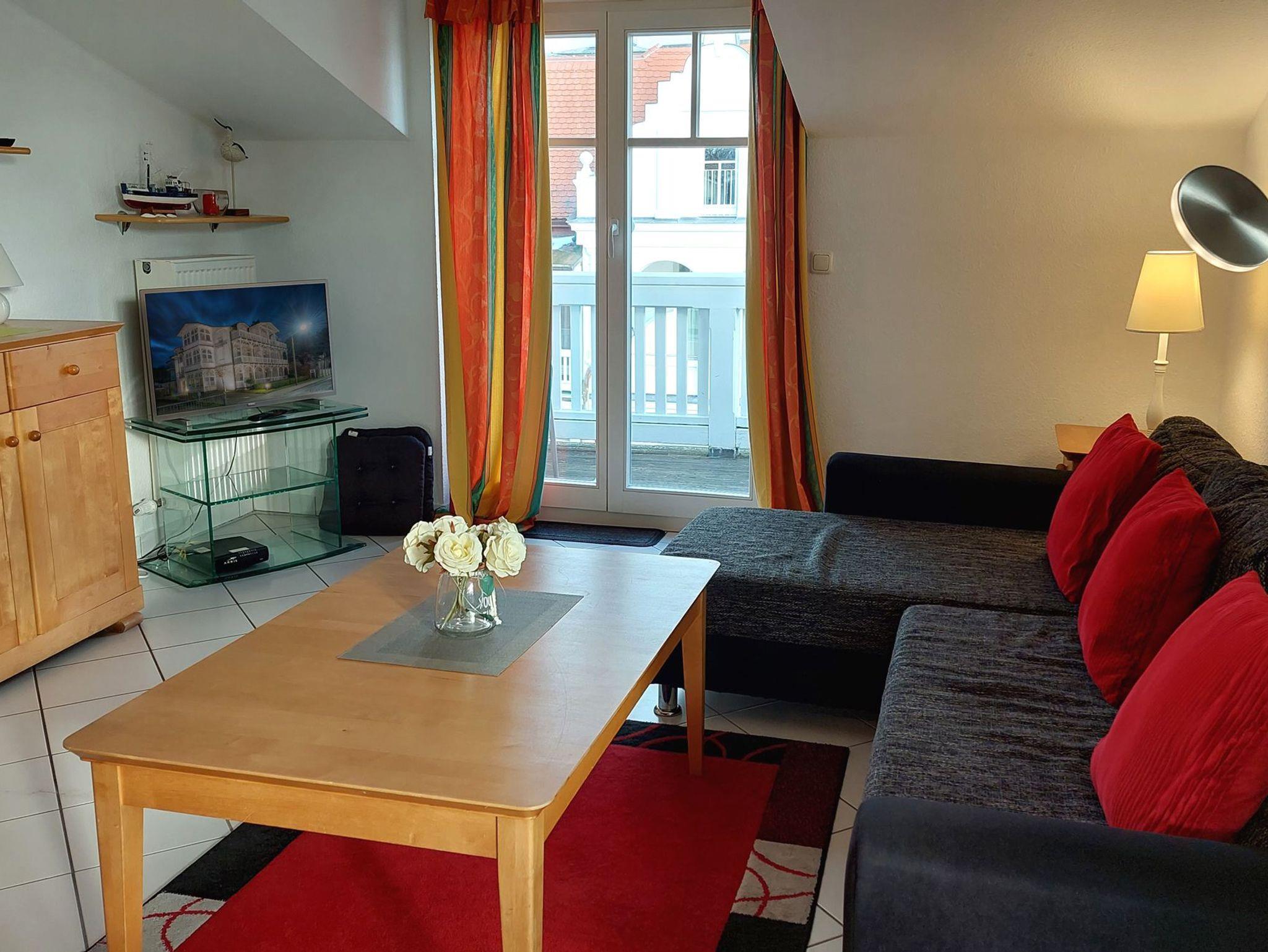Ihre schöne Ferienwohnung 90435 befindet sich im 2. Obergeschoss der Villa und ist ca. 51 qm groß. Die 2-Raum-Nichtraucher-Wohnung ist für bis zu 4 Personen geeignet und verfügt über einen hellen Wintergarten mit Essplatz sowie über einen Balkon.