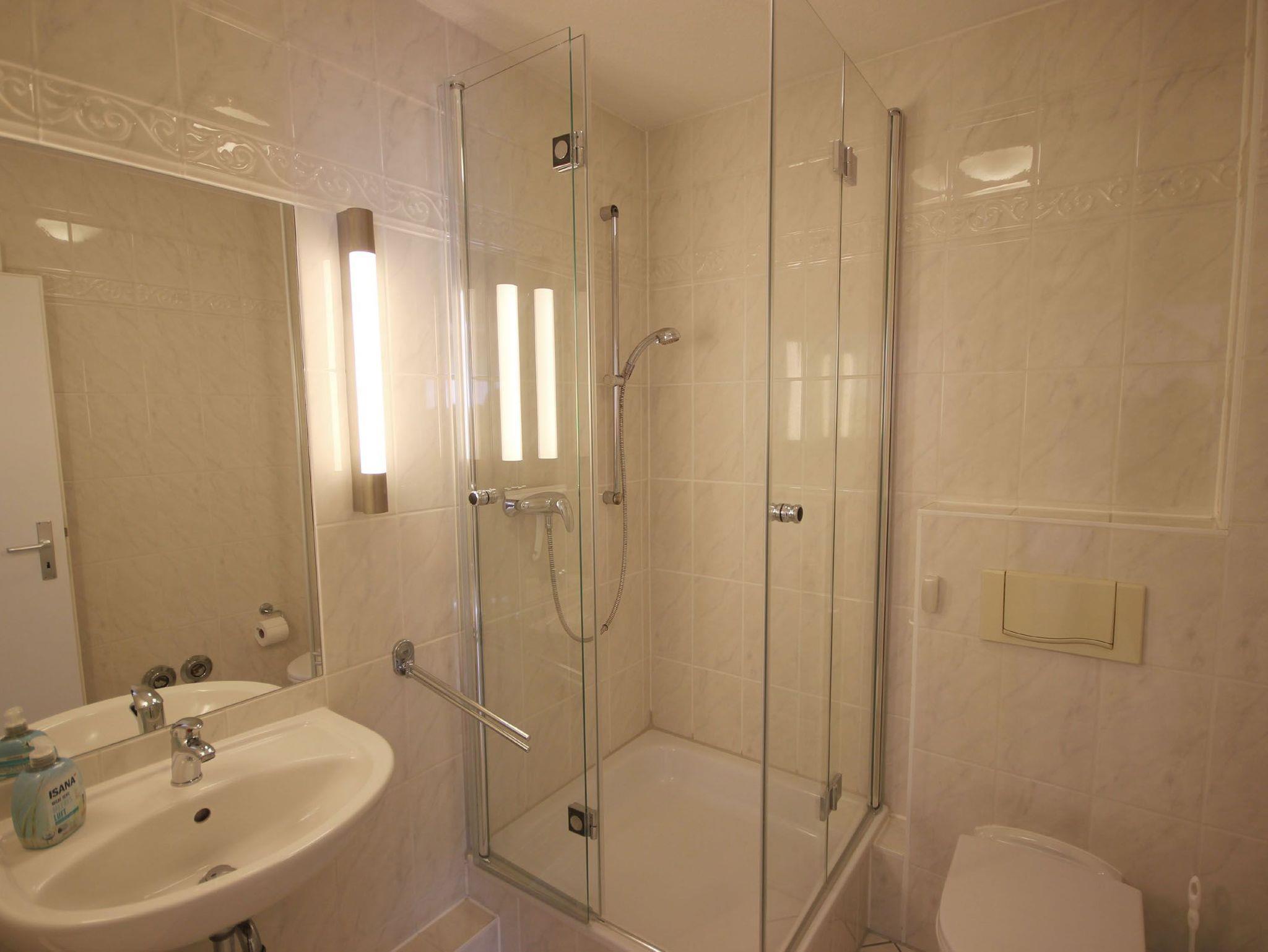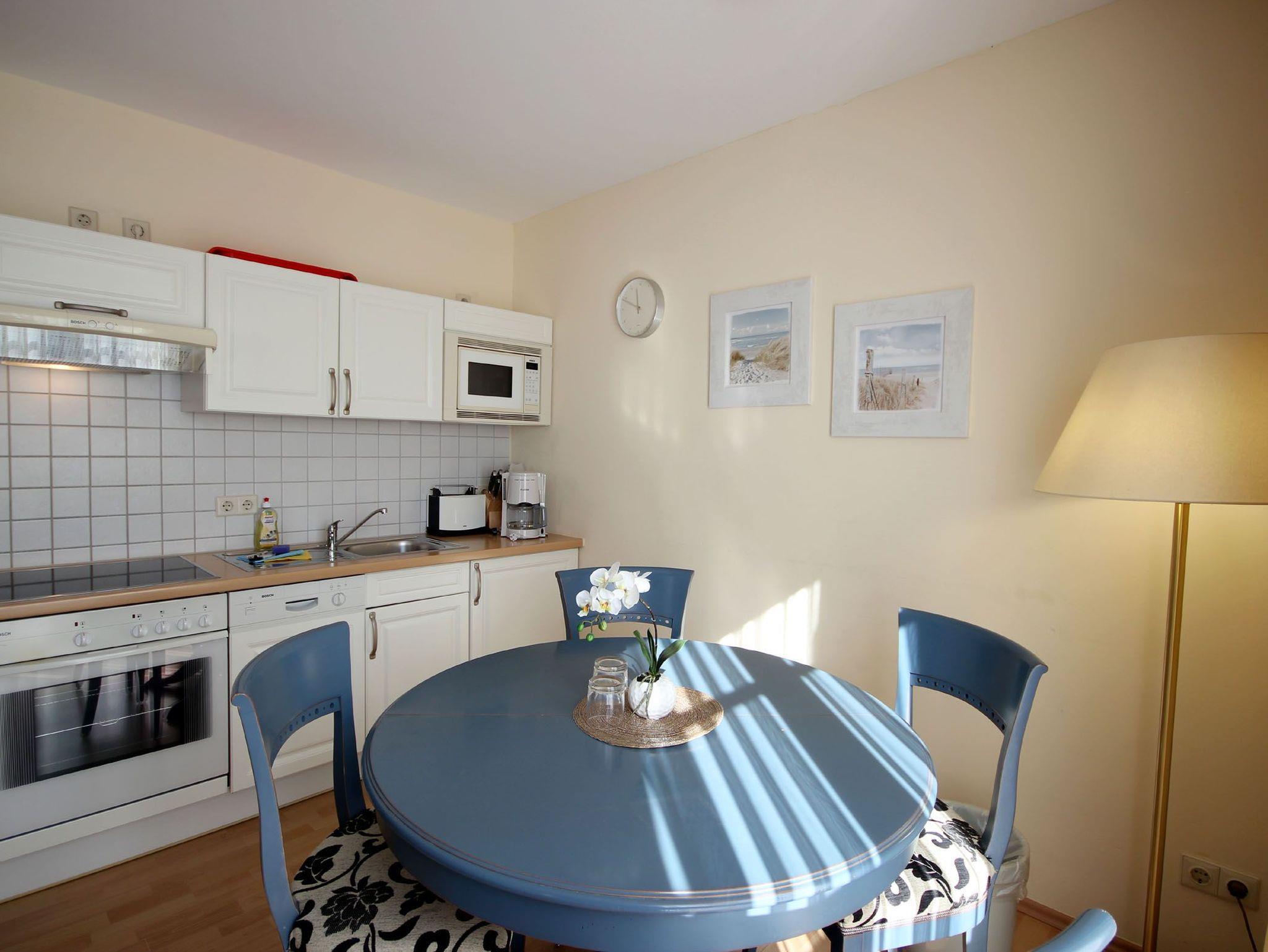 Ihre gemütliche Maisonettewohnung 26RB10 hat eine Größe von ca. 66 qm und ist für bis zu 4 Personen eingerichtet. Die Nichtraucherwohnung befindet sich im 2. und 3. Obergeschoss des Hauses und verfügt über einen Südbalkon. Im 2. Obergeschoss befindet sich der gemütliche Wohnraum mit angrenzender Wohnküche, dem Essbereich sowie das separate Duschbad. Im Wohnbereich gibt es eine schöne Sitzecke mit Sesseln, ein Flachbildfernseher sowie einen kostenfreien WLAN-Zugang. Die Küchenzeile ist ausgestattet mit Geschirrspüler, Backofen, Ceranfeld, Kühlschrank, Mikrowelle, Kaffeemaschine, Wasserkocher und Toaster. Das Bad verfügt über eine Dusche, einen Waschtisch und WC. Über die Wendeltreppe gelangen Sie in das 3. Obergeschoss direkt in das geräumige Schlafzimmer. Hier erwartet Sie ein Doppelbett und zusätzliche Sitzmöglichkeiten. Haustiere sind herzlich willkommen. Ein PKW-Stellplatz steht Ihnen auf dem Parkplatz ?Zentrum? (ca. 400m vom Objekt entfernt) zur Verfügung.