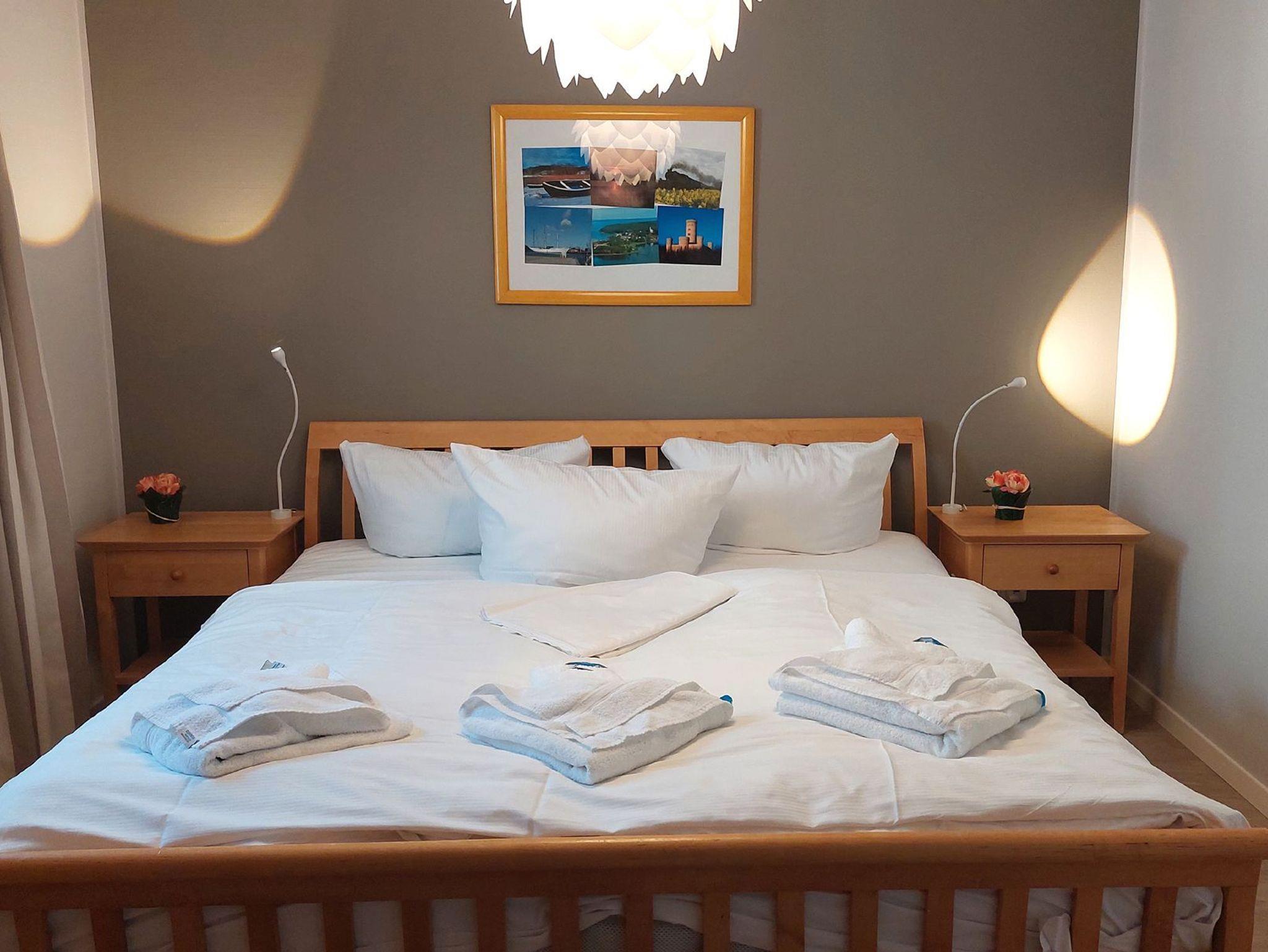 Diese schöne Wohnung verfügt über einen großzügigen Wohnraum, mit Schlafcouch (1,60 m x 2 m), Flachbildfernseher, WLAN, Sound-Anlage mit CD-, DVD- und Blue-Ray-Player. Zur umfangreich ausgestatteten, integrierte Wohnküche, mit Backofen, Geschirrspüler, Mikrowelle mit Grillfunktion, 2 Kaffeemaschinen (Filter und Pads), Wasserkocher, Toaster, Ceran-Kochfeld mit Dunstabzugshaube, gehört außerdem der separate Essplatz. Das Schlafzimmer verfügt über ein Doppelbett sowie einen geräumigen Kleiderschrank. Der separate Wintergarten bietet einen Rückzugsort und lädt zum Schmökern ein. Mit dem zweiten Sofa (1,20 x 2 m) ist dort eine weitere Schlafmöglichkeit vorhanden. Das geräumige Badezimmer besticht mit einem Doppelwaschtisch, großzügig dimensionierter Dusche mit extraflachem Einstieg, Fön und WC.