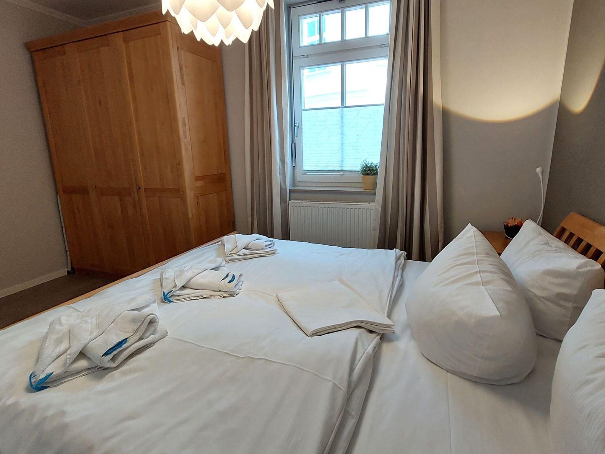 Ihre hochwertig ausgestattete Ferienwohnung 90400 befindet sich im Erdgeschoss der Villa und ist ca. 53 qm groß. Die 2-Raum-Nichtraucher-Wohnung ist für bis zu 4 Personen geeignet und verfügt über einen hellen Wintergarten mit gemütlicher Sitzecke sowie einen Balkon.