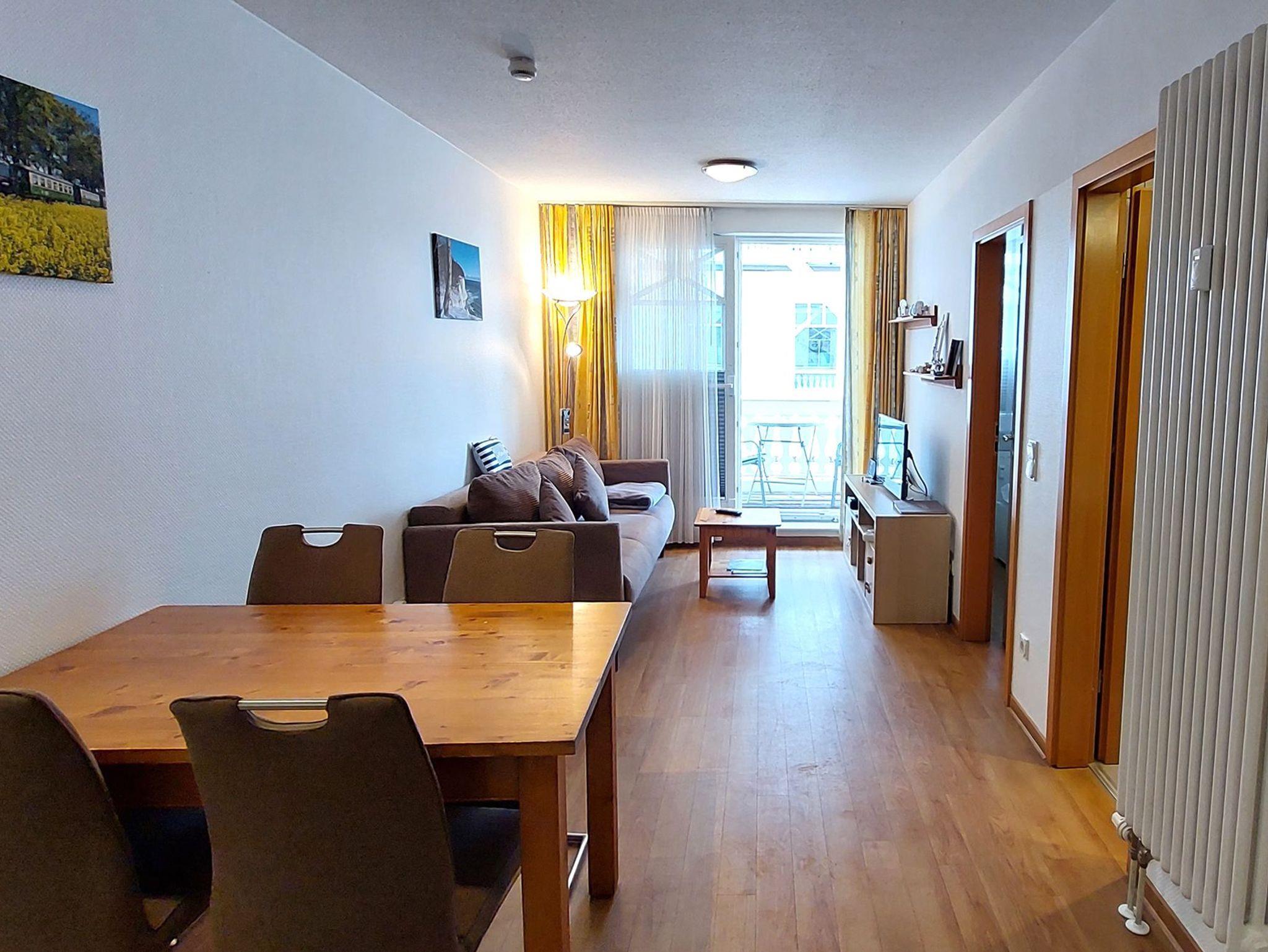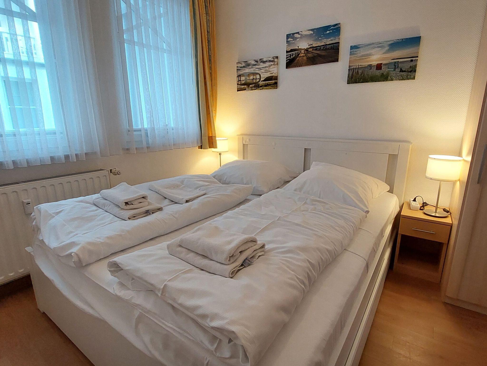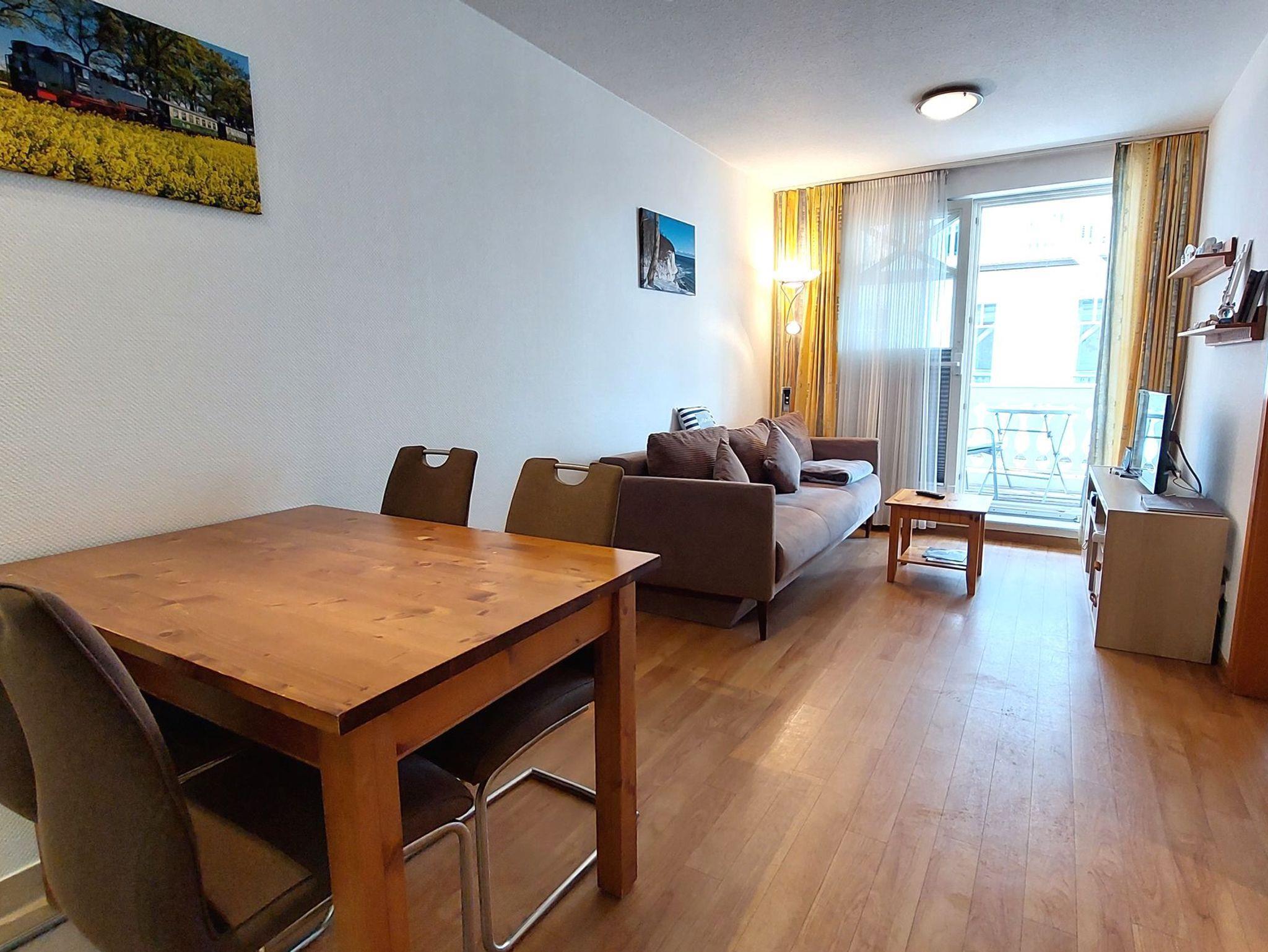 Moderne 2-Zimmer-Wohnung mit Terrasse und kostenfreiem Parkplatz in Binz, nur 50 m vom Strand entfernt.