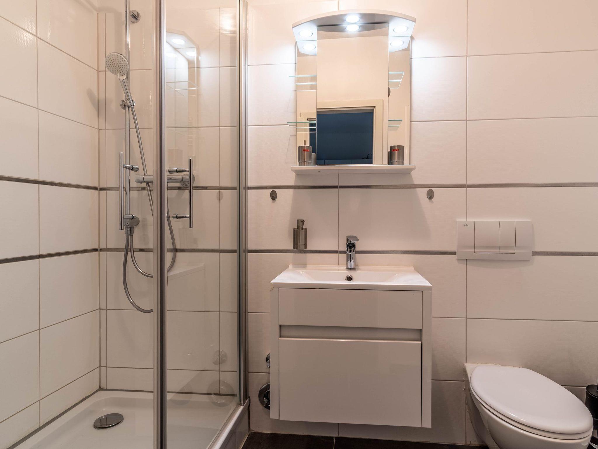 Das Apartment 10 mit einer Größe von 52 qm besteht aus einem Wohnbereich, einem Schlafzimmer sowie einem Duschbad. An dem Wohnbereich schließt sich der möblierte Balkon mit Meerblick an. Vom Schlafzimmer können Sie einen zusätzlichen Balkon erreichen.
