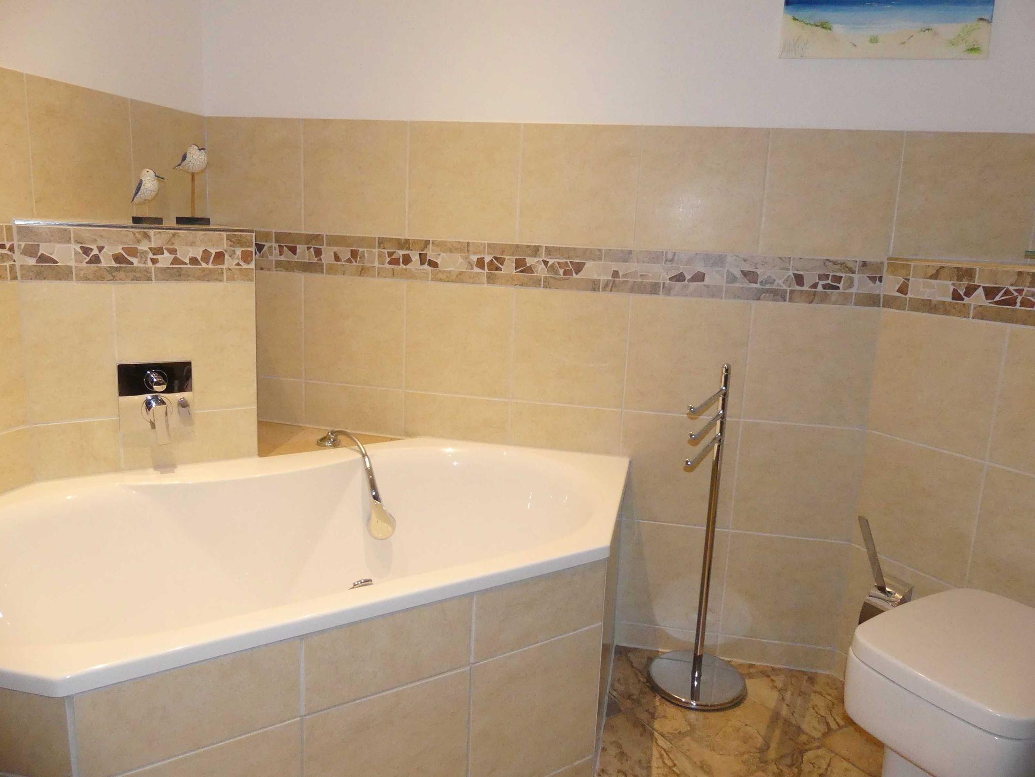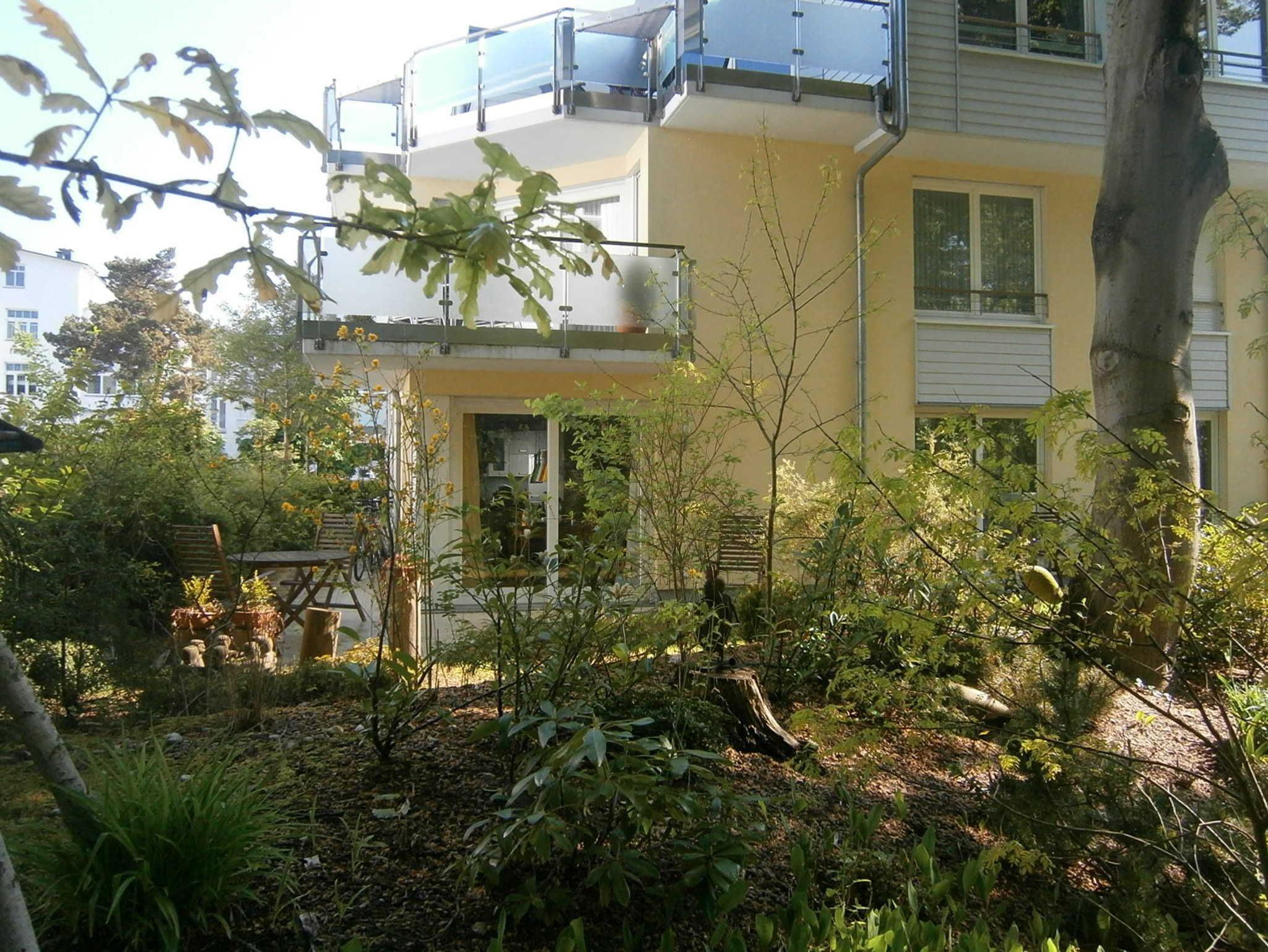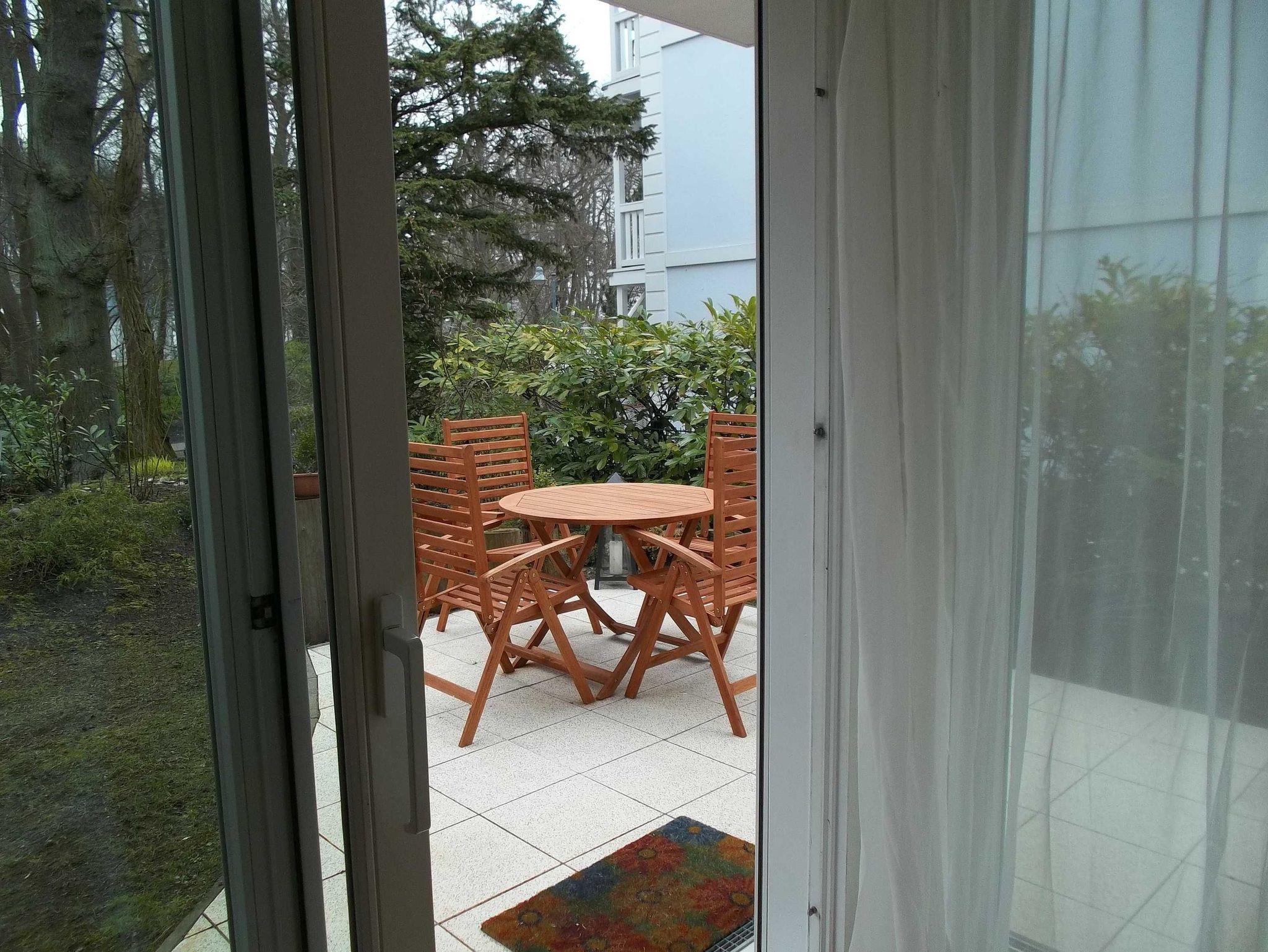 Schöne Ferienwohnung in der Villa am Kurpark im Erdgeschoss (3 Zimmer / 76 m²) mit Terrasse, zwei Schlafzimmern, zwei Bädern und einem Strandkorb am Strand inklusive.