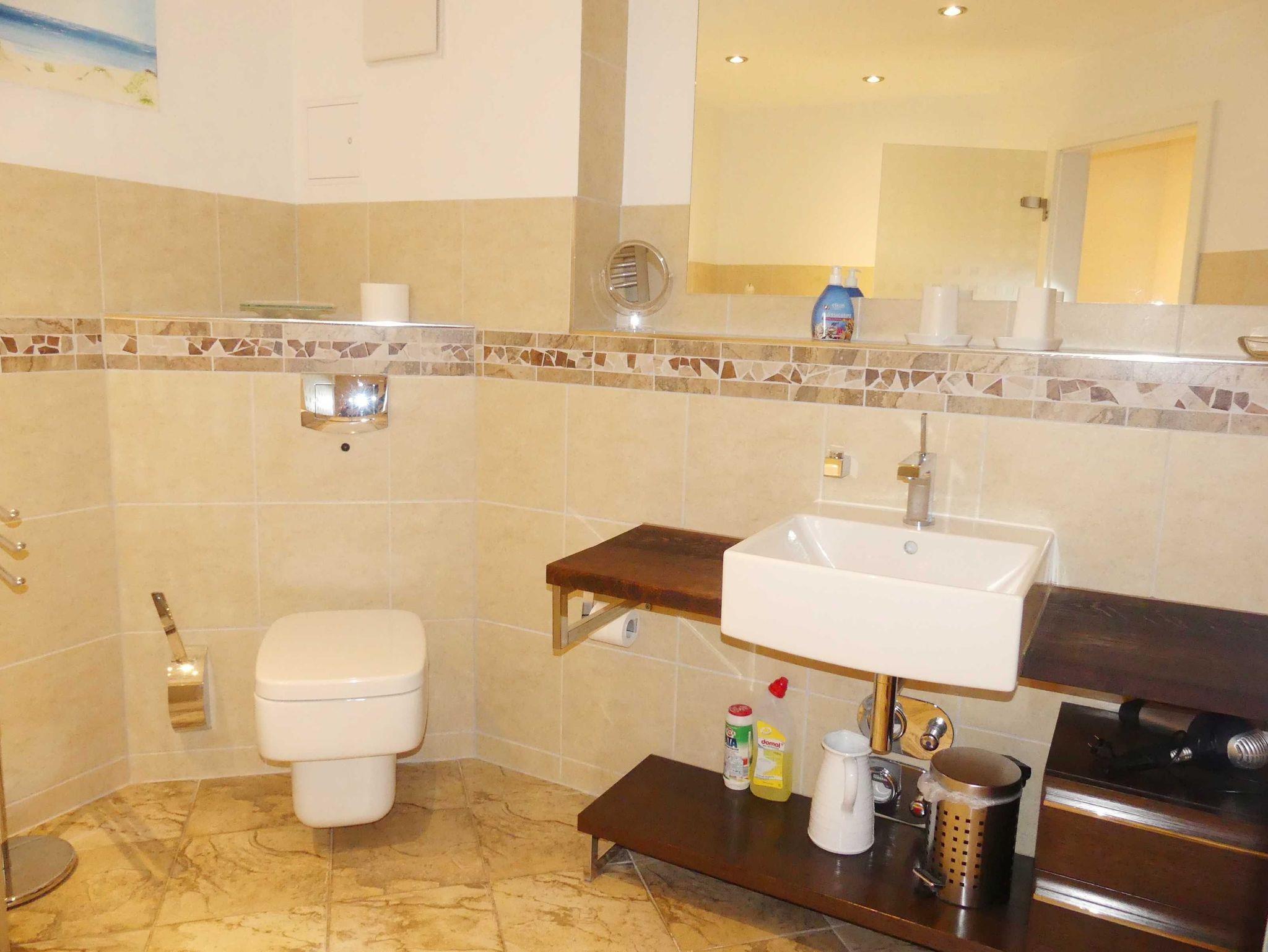 Exklusive Ferienwohnung in Binz, nur 100 m vom Strand entfernt, mit Terrasse, zwei Bädern und eigenem Strandkorb.