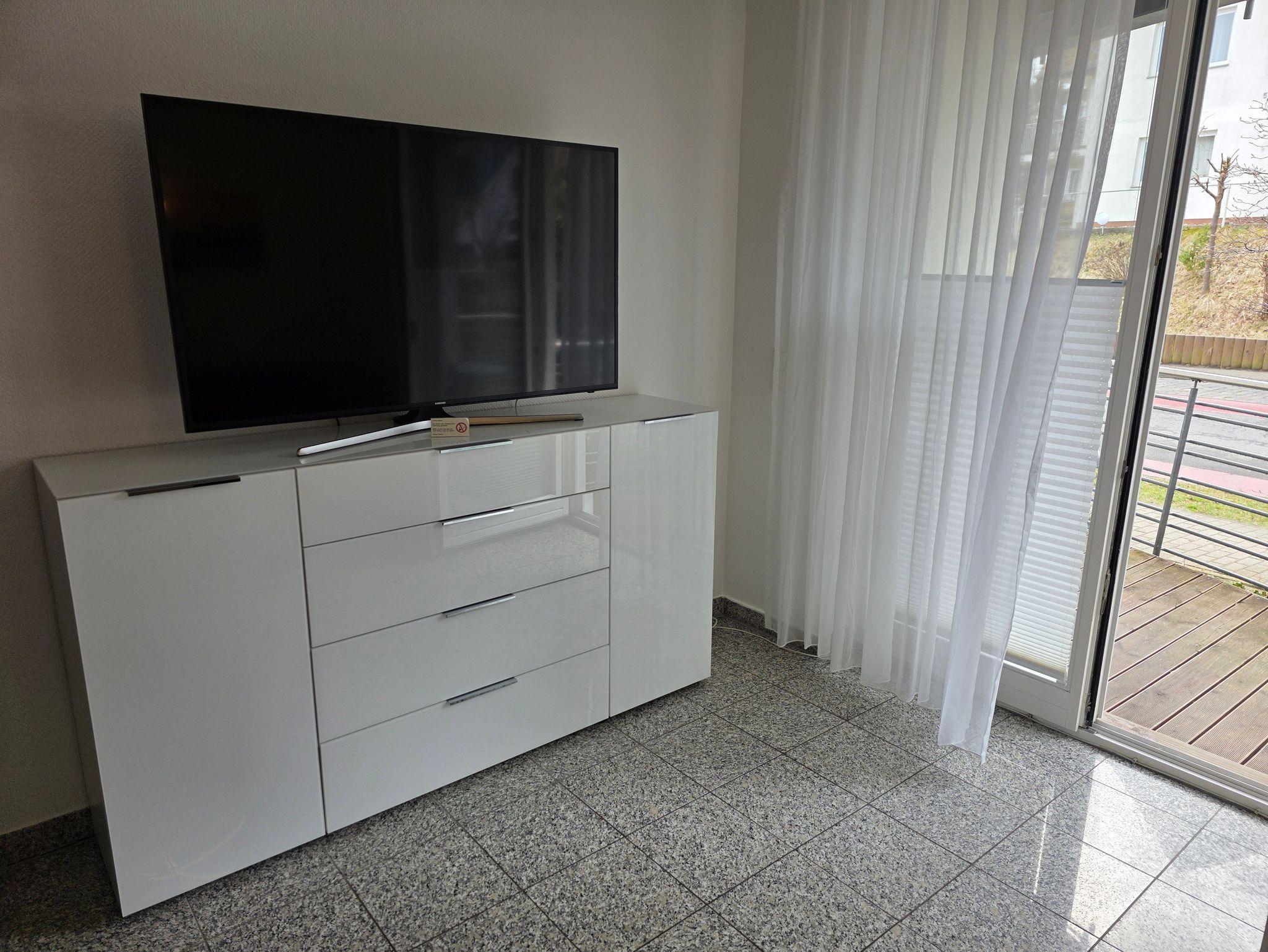 Die ca. 42 m² große Wohnung mit Balkon liegt in Süd-West Ausrichtung im Haus. Sie können den Wellnessbereich (Schwimmbad, Sauna) im Haus bequem im Bademantel mit dem Aufzug erreichen. Ein separates Schlafzimmer mit Doppelbett und Fernseher steht Ihnen zur Verfügung. Der Wohnbereich ist mit einer Sitz- und Essgruppe, 55 Zoll UHD Smart TV sowie einer Pantry-Küche mit Dreifach-Cerankochfeld, Neff Kompaktbackofen mit Mikrowelle, Geschirrspülmaschine, Kühlschrank, Kaffeemaschine, Toaster usw. versehen. Ein schönes Badezimmer mit Dusche, WC und großem Spiegel komplettieren die Ferienwohnungen. Beste Voraussetzungen für 1 bis 3 Personen in Binz einen erholsamen Urlaub zu verleben. Ein PKW-Parkplatz bis max. 1.85m Höhe in der Tiefgarage ist im Preis enthalten. Kostenfreies WLAN steht zur Verfügung.