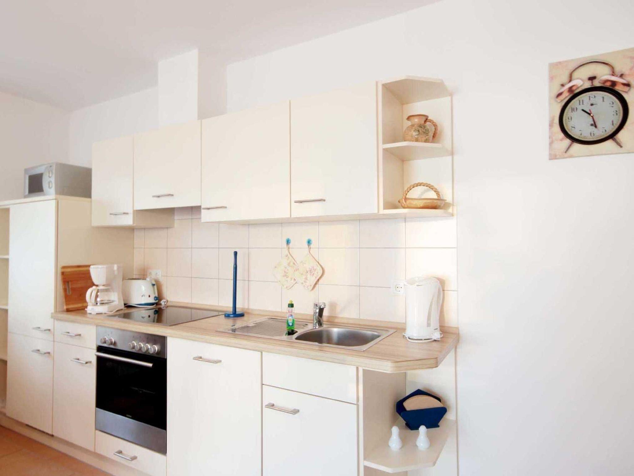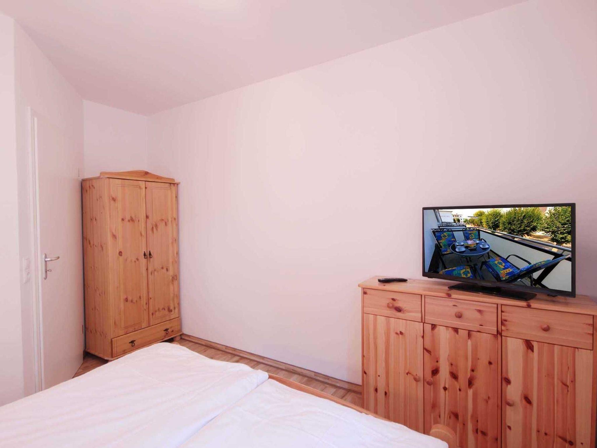 Ihre 3-Raum-Ferienwohnung Tom 90650 hat eine Größe von ca. 67 qm und ist für bis zu 4 Personen eingerichtet. Sie befindet sich im 1. Obergeschoß und verfügt über einen Balkon von dem aus Sie sogar einen kleinen Seeblick erhaschen können. Die Nichtraucherwohnung erreichen Sie über eine Außentreppe. Beim Betreten der Wohnung bietet Ihnen der vorgelagerte Flur viel Platz. Von dort aus gelangen Sie zum Badezimmer, Gäste-WC, den beiden Schlafzimmern und in den Wohnbereich. Der Wohnbereich teilt sich auf in eine Sitzgruppe mit Flachbild-TV und Musikanlage, sowie die Küchenzeile, einen Essbereich und den direkten Zugang zum Balkon. Die Küchenzeile ist mit Geschirrspüler, Mikrowelle, Backofen, Cerankochfeld, Kühl-/Gefrierkombination, Kaffeemaschine, Toaster, Wasserkocher und diversen anderen Küchenhelfern komplett ausgestattet. Weiterhin verfügt das Appartement über zwei Schlafzimmer mit je einem Doppelbett und Kleiderschrank. Eines, verfügt über einen weiteren Flachbild-TV. Das Hauptbadezimmer ist ein Tageslichtbad mit Waschtisch, ebenerdiger Regendusche und WC. Ein weiteres Gäste-WC ist mit Waschtisch und WC ausgestattet. Für unsere kleinen Gäste steht ein Kinderhochstuhl bereit.