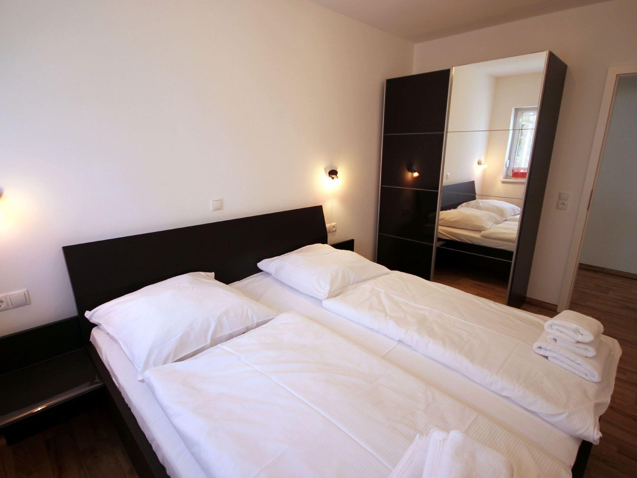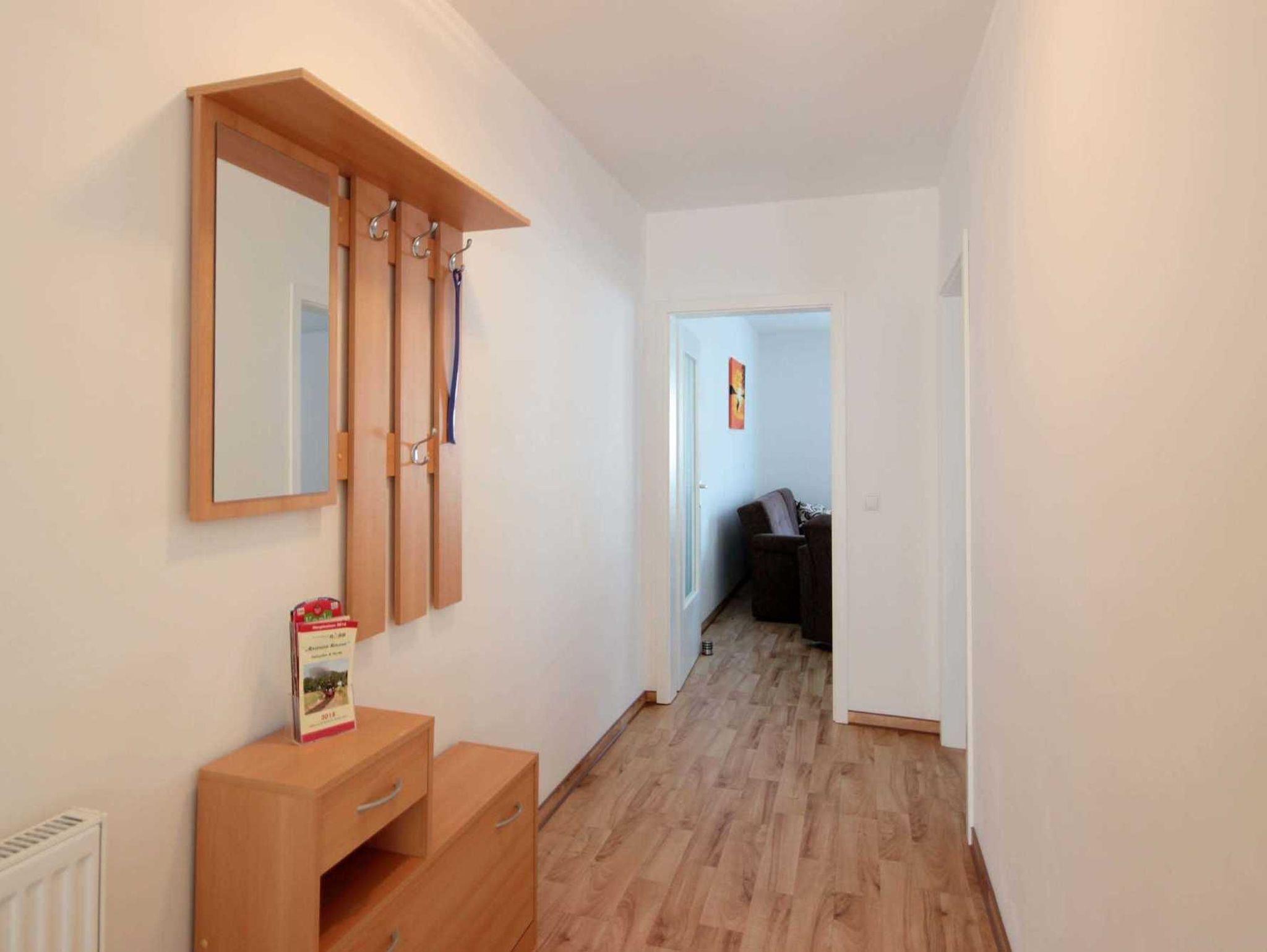Ihre 3-Raum-Ferienwohnung „Tom“ 90650 hat eine Größe von ca. 67 qm und ist für bis zu 4 Personen eingerichtet. Sie befindet sich im 1. Obergeschoß und verfügt über einen Balkon von dem aus Sie sogar einen kleinen Seeblick erhaschen können. Die Nichtraucherwohnung erreichen Sie über eine Außentreppe. Beim Betreten der Wohnung bietet Ihnen der vorgelagerte Flur viel Platz. Von dort aus gelangen Sie zum Badezimmer, Gäste-WC, den beiden Schlafzimmern und in den Wohnbereich. Der Wohnbereich teilt sich auf in eine Sitzgruppe mit Flachbild-TV und Musikanlage, sowie die Küchenzeile, einen Essbereich und den direkten Zugang zum Balkon. Die Küchenzeile ist mit Geschirrspüler, Mikrowelle, Backofen, Cerankochfeld, Kühl-/Gefrierkombination, Kaffeemaschine, Toaster, Wasserkocher und diversen anderen Küchenhelfern komplett ausgestattet. Weiterhin verfügt das Appartement über zwei Schlafzimmer mit je einem Doppelbett und Kleiderschrank. Eines, verfügt über einen weiteren Flachbild-TV. Das Hauptbadezimmer ist ein Tageslichtbad mit Waschtisch, ebenerdiger Regendusche und WC. Ein weiteres Gäste-WC ist mit Waschtisch und WC ausgestattet. Für unsere kleinen Gäste steht ein Kinderhochstuhl bereit.