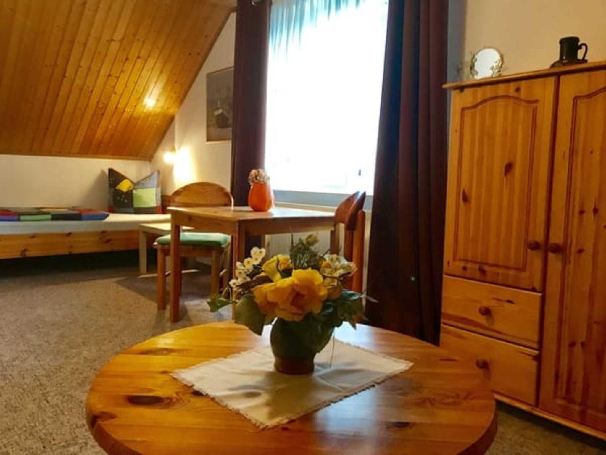 Ruhig gelegene Doppelhaushälfte. Im Erdgeschoss befindet sich der Schlafraum mit Doppelbett und Kleiderschrank. Wohnraum mit Couch und einem Sessel, Essecke und mit integrierte kleine Küchenzeile (Kühlschrank, 2 Platten-Cerankochfeld) und diverse Kleingeräte. Badezimmer mit Dusche und Wc.Am Wohnraum angrenzende Terrasse. 1. OG verfügt über 2 Einzelbetten, Schrank, Sitzbereich .
