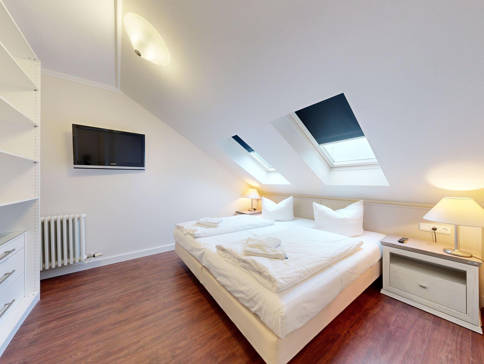 Ausstattung der großzügigen Komfort-Ferienwohnung im Dachgeschoss (2 Zimmer / 52 m², Haus Nr. 9):