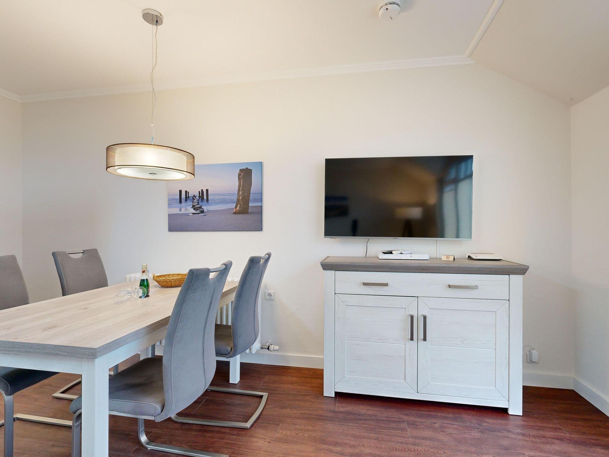 Wohnzimmer: große Couch, 2 Sessel, Sat-TV mit Flachbildschirm, WLAN-Internetanschluss , großer Essplatz mit 4 Stühlen