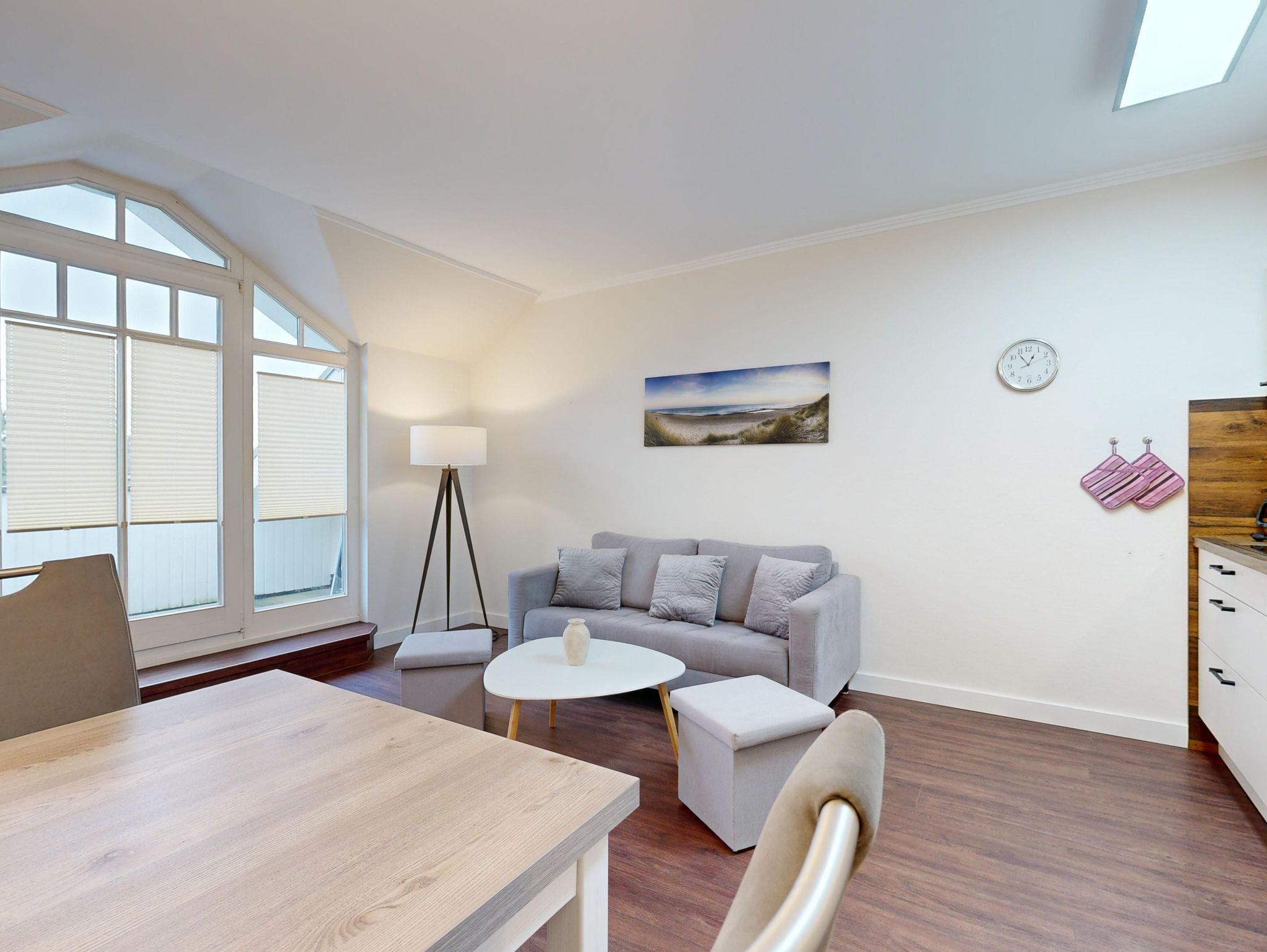 Im Dünenpark Binz befindet sich im Haus 9 die großzügige Komfort-Ferienwohnung im Dachgeschoss (2 Zimmer / 52 m²) mit 1 Schlafzimmer, einer Schlafcouch und Balkon