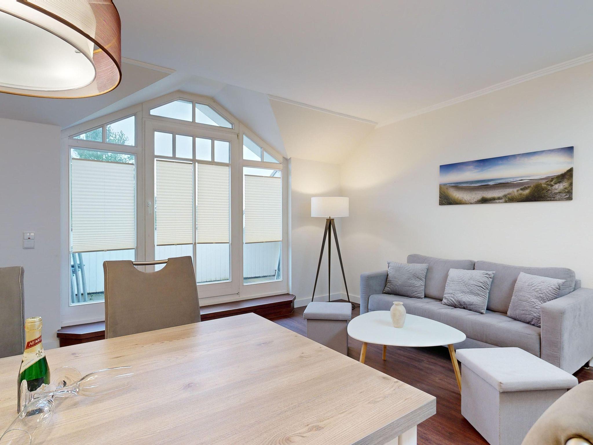 Moderne Ferienwohnung Dünenpark Binz, strandnah, mit Balkon, WLAN und Tiefgaragenplatz.