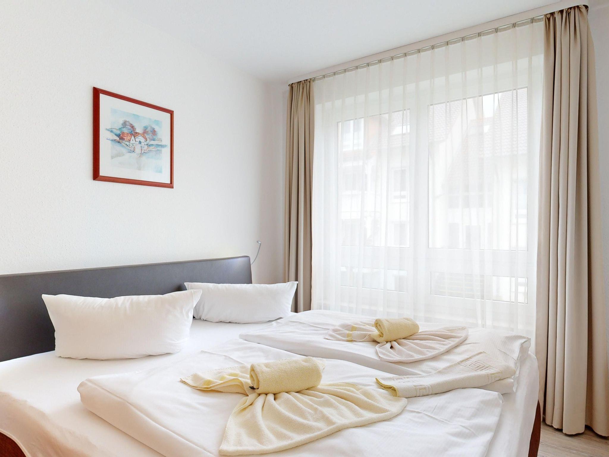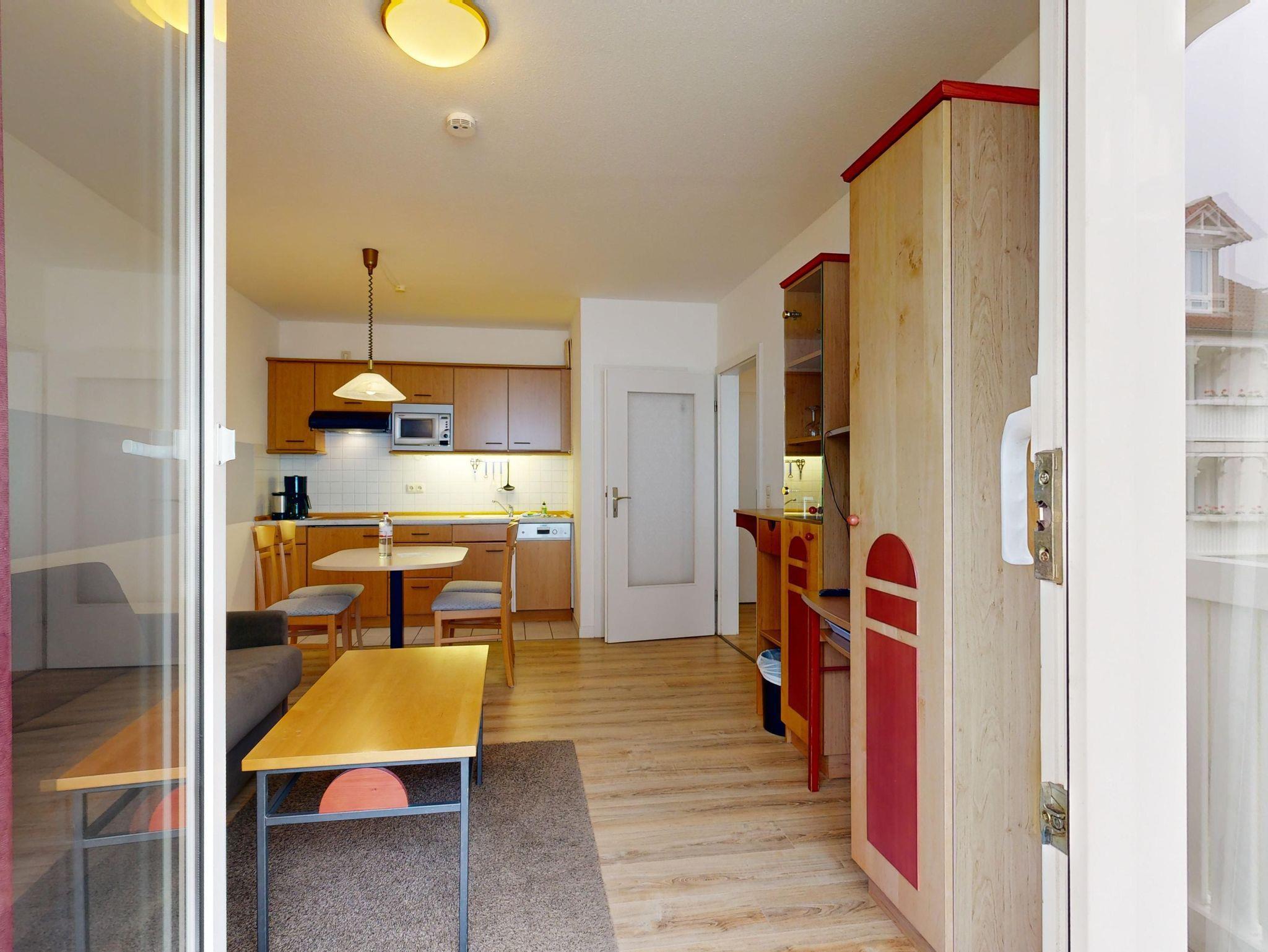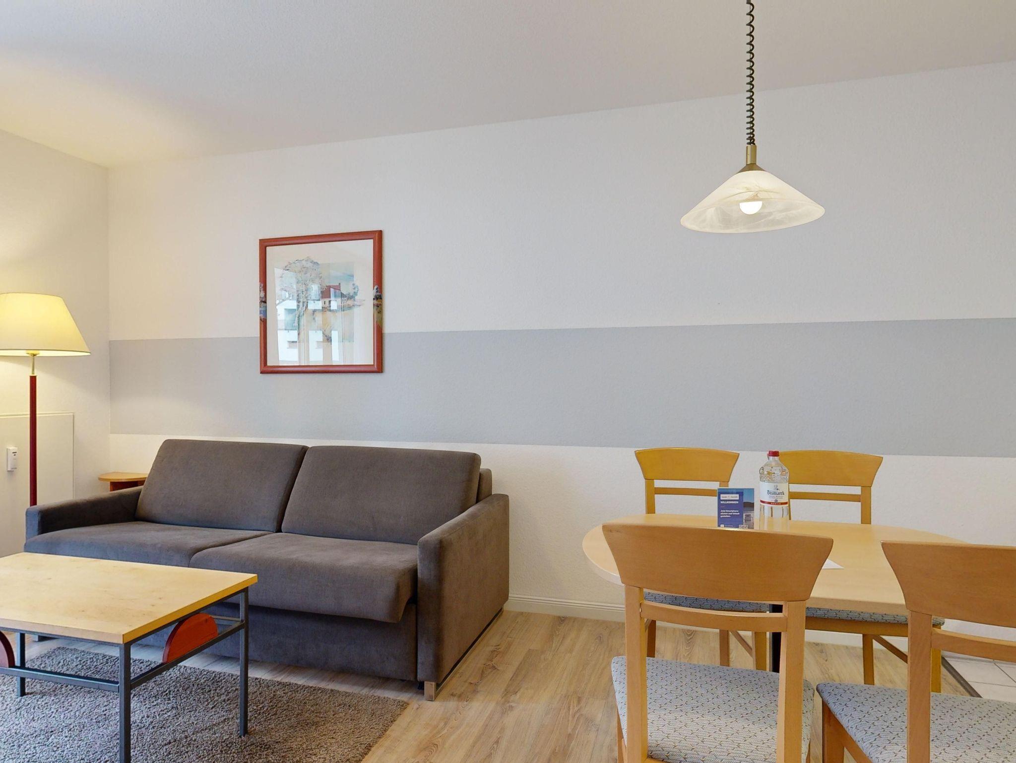 Ferienwohnung Binzer Sterne 52 für bis zu 4 Personen im 1. OG (2 Zimmer / 40 m²) des Appartementhauses Binzer Sterne, 1 Schlafzimmer, Parkplatz (gegen Gebühr) und freies WLAN.
