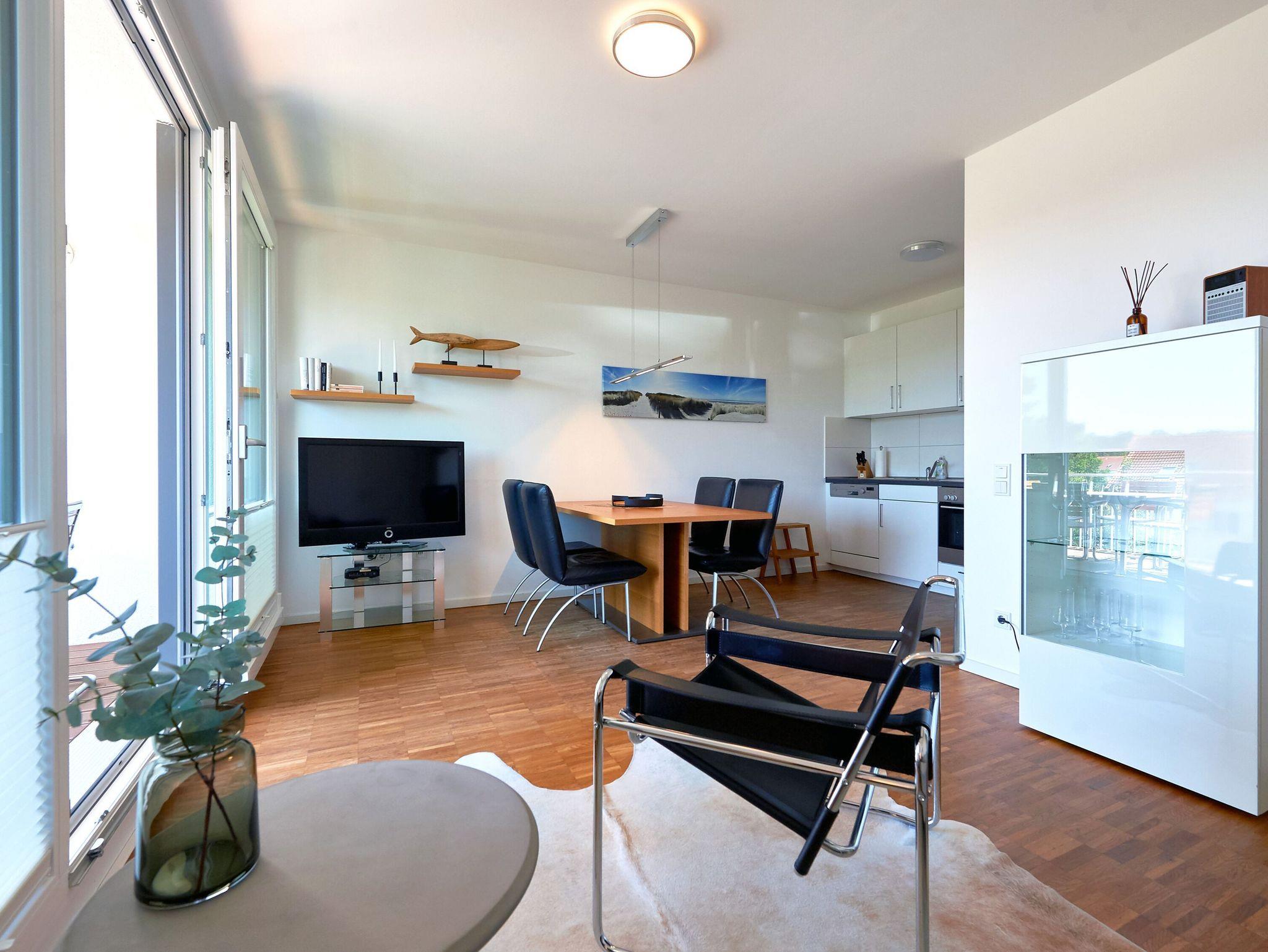 In wunderbar zentraler und strandnaher Lage erwartet Sie dieses zauberhafte 3-Raum-Appartement mit Balkon im zweiten Obergeschoss des modernen Appartementhauses - ganz bequem mit dem Aufzug zu erreichen.