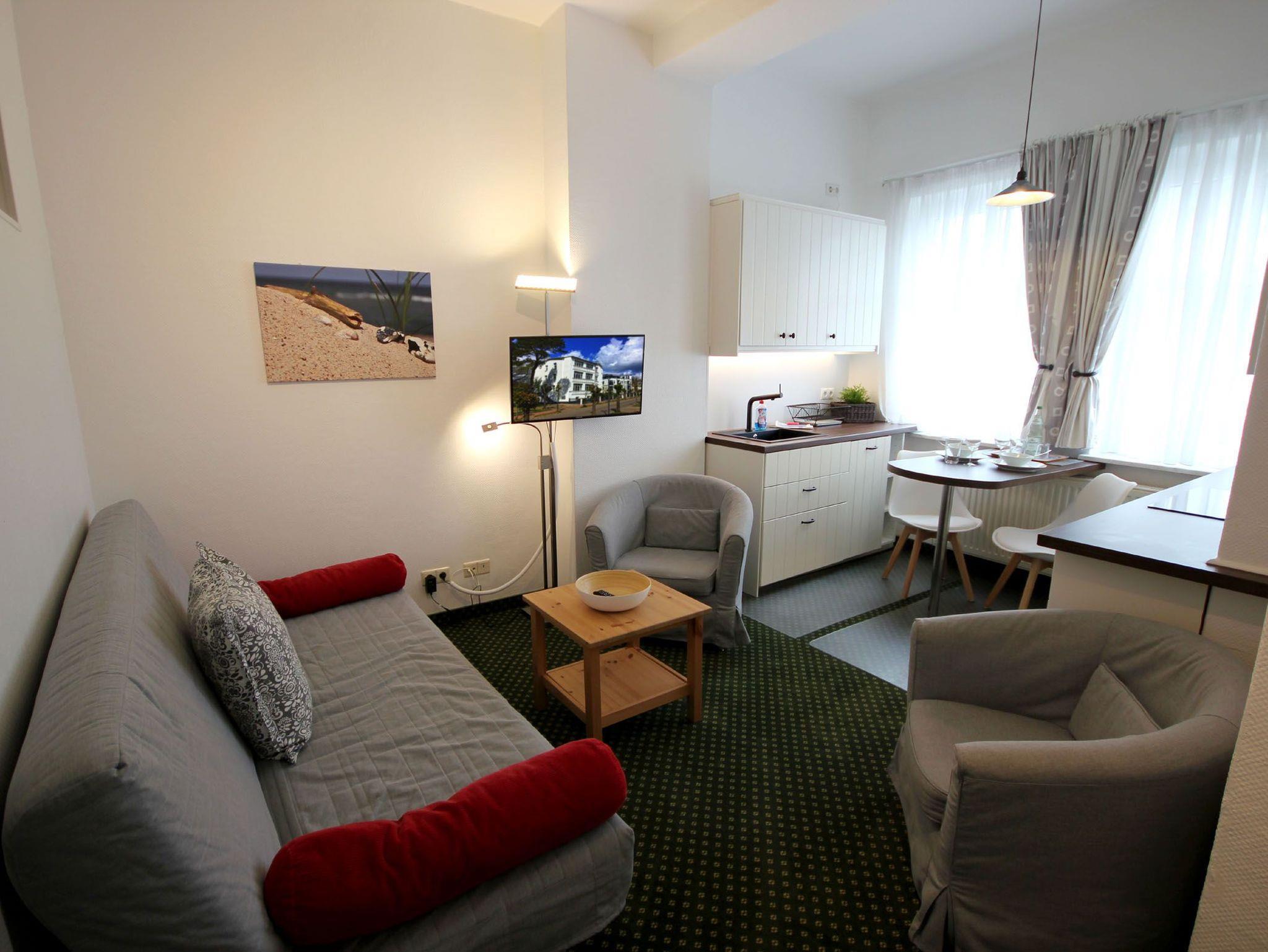 Gemütliche 2-Raum-Nichtraucherwohnung in Binz mit Balkon und Blick zur Strandpromenade, nur 120 m vom Strand entfernt.