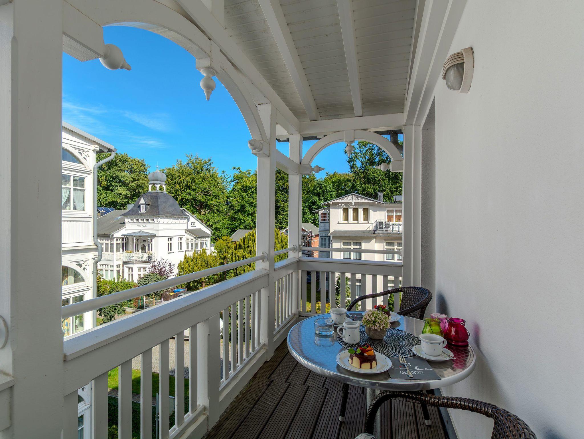 Moderne Ferienwohnung in Binz mit Strandkorb und zwei Balkonen nahe Ostseestrand.