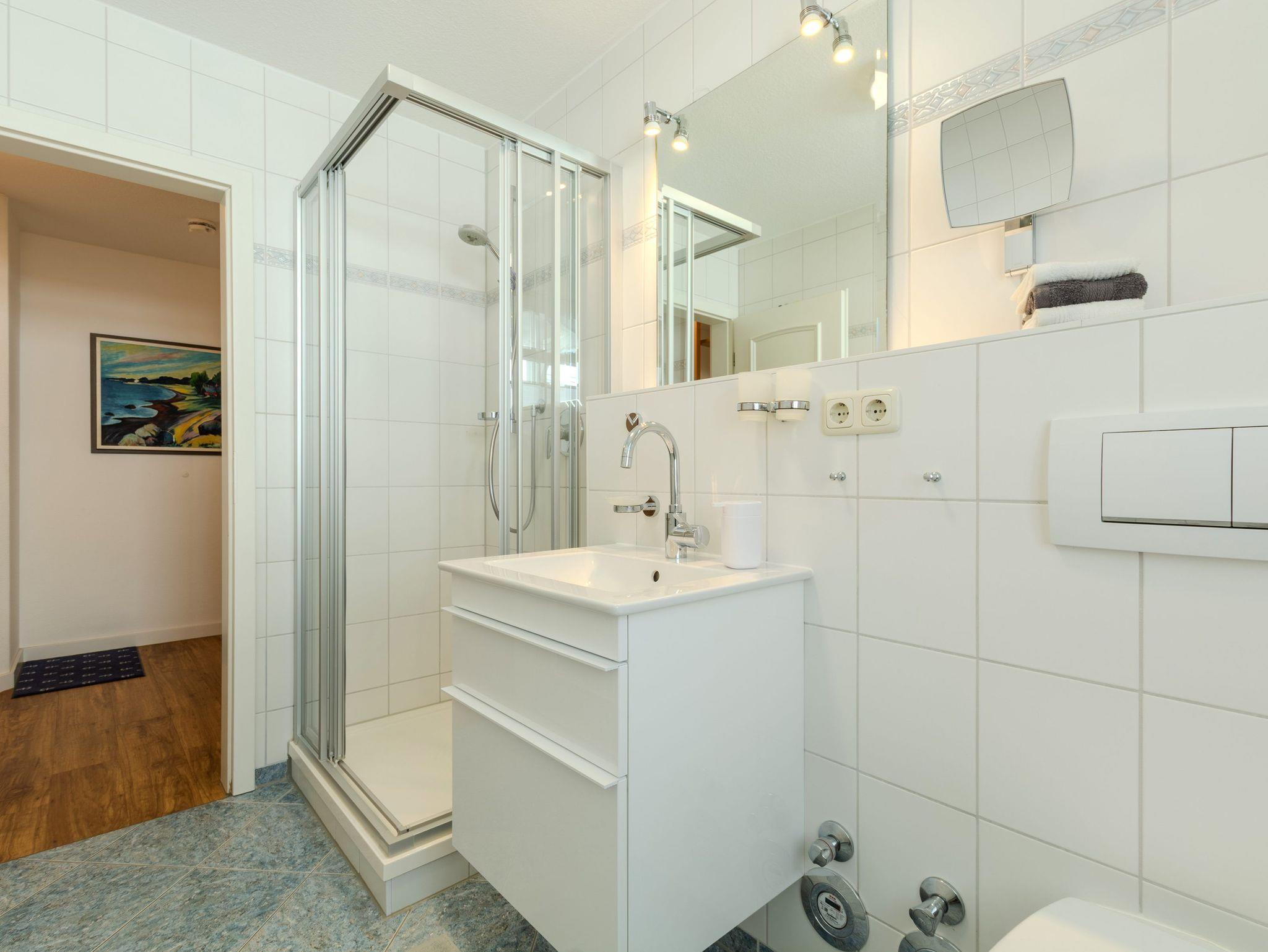 Vom Wohnzimmer aus gelangen Sie auf einer der beiden Balkone, von dem aus sich der Blick auf die benachbarten Villen genießen lässt. Das separate Schlafzimmer bietet mit einem komfortablen Doppelbett, ausreichend Stauraum und mit einem eigenen Balkon einen ruhigen Rückzugsort. Das Badezimmer ist mit einer Dusche ausgestattet.