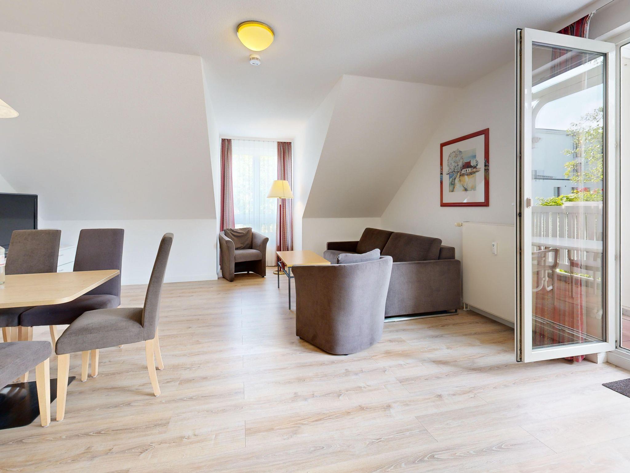 Komfortables Appartement in ruhiger Lage von Binz, ideal für Radfahrer und Wanderer, mit Balkon und kostenfreiem WLAN.