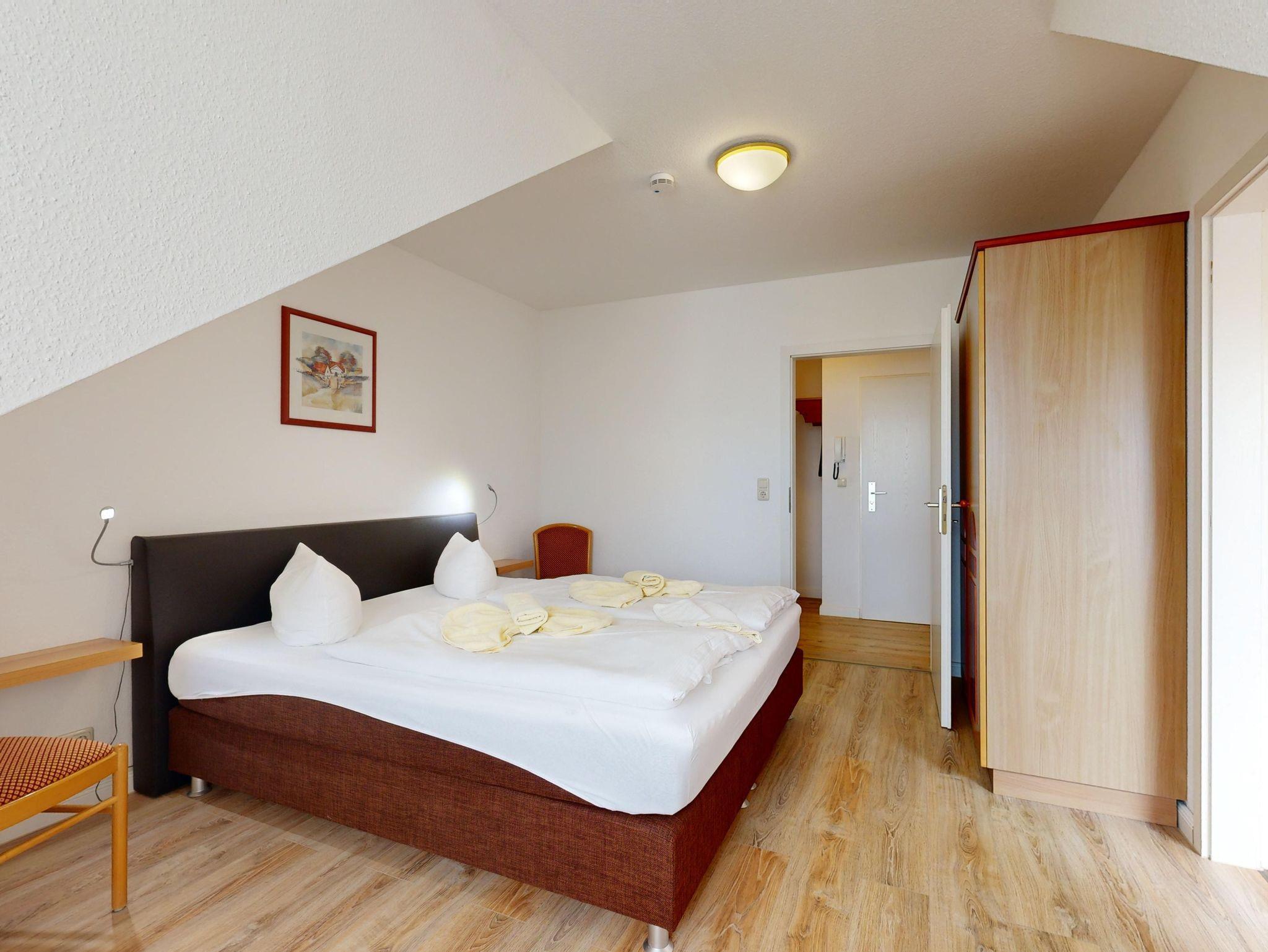 1 Schlafzimmer mit einem Boxsprinbett (Doppelbett)