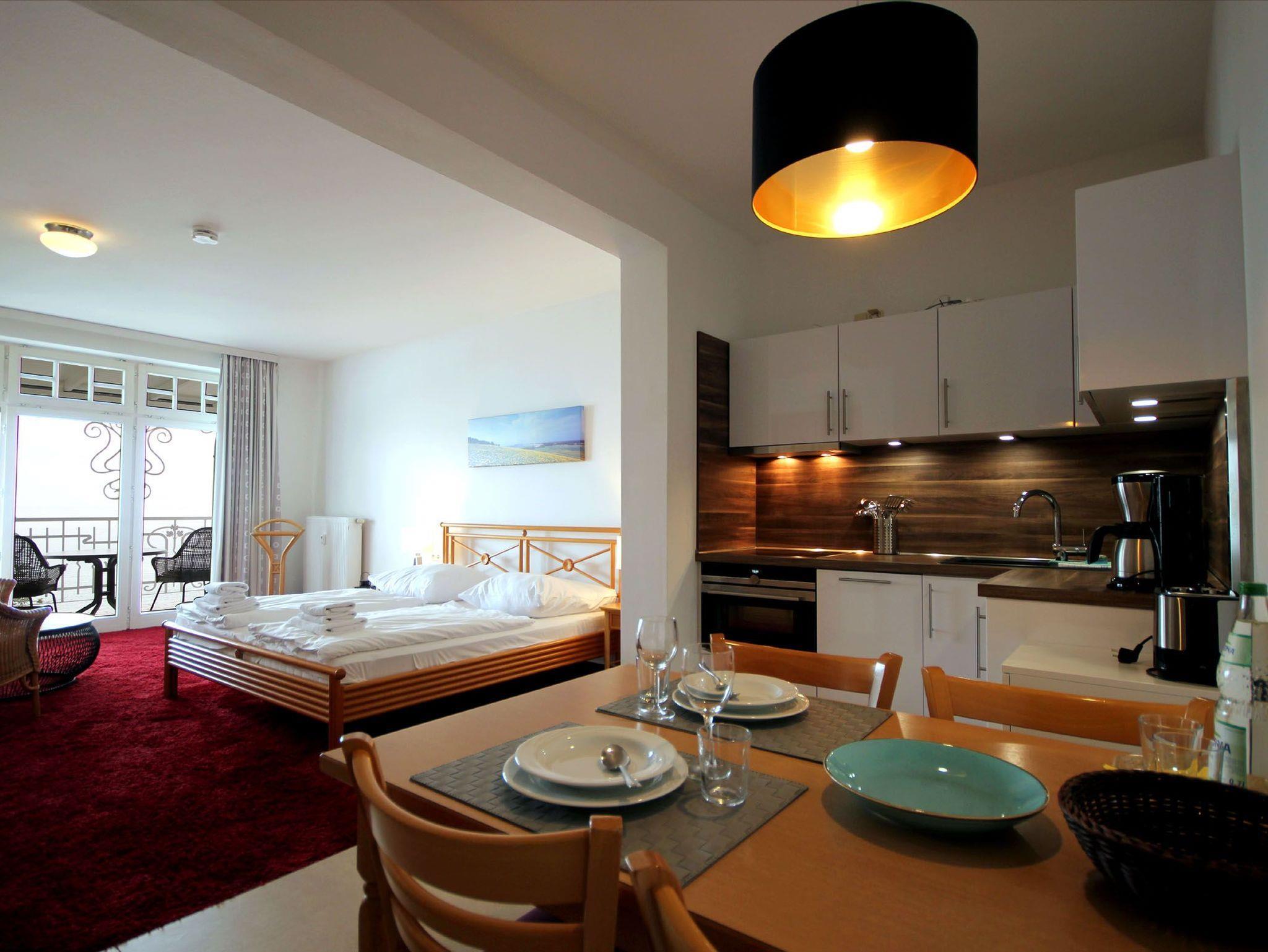 Moderne 1-Zimmer Ferienwohnung mit Meerblick, Sauna, WLAN und kostenfreiem Parkplatz in Binz.