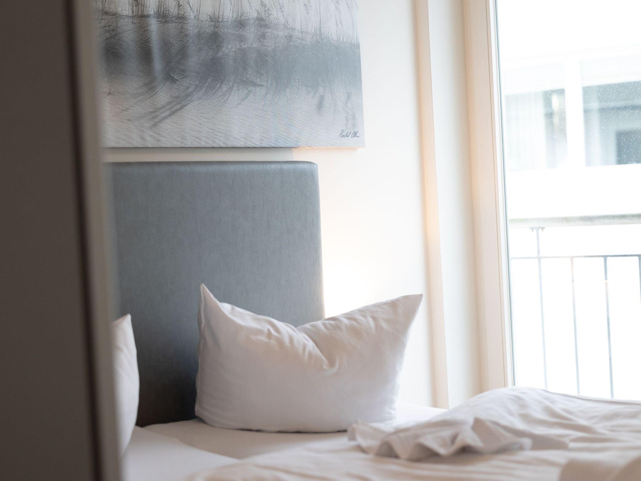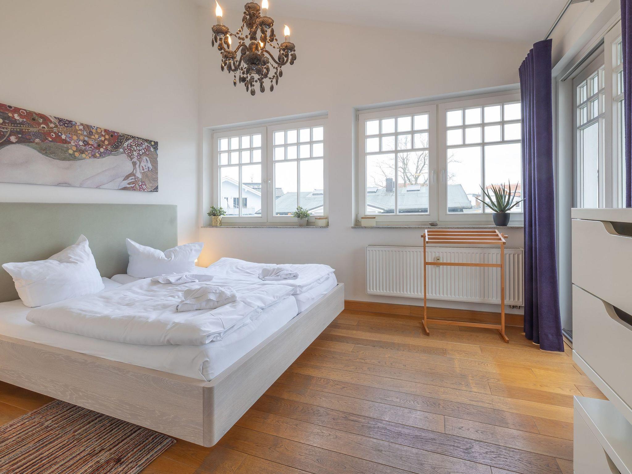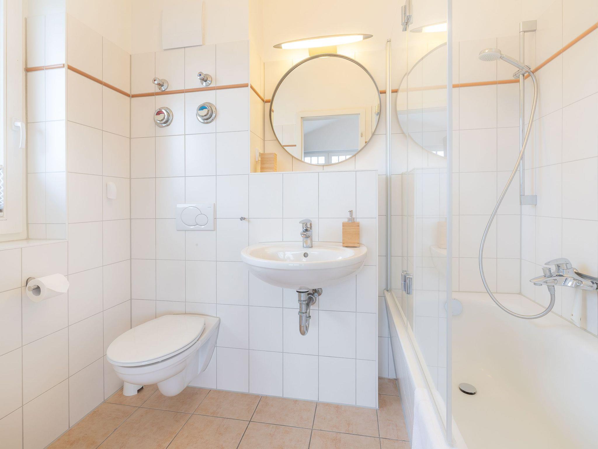 Von einem der beiden Schlafzimmer gelangen Sie auf den 2. Balkon des Appartements (Morgensonne) und Sie haben ein Bad en Suite mit Badewanne.
