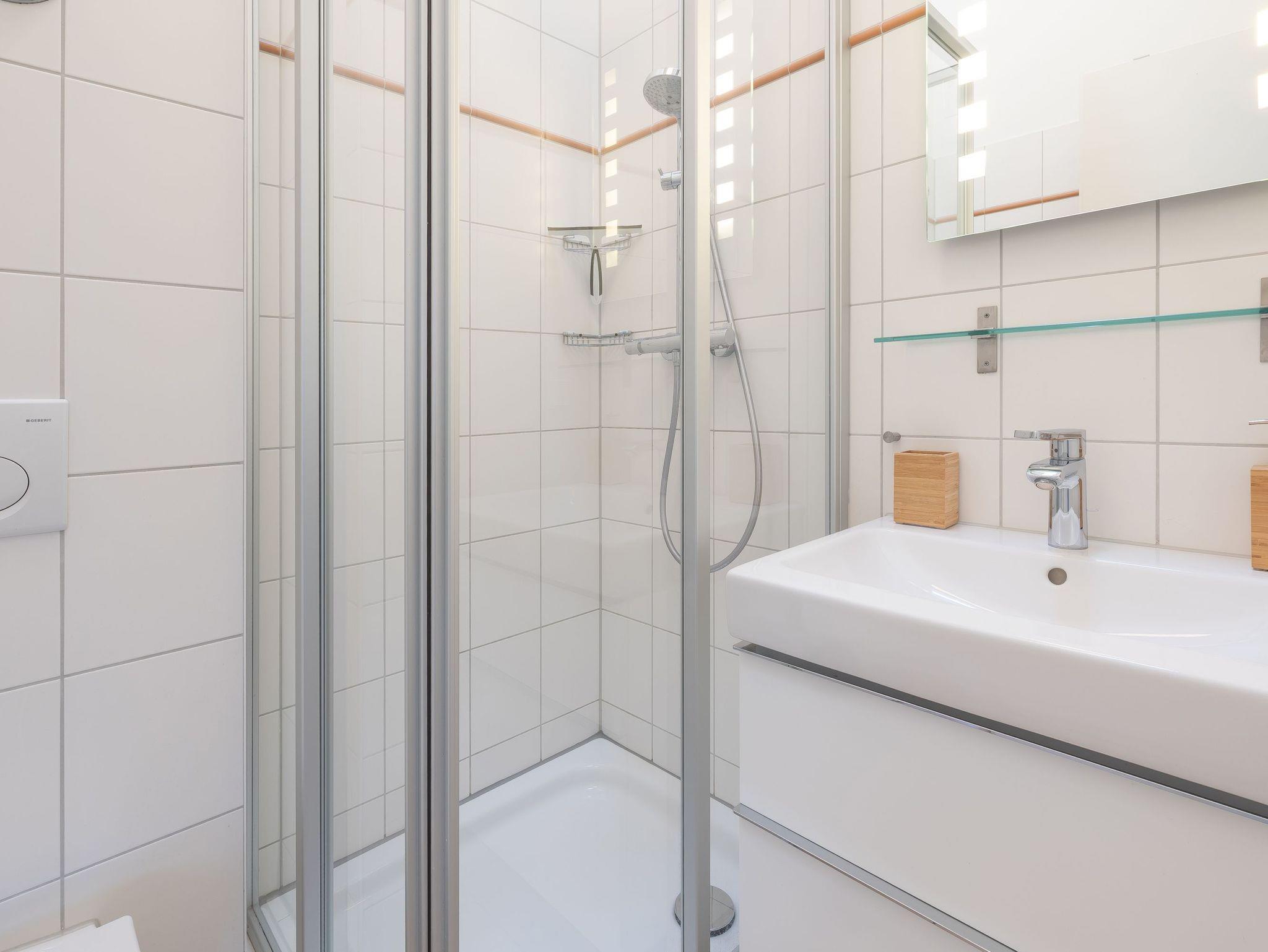 Im anderen Doppel-Schlafzimmer gibt es einen weiteren Ultra HD-Flachbildfernseher und das zugehörige Duschbad ist über den Flur zu erreichen.