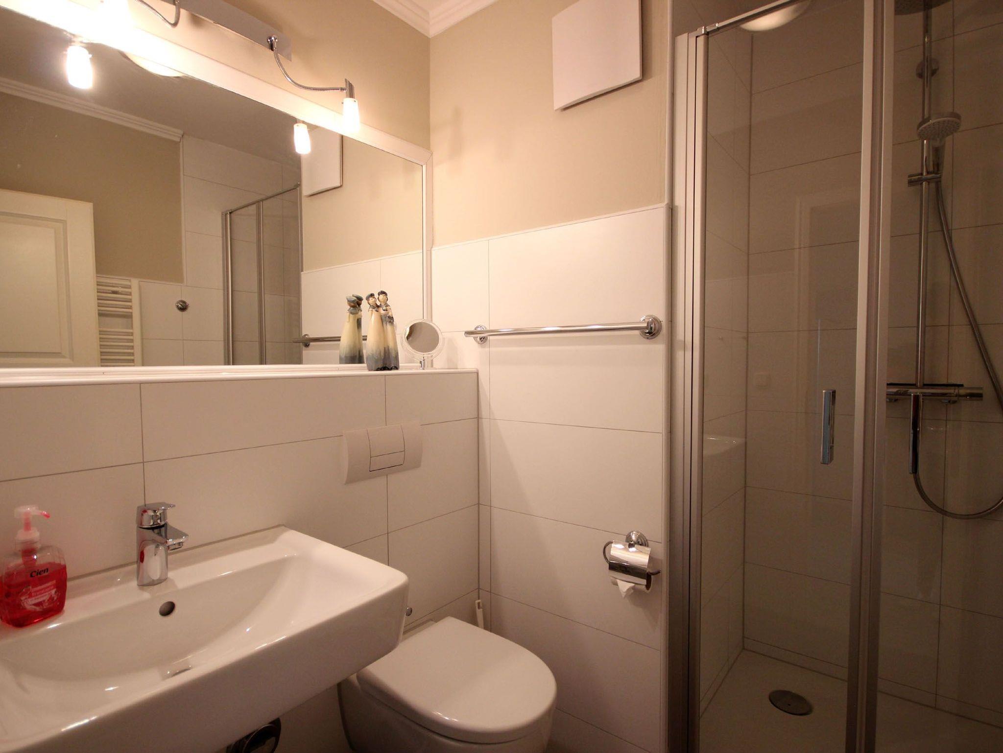 Neben dem lichtdurchfluteten Wohnraum mit integrierter Küche gibt es einen separaten Schlafraum und ein Badezimmer mit Waschtisch, Dusche und WC. Im Schlafraum befindet sich ein Doppelbett und ein Kleiderschrank mit genügend Stauraum. Im Wohnbereich können auf dem Schlafsofa weitere zwei Personen schlafen. Sie finden dort auch einen Flachbild-TV, einen Radio/CD-Spieler und einen kostenlosen Internetzugang. Die Küche ist mit Geschirrspülmaschine, Mikrowelle, Kühlschrank, Backofen, Cerankochfeld, Kaffeemaschine, Wasserkocher und diversen anderen Kleingeräten und Küchenhelfern komplett ausgestattet. Ein wohnungseigener Garagenstellplatz (Duplexparker 1,50 m hoch) gehört zur Wohnung.