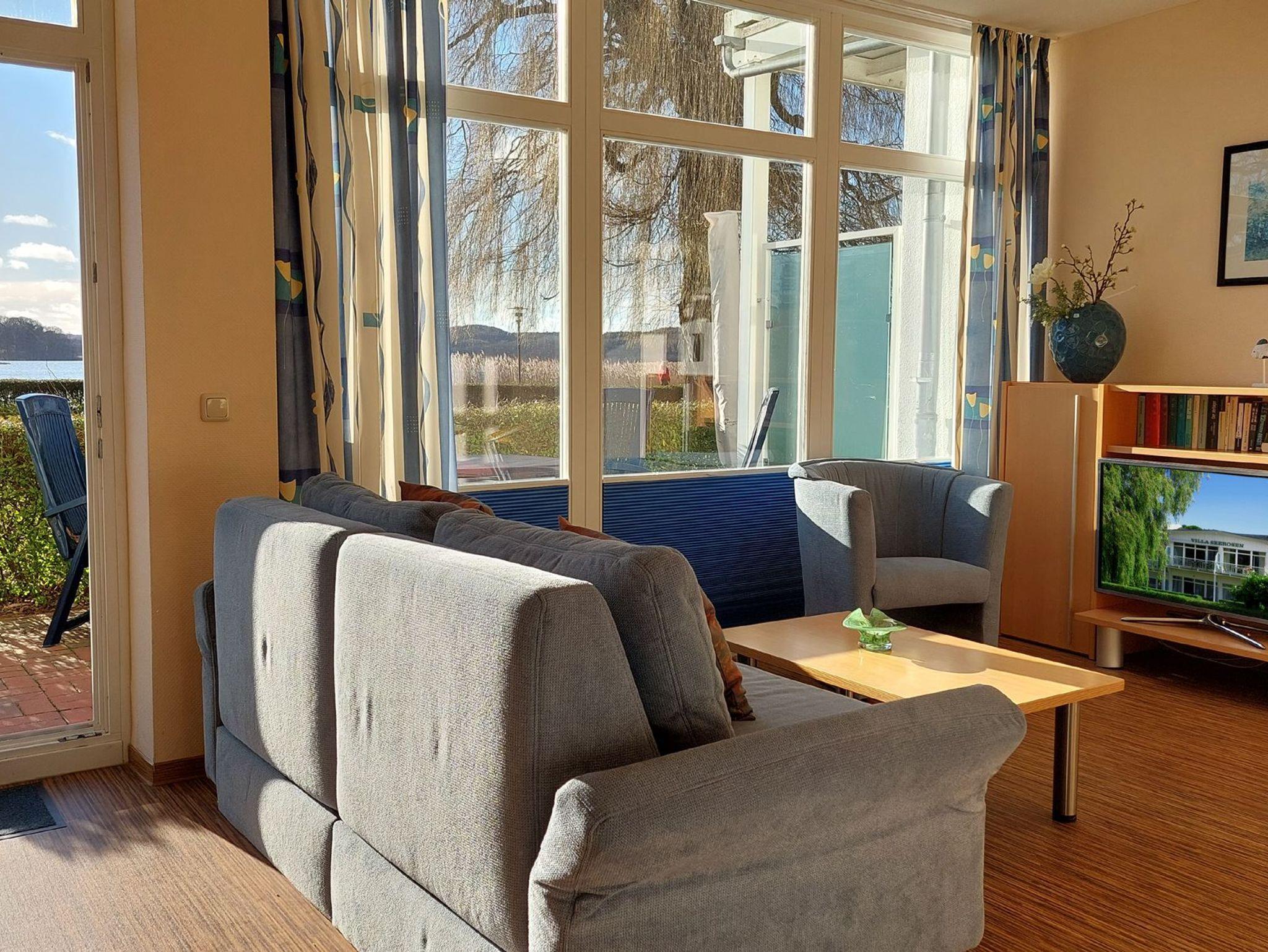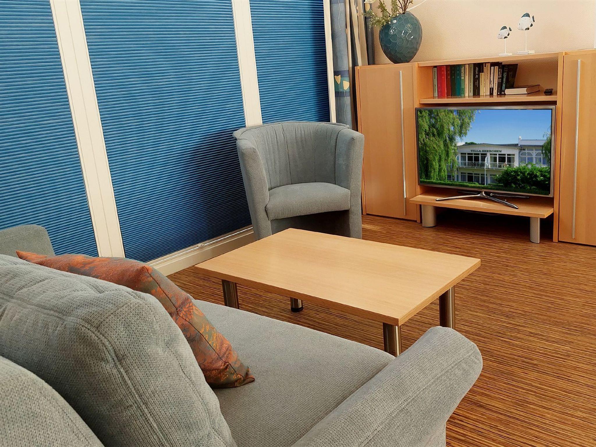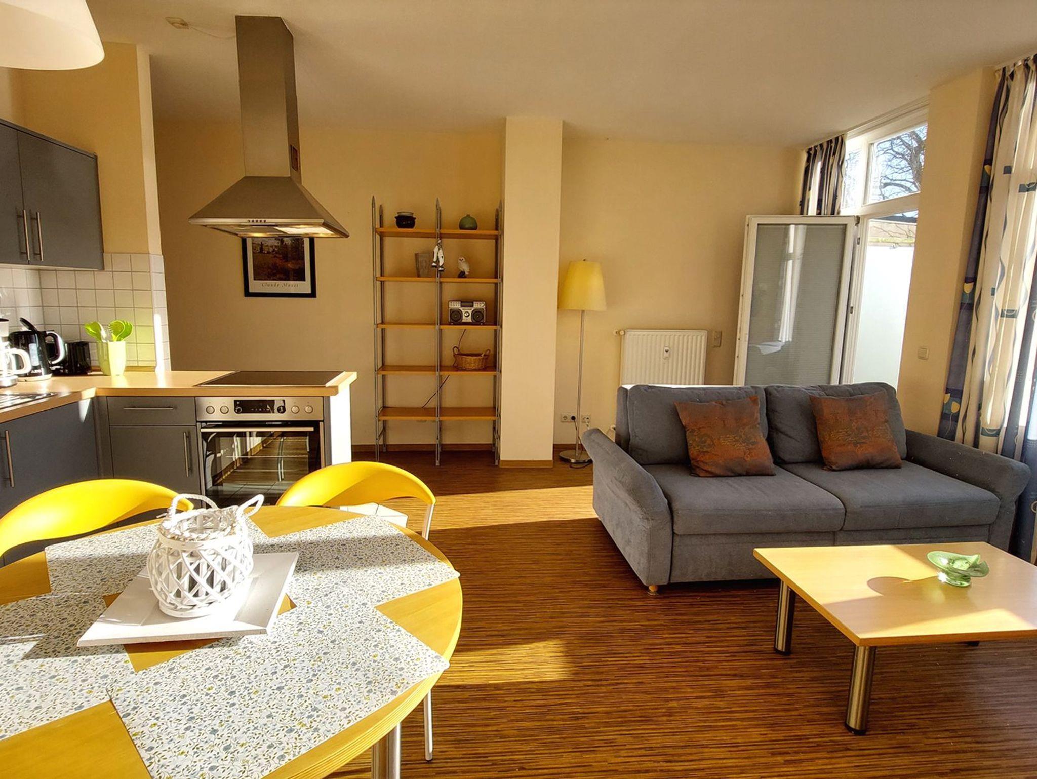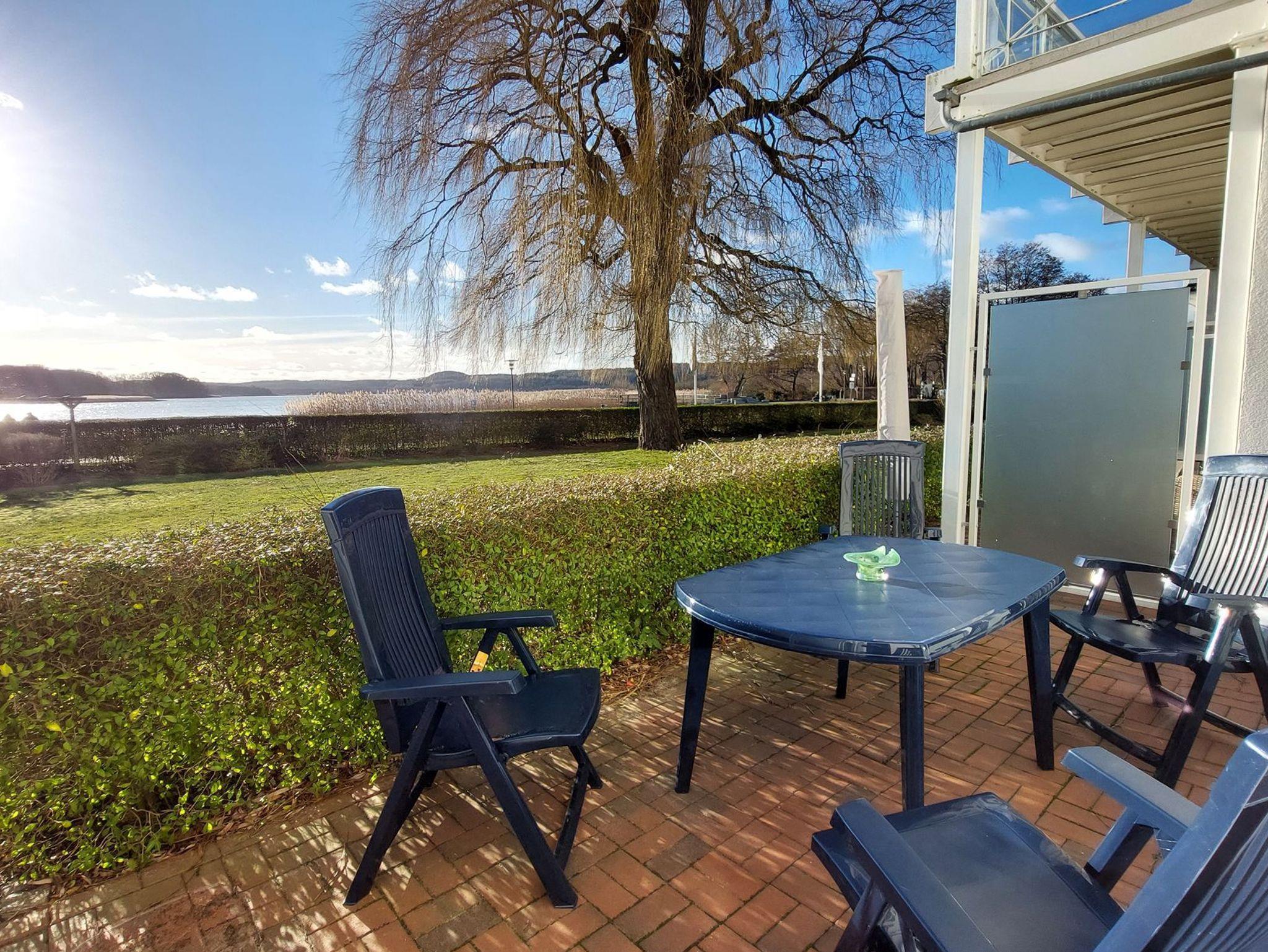 Die helle Nichtraucherwohnung in der Villa Seerosen bietet Seeblick, Südterrasse und modernen Komfort direkt am Schmachter See in Binz.