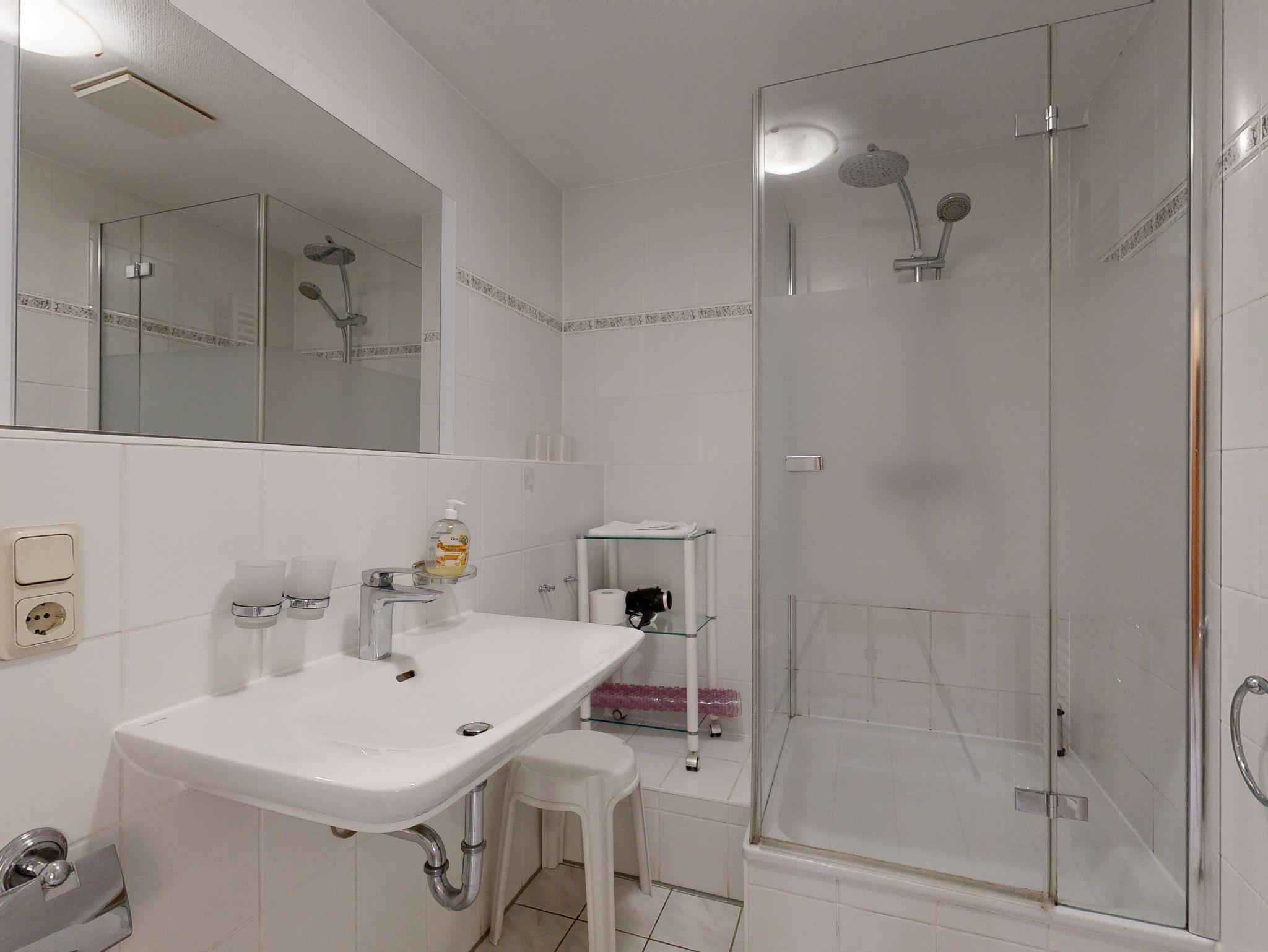 * 1 Badezimmer mit Dusche, WC und Föhn