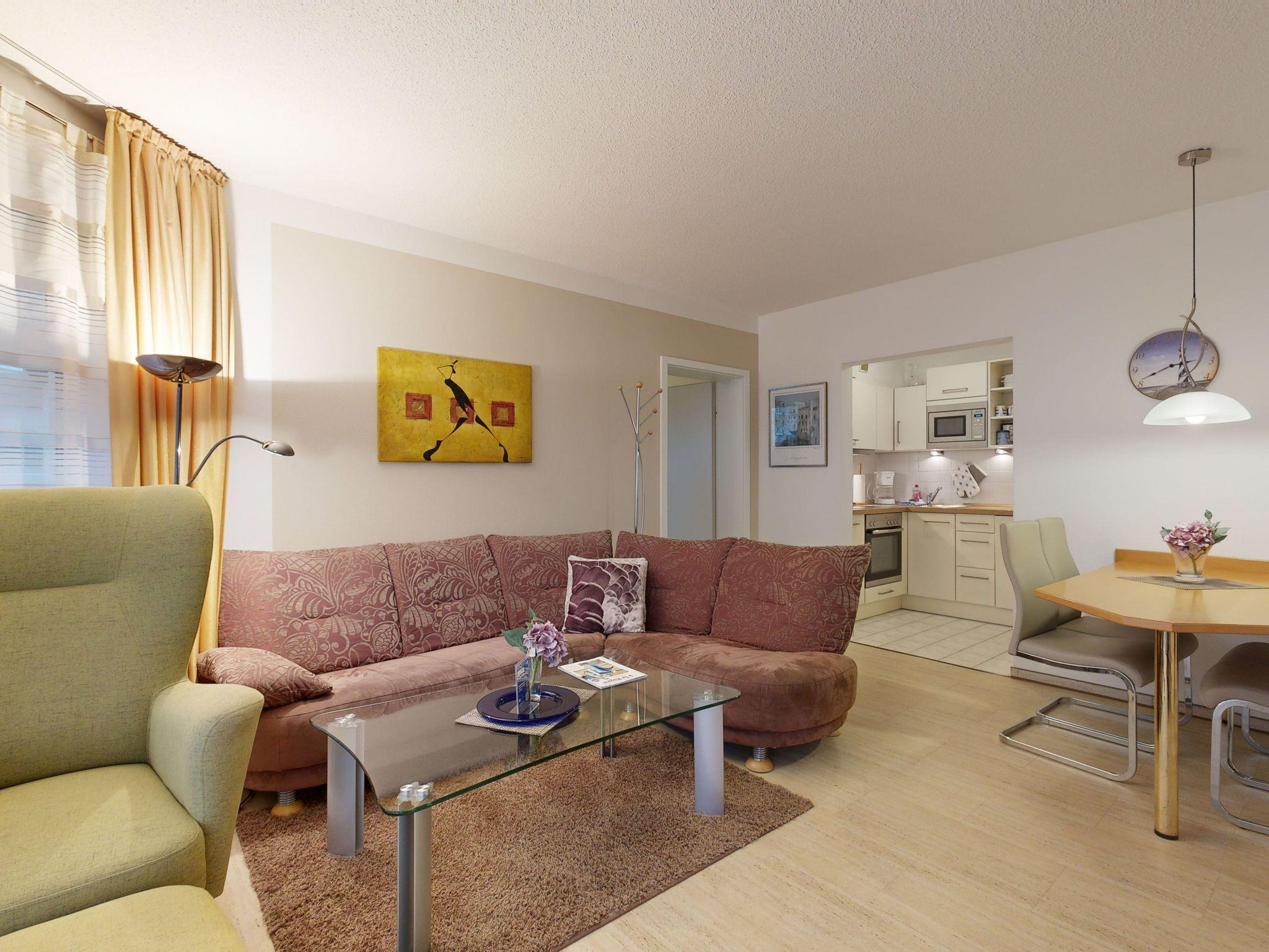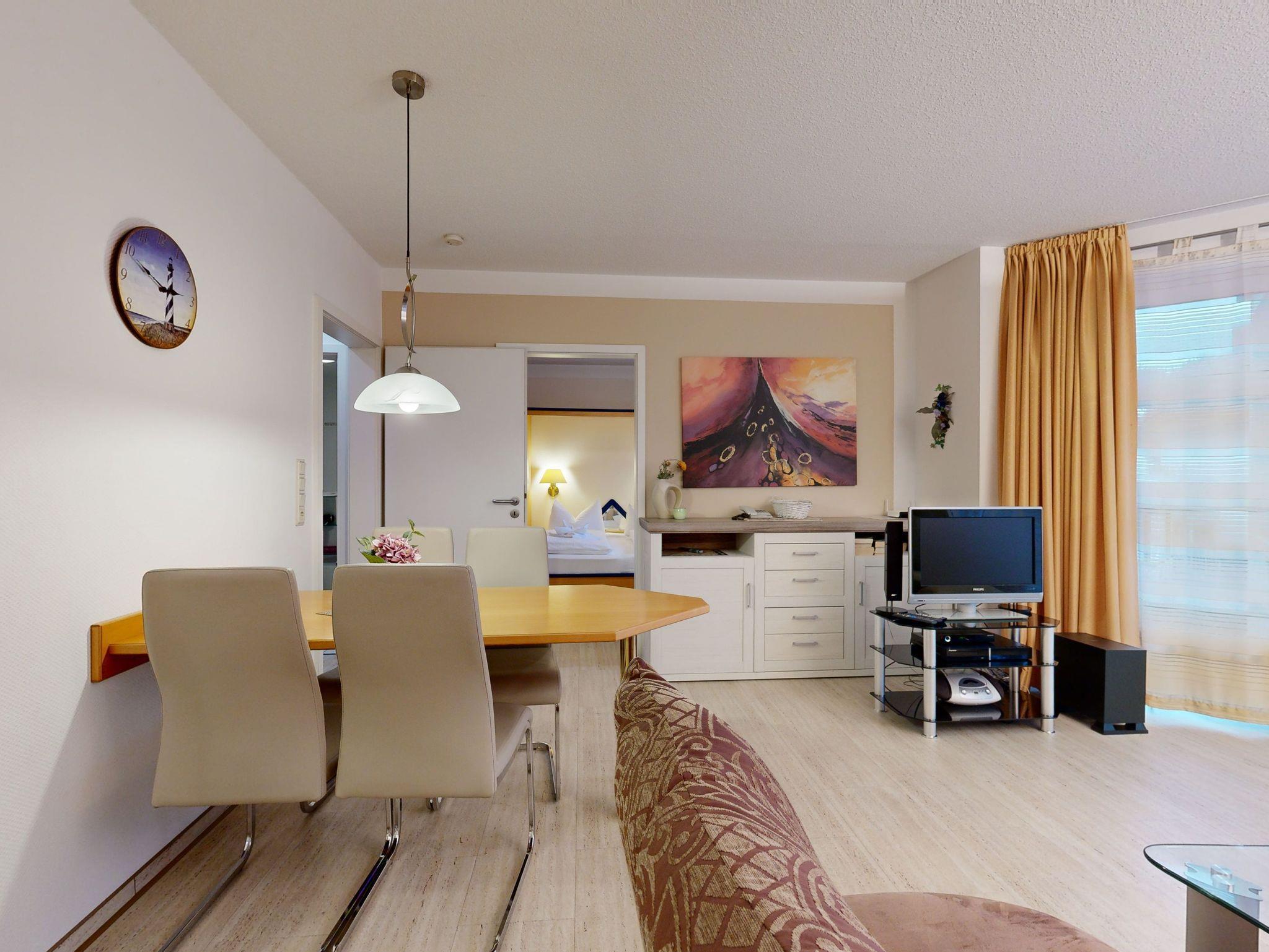 * Wohnzimmer: Couchgarnitur, Kabel-TV, Radio, DVD-Player und Internetzugang (WLAN oder Kabel möglich) und Essplatz