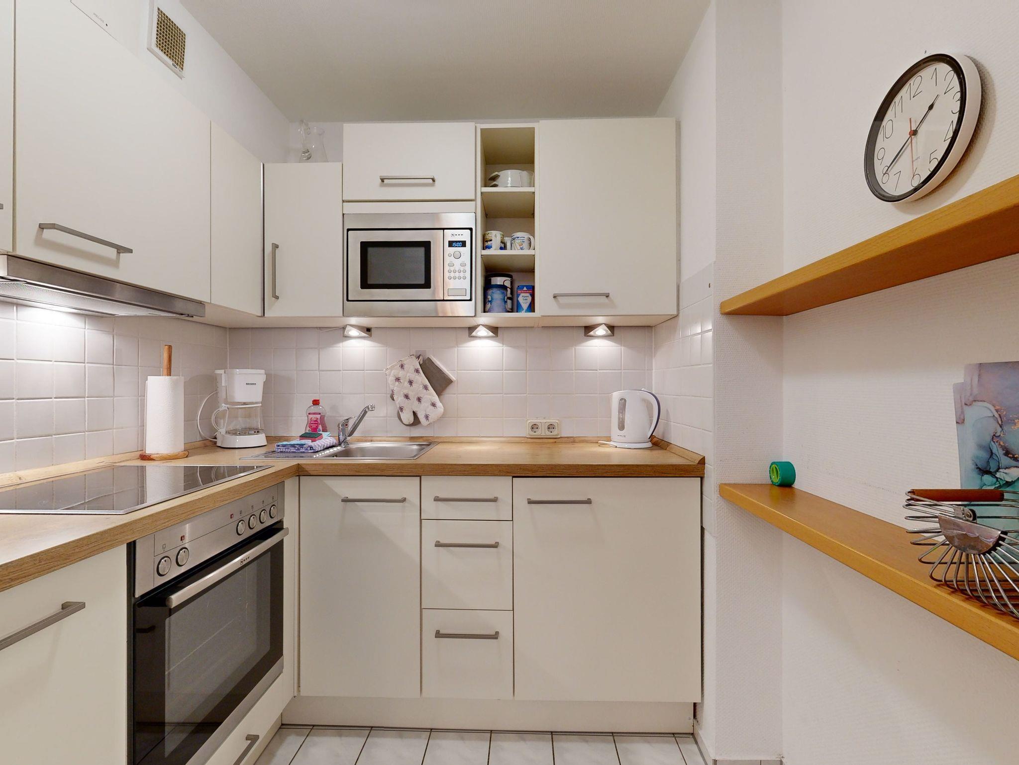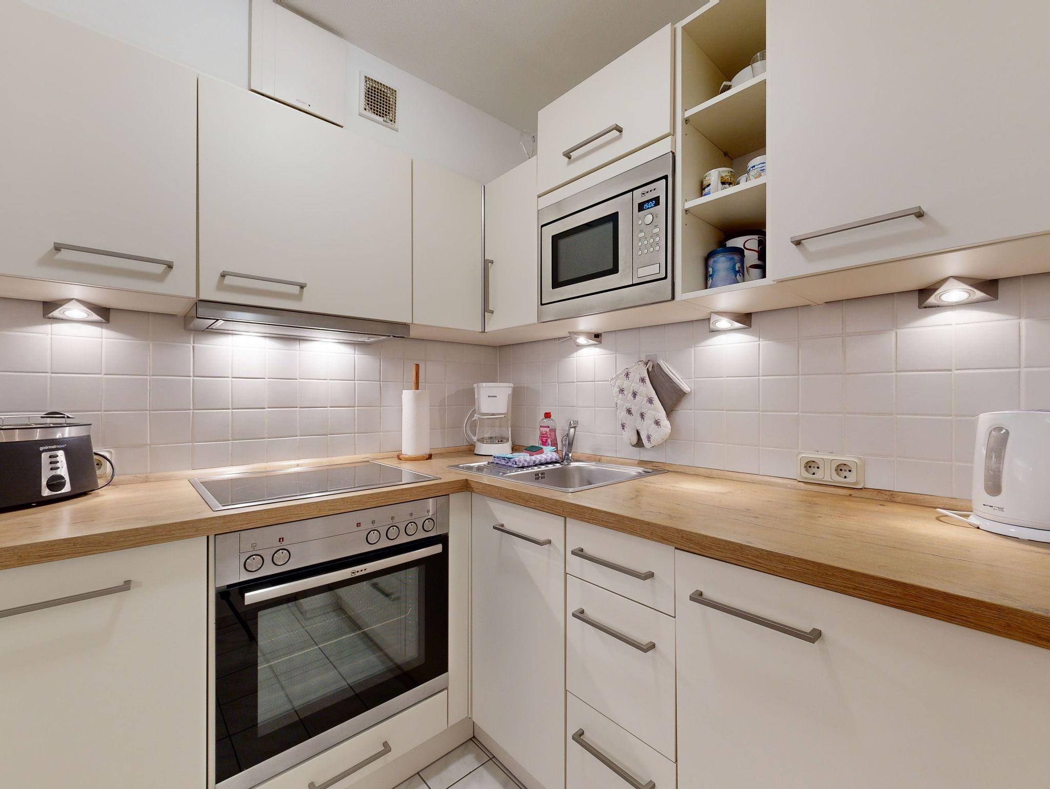 * Küche: Moderne Küchenzeile, E-Herd, Backofen, Spülmaschine, Mikrowelle, Wasserkocher, Kaffeemaschine, Toaster
