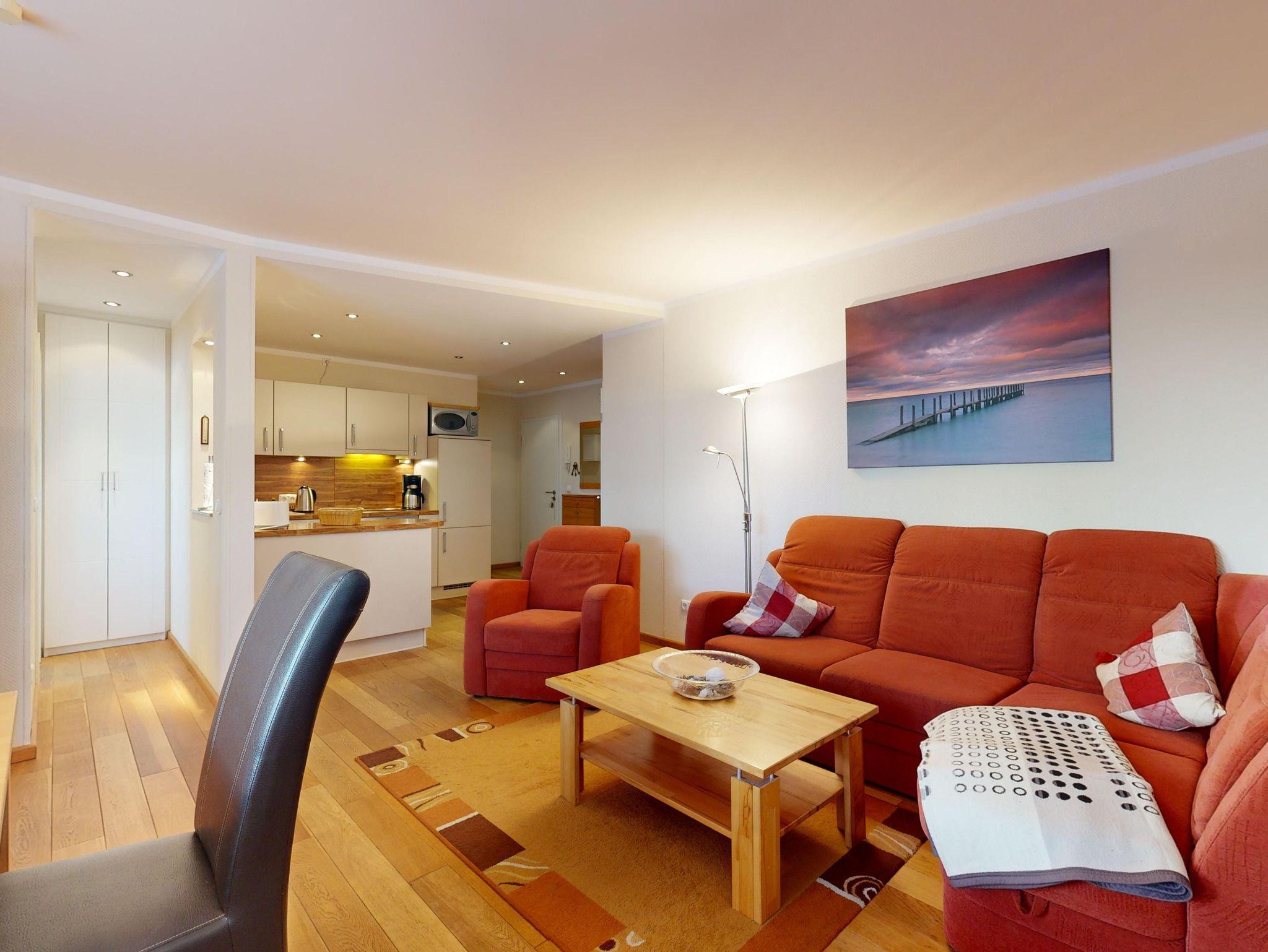 Eine hochwertig ausgestattete Ferienwohnung mit 2 Schlafzimmern, Fußbodenheizung, W-LAN-Internetanschluss, Tiefgaragenstellplatz und Strandkorb am Strand inklusive.
