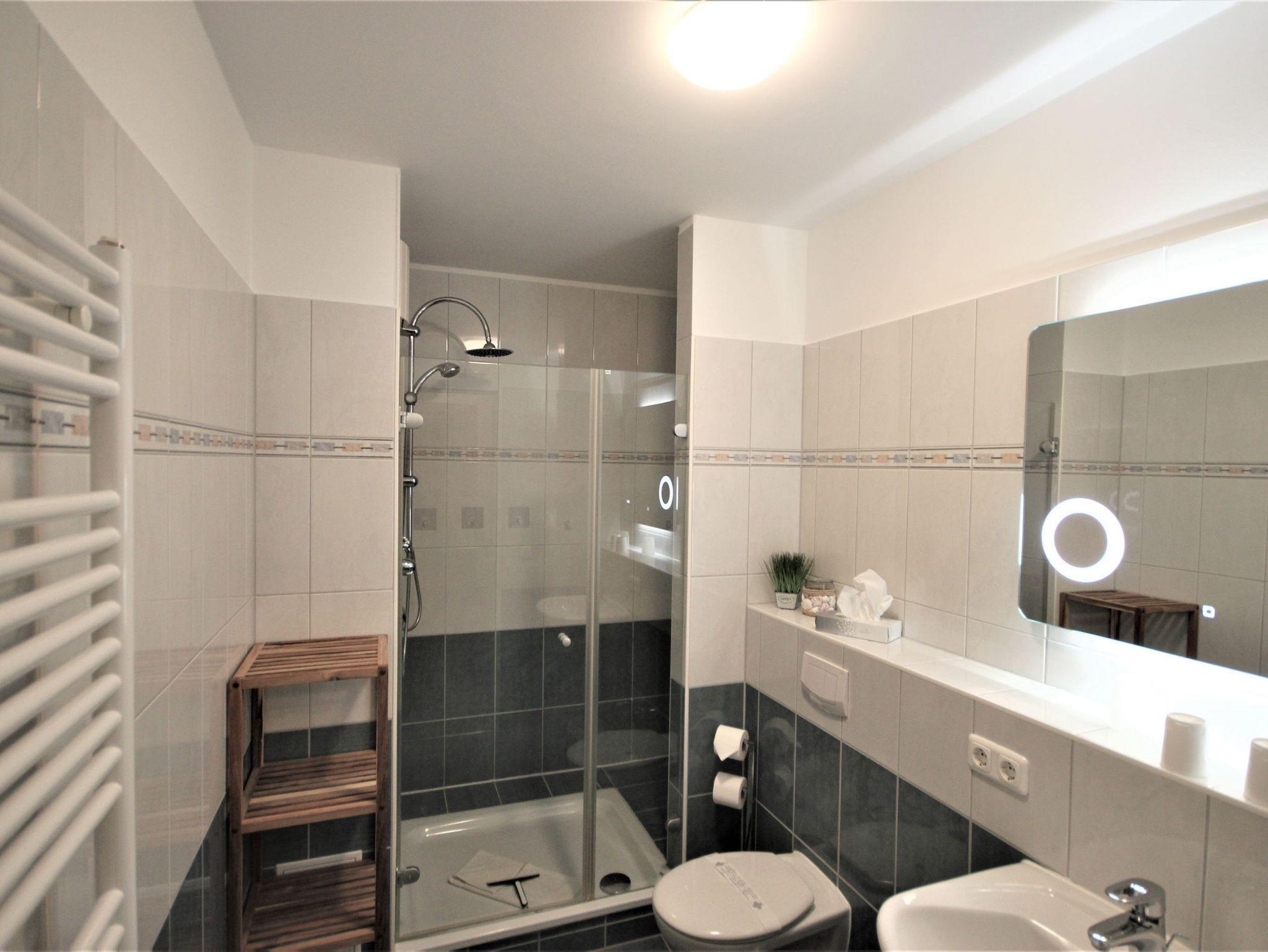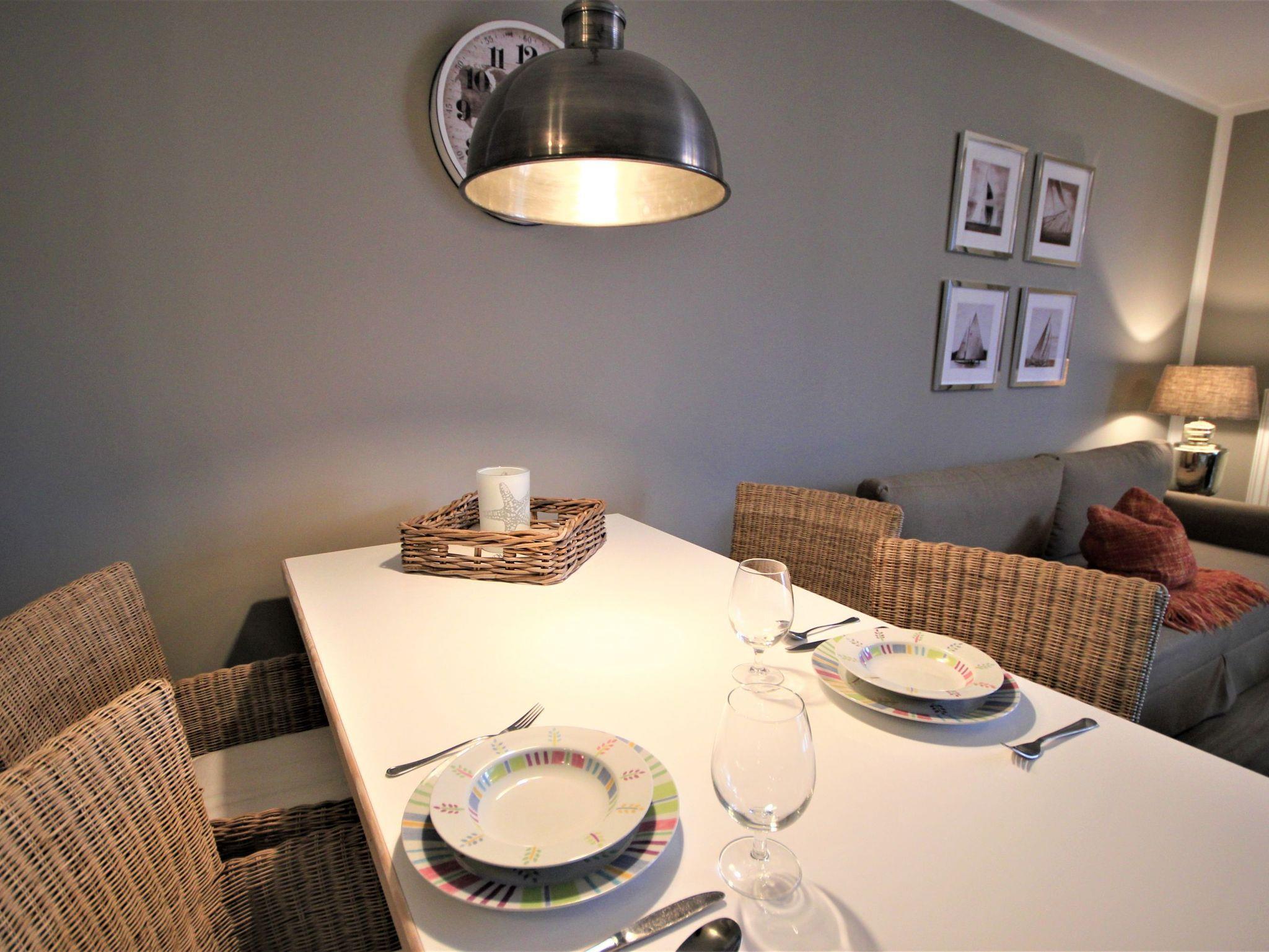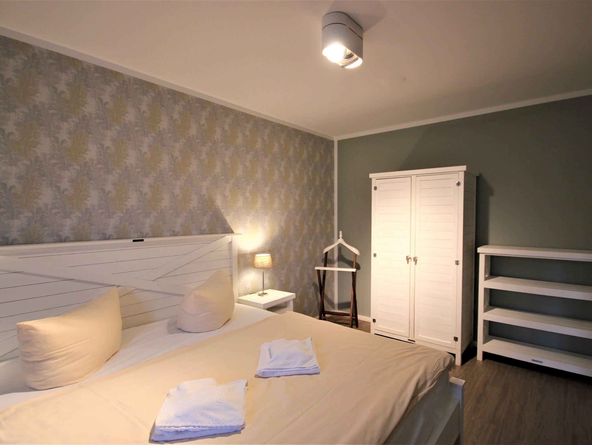 Ihre 2-Zi. Wohnung 219RB11 (Nichtraucher) besitzt eine Größe von ca. 57 qm und ist mit bis zu 4 Personen belegbar. Sie befindet sich im 1. Obergeschoss des Hauses. Auf dem Frühstücksbalkon werden Sie von der Morgensonne gekitzelt. Hier befindet sich auch ein Strandkorb, welcher zum Verweilen einlädt. Die moderne Ferienwohnung in Vintage-Optik teilt sich auf in einen Flur mit Garderobe und großem Schrank für Ihr Gepäck, einen Wohnraum mit offener Küche und Essbereich, ein separates Schlafzimmer sowie ein Duschbad. Der großzügige Wohnbereich verfügt über eine Sitzecke mit Schlaffunktion für die 3. / 4. Person, einen Flachbild-TV samt DVD-Player, Radio sowie einen gebührenfreien WLAN-Zugang. Im Schlafraum befindet sich ein Doppelbett, ein zusätzlicher TV und ein Kleiderschrank. Vom Schlafzimmer und auch vom Wohnbereich gelangen Sie auf den Balkon. Verdunklungsstoffe im Wohn- und Schlafbereich bereiten eine behagliche Nachtruhe. Die Küchenzeile ist mit Geschirrspüler, Ceranfeld, Backofen, Kühl-/Gefrierkombination, Kaffeemaschine, Wasserkocher, Toaster und anderen diversen Küchenhelfern komplett ausgestattet. Das Badezimmer verfügt über einen Waschtisch mit großem Spiegel, eine Dusche, WC und einen Handtuchheiztrockner. Ein kostenfreier Tiefgaragenstellplatz steht Ihnen während Ihres Aufenthaltes zur Verfügung. Rundum eine schön eingerichtete Wohnung, die zum Entschleunigen einlädt. Genießen Sie Ihren Urlaub und machen Sie diese Wohnung zu Ihrem zweiten Zuhause!