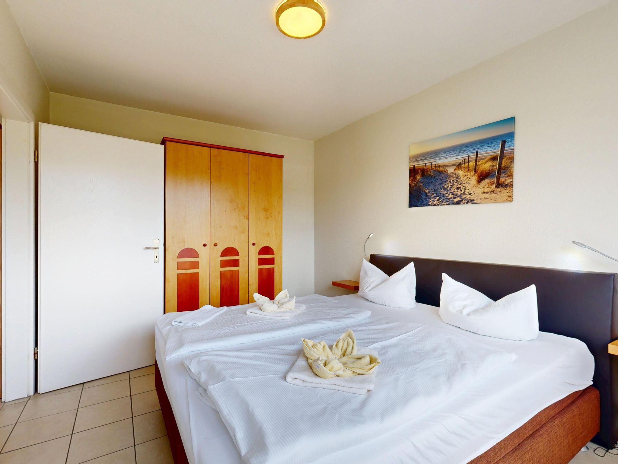 Ferienwohnung Binzer Sterne 42 für bis zu 4 Personen im Erdgeschoss (2 Zimmer / 45 m²) des Appartementhauses Binzer Sterne, 1 Schlafzimmer, Parkplatz (gegen Gebühr) und freies WLAN.