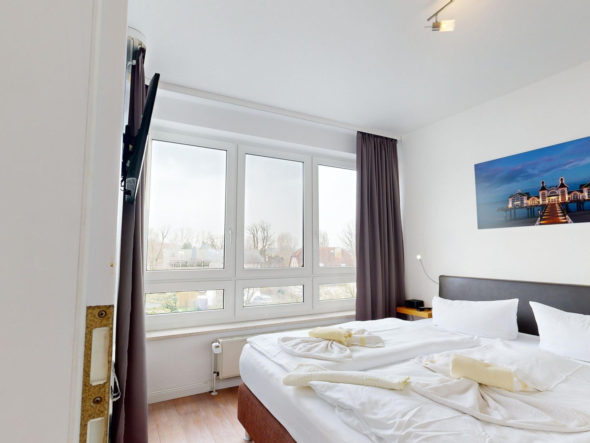 Ferienwohnung Binzer Sterne 31 für bis zu 4 Personen im 1. Obergeschoss (2 Zimmer / 45 m²) des Appartementhauses Binzer Sterne, 1 Schlafzimmer, Parkplatz (gegen Gebühr) und freies WLAN.