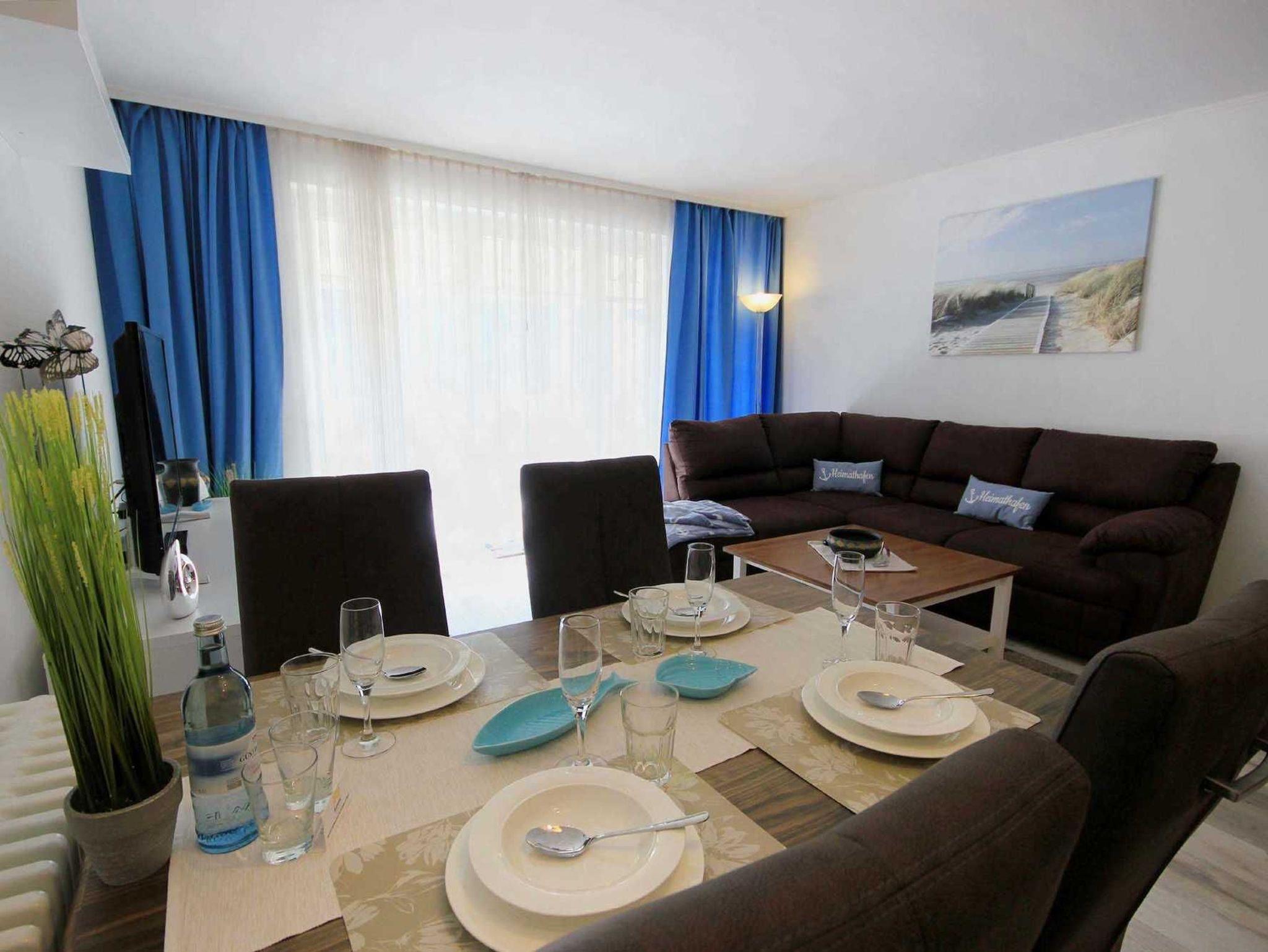 Ihre modern eingerichtete 2-Raum Ferienwohnung 16RB104 hat eine Größe von ca. 62 qm und ist für max. 4 Personen eingerichtet. Sie befindet sich 1. Obergeschoss und verfügt über einen überdachten Südbalkon. Der Wohnraum teilt sich in eine Küchenzeile mit Mikrowelle, Kühlschrank, Geschirrspüler, Kaffeemaschine, Toaster und andere Küchenhelfer sowie einen gemütlichen Essplatz und Wohnbereich mit Flachbild-TV, Stereoanlage und Blu-ray DVD-Player. Die Couch kann für 2 Personen zum Schlafen schnell ausgezogen werden, zudem verfügt das Wohnzimmer über zusätzliche Verdunklungsstoffe für einen angenehmen Schlaf. Vom Wohnraum gelangen Sie auf den großen und möblierten Südbalkon, der auch für 4 Personen reichlich Platz zum Sitzen oder Sonnen bietet. Vom Schlafraum mit Doppelbett, zusätzlichem TV und Verdunklungsstoffen gelangen Sie in den Ankleideraum und von diesem ins Bad (das Bad ist auch über den Flur erreichbar). Dieses ist mit einer Fußbodenheizung versehen und exklusiv mit Granit gefliest. Dusche, Waschtisch, WC und Fön gehören zur Ausstattung. Ihre Kleidung und Koffer können Sie im separaten Ankleidezimmer verstauen. Für die kleinen Gäste ist ein Kinderreisebett sowie ein Hochstuhl vorhanden. Ein Internetzugang steht unseren Gästen zur Verfügung. Ein wohnungseigener PKW-Stellplatz steht Ihnen in der Tiefgarage zur Verfügung.