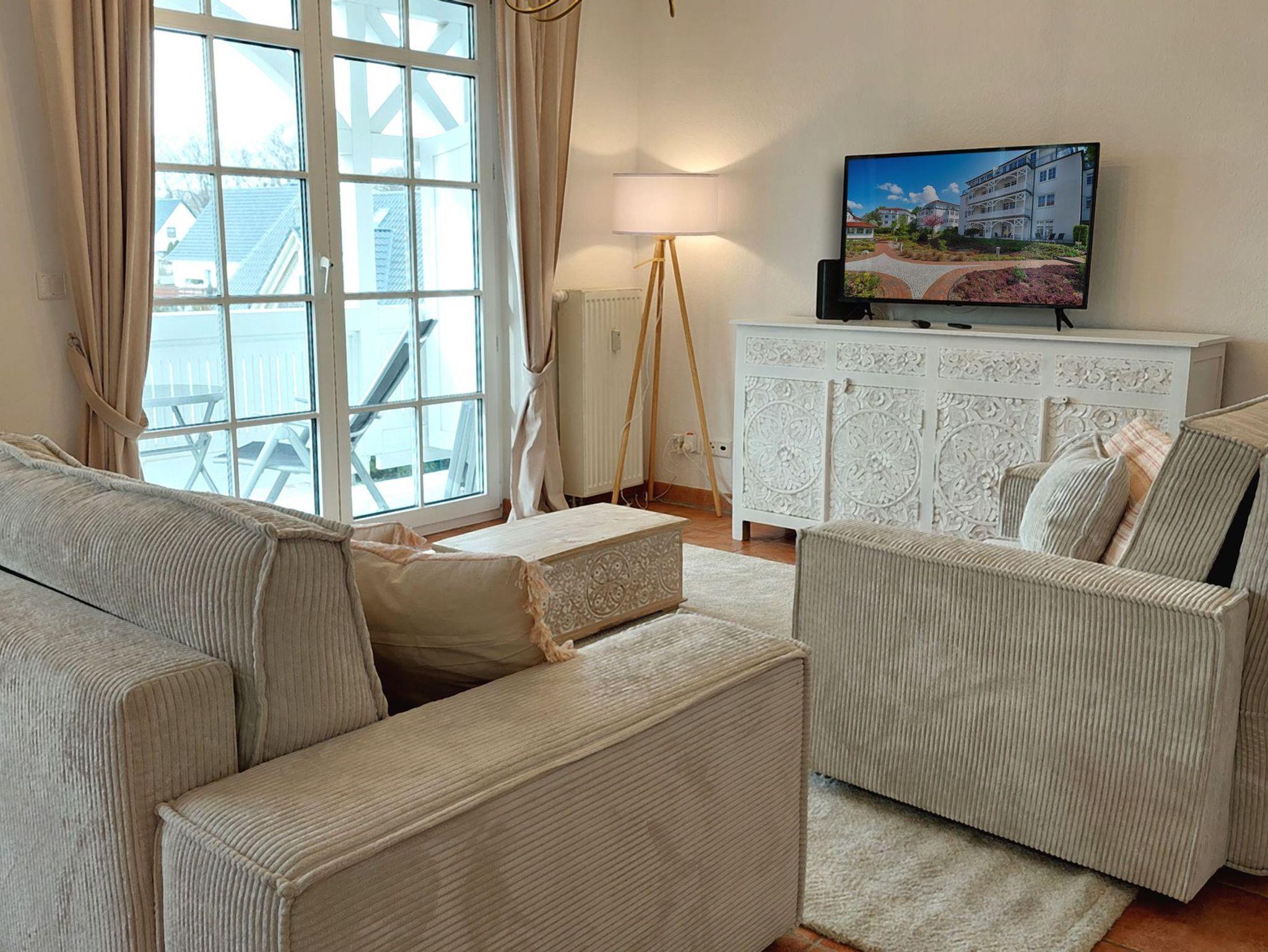 Moderne Nichtraucherwohnung in Binz mit Balkon und Meerblick, ideal für bis zu vier Personen.