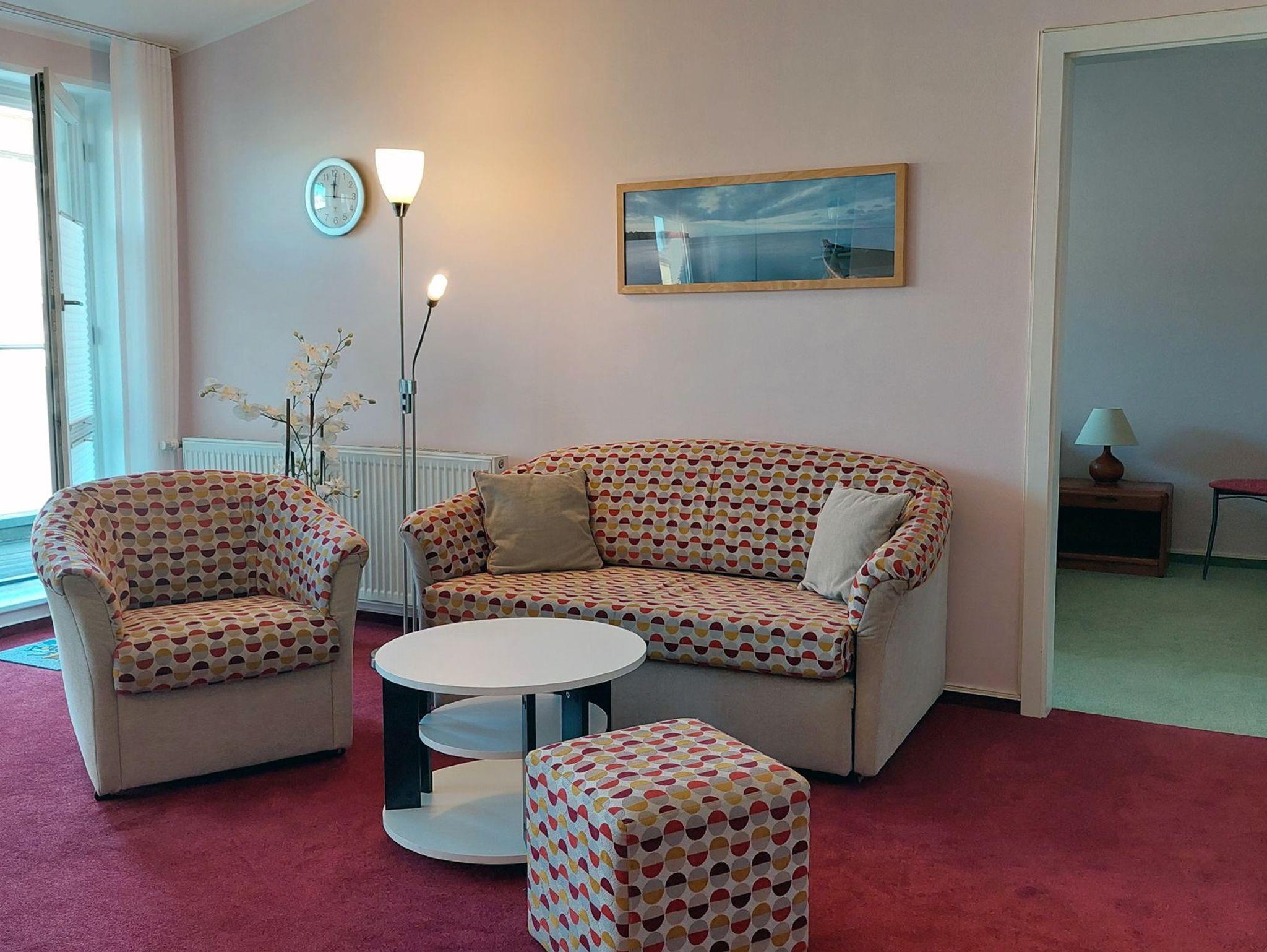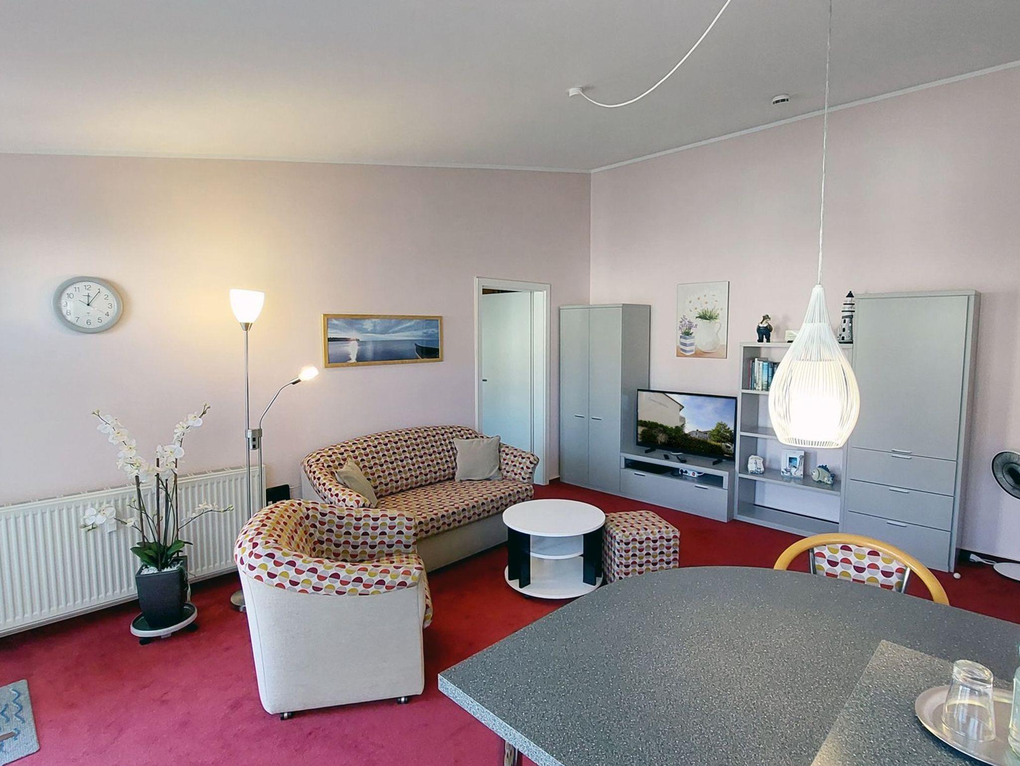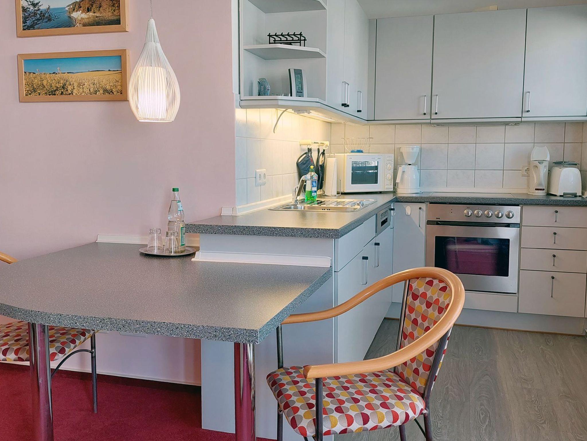 Die schöne 2Raum Wohnung hat eine Größe von ca. 48 qm und ist für 2 Personen eingerichtet. Neben dem Wohnraum gibt es ein separates Schlafzimmer, eine komplett ausgestattete Küchenzeile, Flur und ein Badezimmer mit Waschtisch, Dusche, Haartrockner und WC. Im Schlafzimmer befindet sich ein Doppelbett, ein zusätzlicher TV und ein großer Kleiderschrank. Im gemütlichen Wohnraum finden Sie neben der Sitzecke mit Sofa einen separaten Essplatz. Zur technischen Ausstattung gehört ein Fernsehgerät sowie ein Blu-ray-Player. Die Küche ist mit Geschirrspüler, Mikrowelle, Cerankochfeld, Backofen und diversen Kleingeräten komplett ausgestattet. Ab sofort können unsere Gäste einen kostenfreien Internetzugang nutzen.