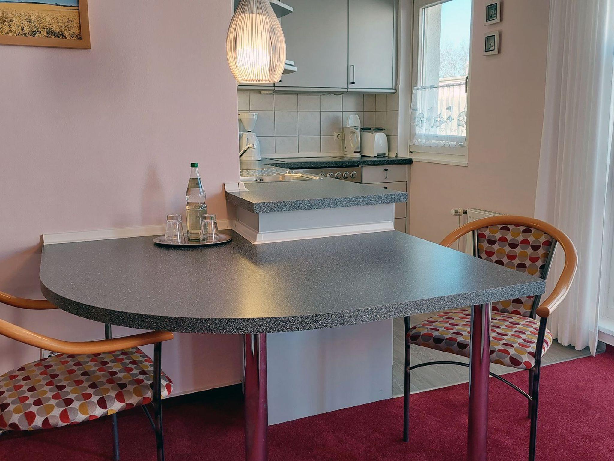 Die schöne 2?Raum Wohnung hat eine Größe von ca. 48 qm und ist für 2 Personen eingerichtet. Neben dem Wohnraum gibt es ein separates Schlafzimmer, eine komplett ausgestattete Küchenzeile, Flur und ein Badezimmer mit Waschtisch, Dusche, Haartrockner und WC. Im Schlafzimmer befindet sich ein Doppelbett, ein zusätzlicher TV und ein großer Kleiderschrank. Im gemütlichen Wohnraum finden Sie neben der Sitzecke mit Sofa einen separaten Essplatz. Zur technischen Ausstattung gehört ein Fernsehgerät sowie ein Blu-ray-Player. Die Küche ist mit Geschirrspüler, Mikrowelle, Cerankochfeld, Backofen und diversen Kleingeräten komplett ausgestattet. Ab sofort können unsere Gäste einen kostenfreien Internetzugang nutzen.