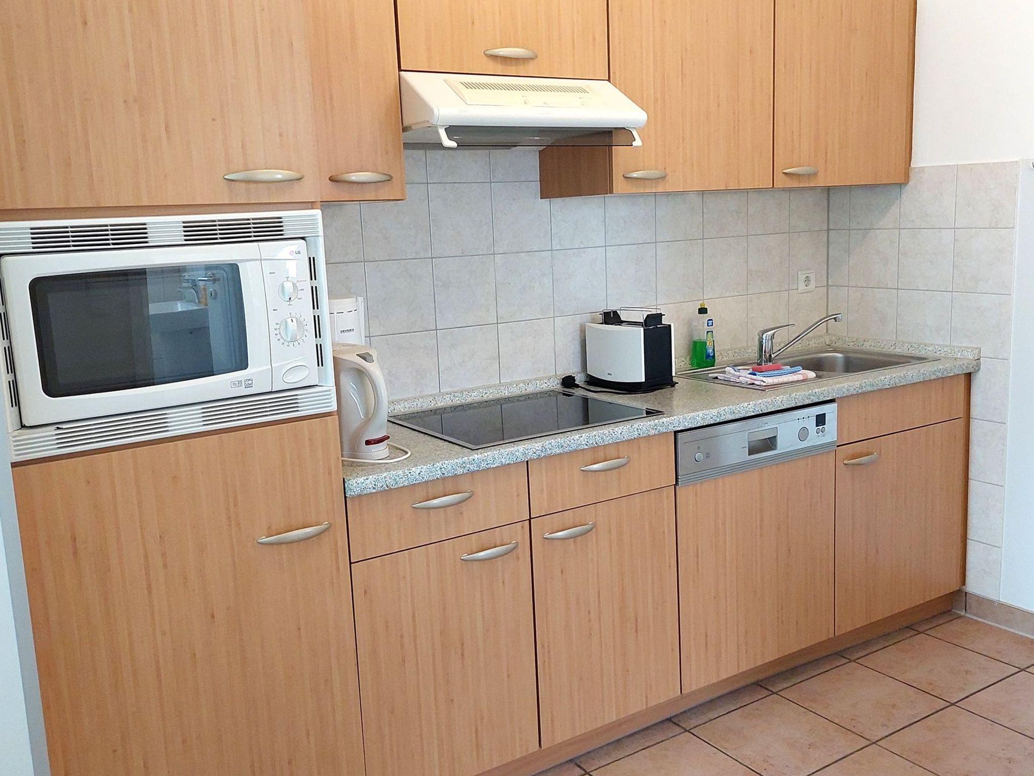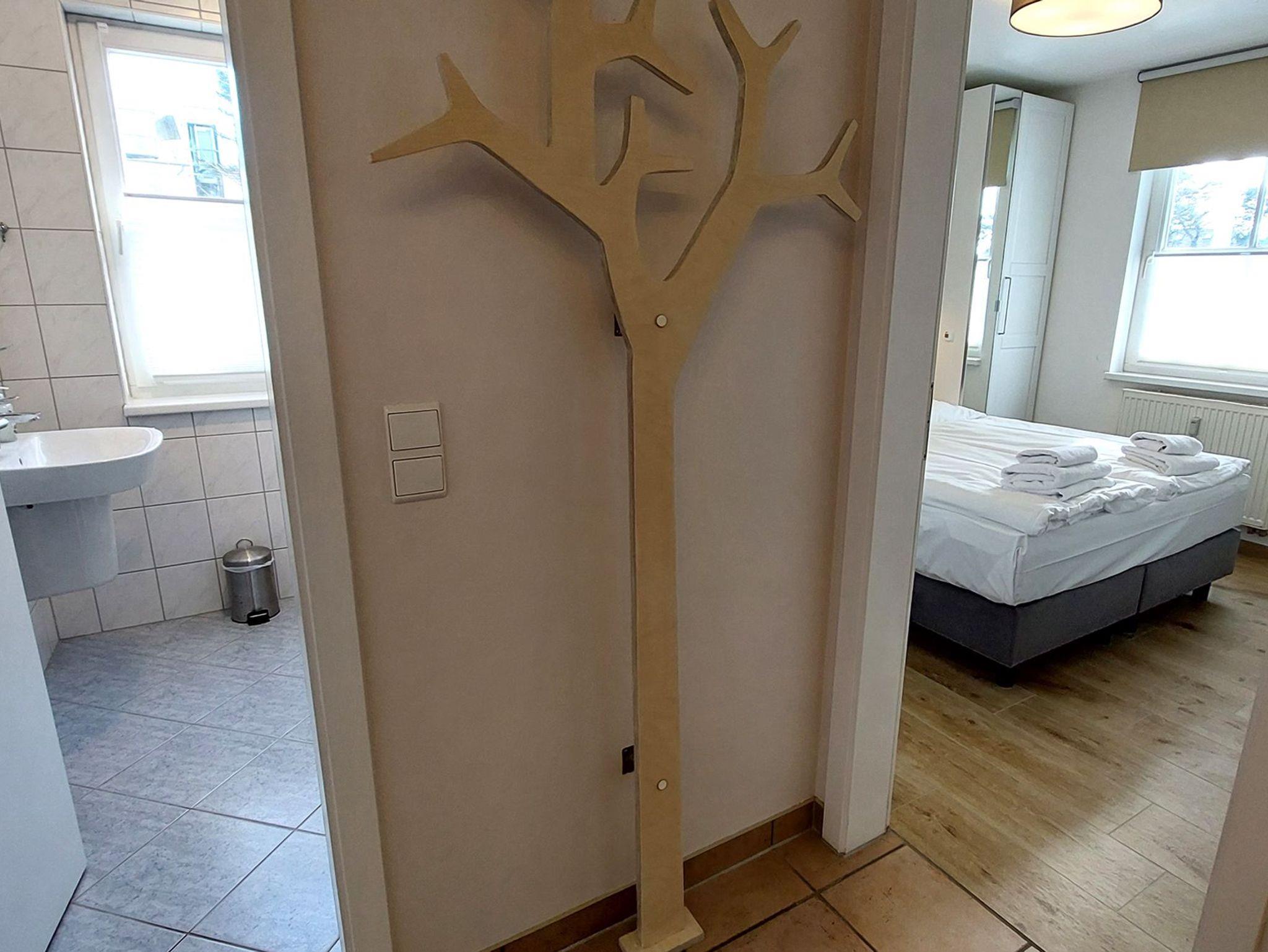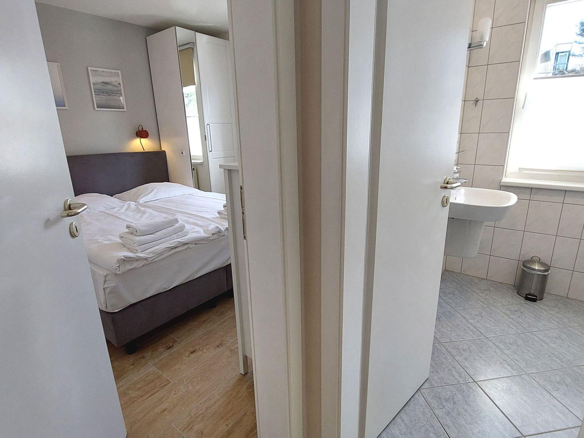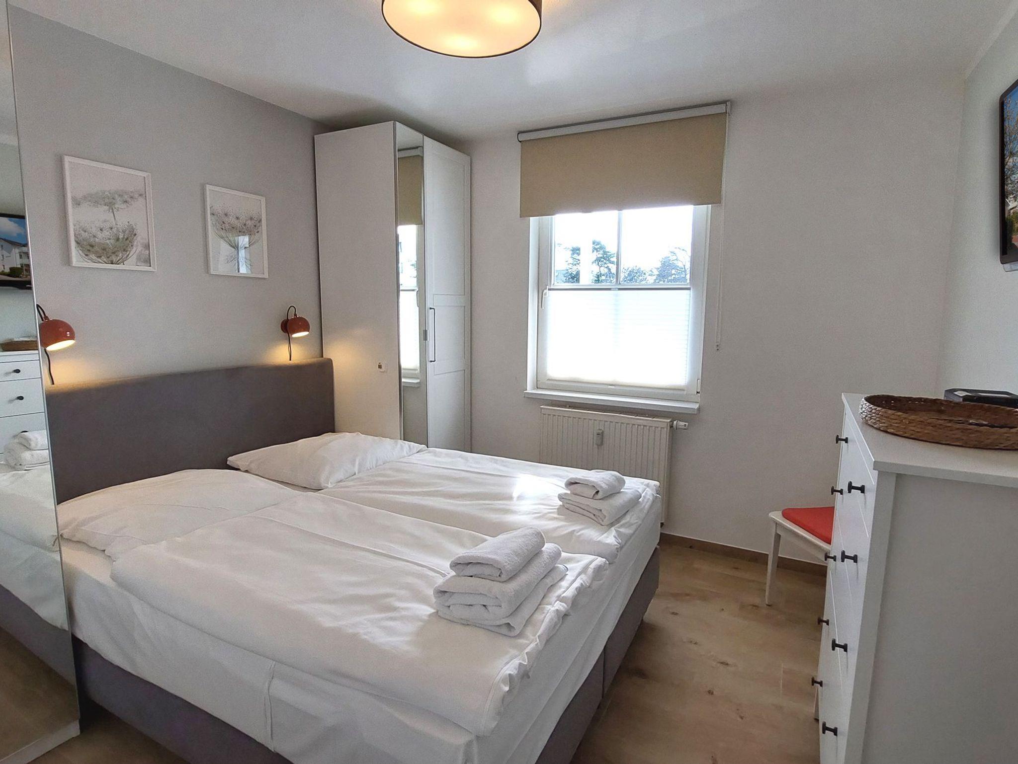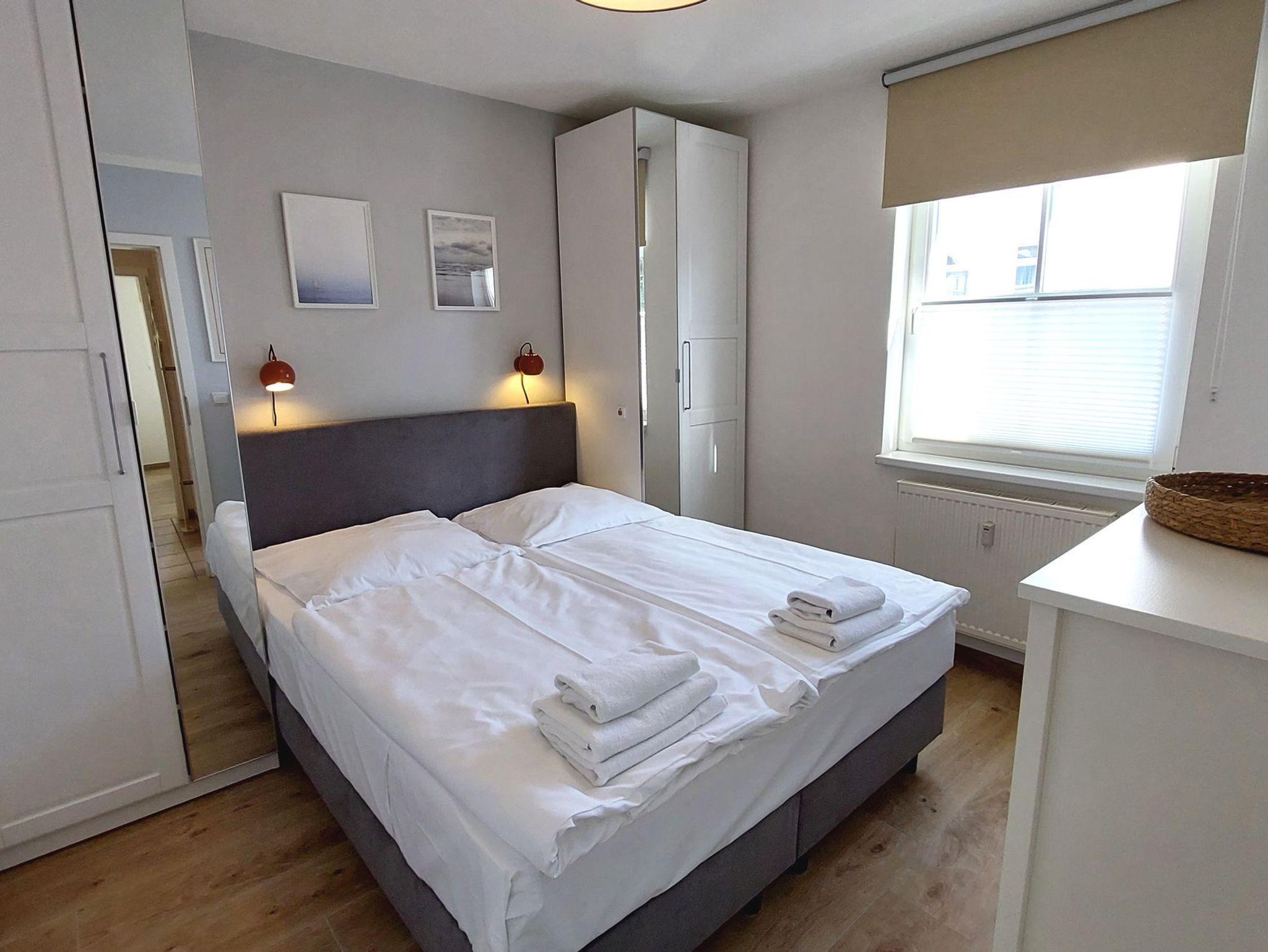 Die 3 Zimmer - Wohnung hat eine Größe von ca. 64 qm und ist mit bis zu 4 Personen belegbar. Neben dem hellen Wohnraum mit Küchenzeile gibt es zwei separate Schlafräume, ein Tageslichtbad mit Waschtisch, Dusche/WC, Kosmetikspiegel und Fön. Beide Schlafräume sind mit einem Doppelbett sowie einem großen Kleiderschrank ausgestattet. Zusätzlich befindet sich in einem Schlafbereich ein Flachbild-TV. Zudem finden Sie im gemütlichen Wohnbereich neben der behaglichen Sitzecke einen separaten Essplatz, Flachbild-TV, den kostenfreien W-Lan Zugang und eine Musik-Anlage mit CD-Player. Die Küche ist mit Geschirrspülmaschine, Kochfeld, Mikrowelle, Kühlschrank mit kleinem Gefrierfach, Nespressomaschine und diversen Küchenhelfern komplett ausgestattet. Im zusätzlichen Abstellraum finden Sie neben viele Stauraum auch ein Bügelbrett sowie ein Bügeleisen vor.