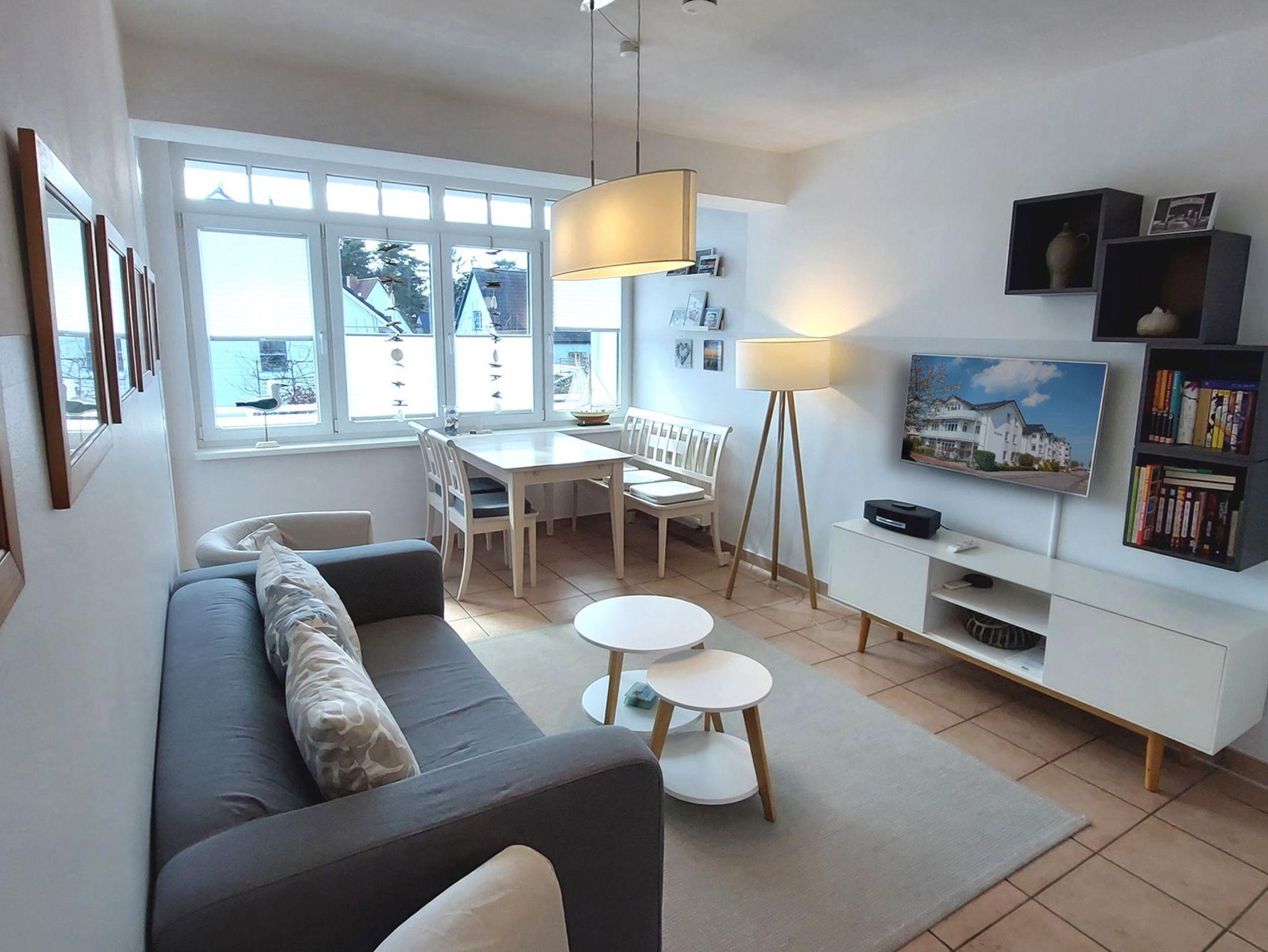 Gemütliche Nichtraucher-Ferienwohnung mit sonnigem Balkon in Binz, nur 100 m vom Strand entfernt.