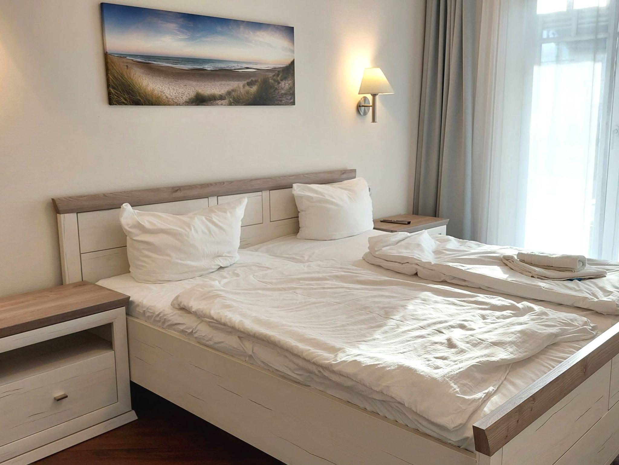 Die 2-Raum-Nichtraucherwohnung 16RB62 befindet sich im Erdgeschoß des Gebäudes Düne 8. Mit einer Größe von 59 qm bietet sie Platz für bis zu 4 Personen.